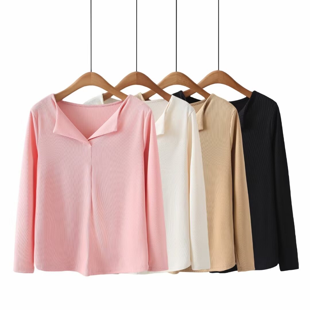 2024 Весна Новая женская рубашка больших размеров с длинными рукавами, модная простая универсальная рубашка с маленькими лацканами, нижняя рубашка 6901