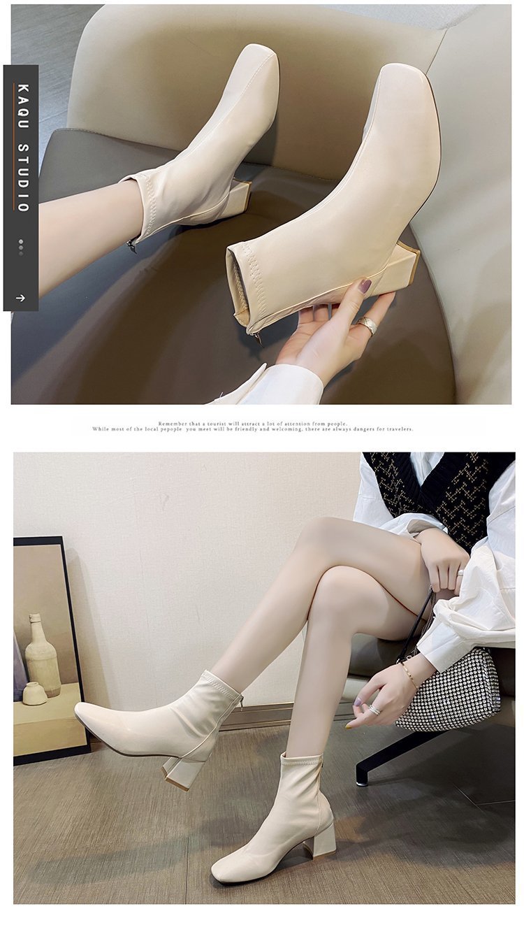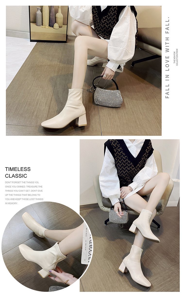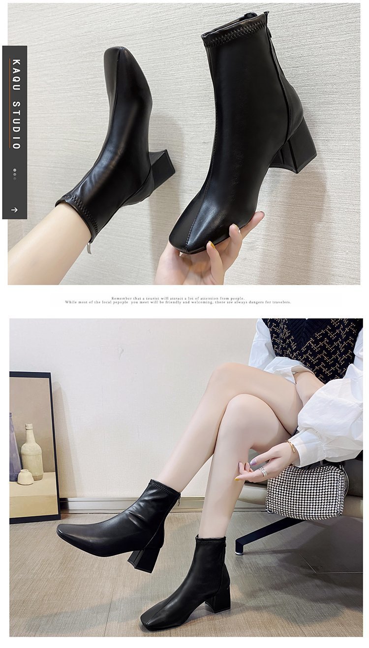 Martin сапоги женщины 2024 новые женские сапоги зимний европейский и американский стиль квадратный сапоги на молнии после женского грубого каблука сапоги на среднем каблуке