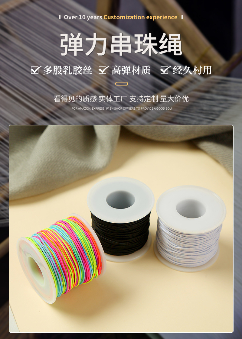 Эластичный шнур для браслетов, материалы для бисероплетения, аксессуары для рукоделия, эластичный шнур для украшений, белый, черный, разноцветный, высокая эластичность