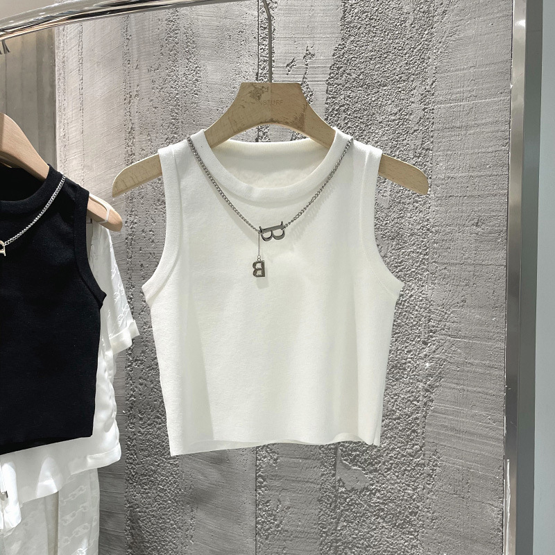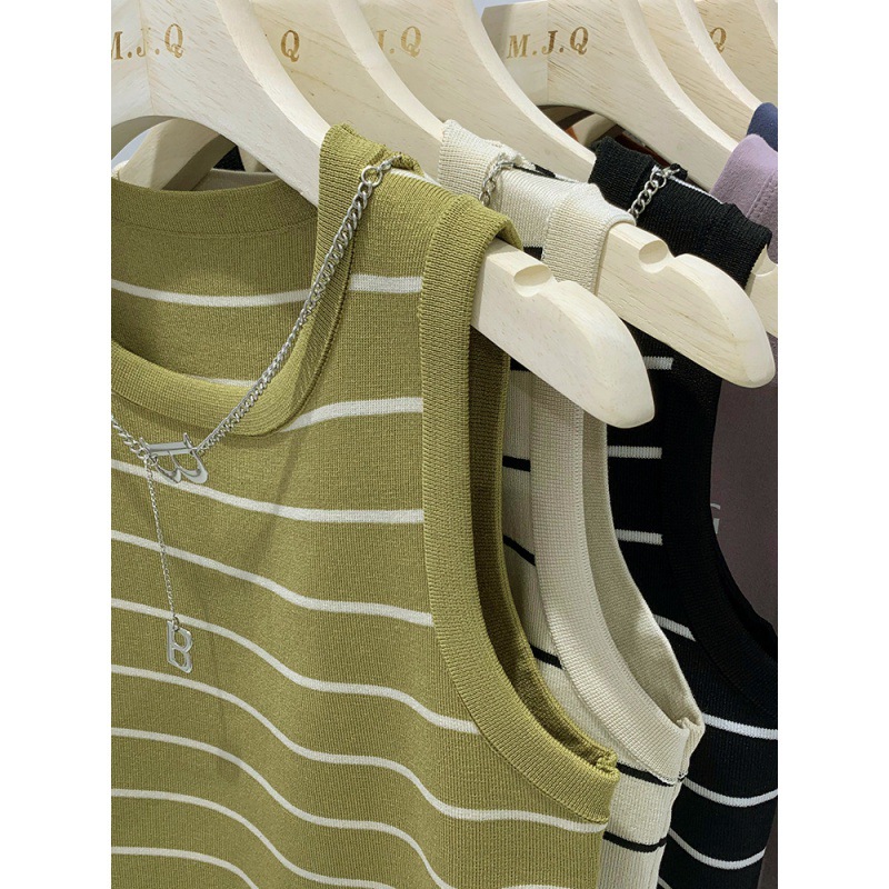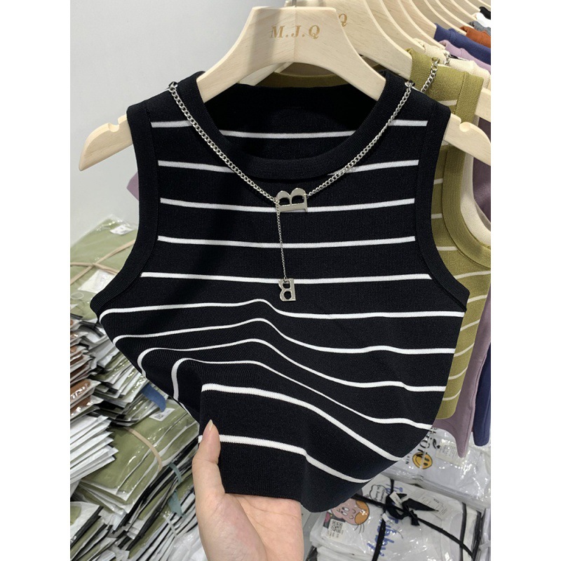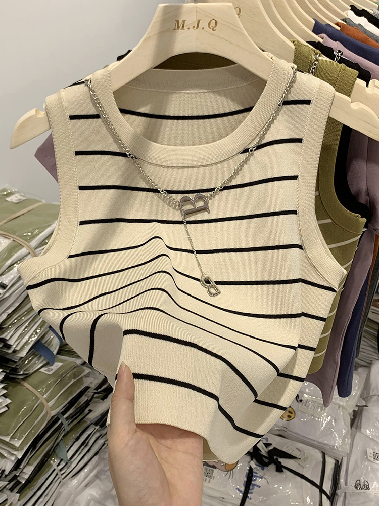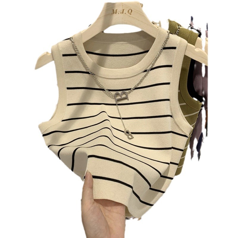 Чистый горячий женский укороченный полосатый жилет с высокой талией для женщин 2023 Летний Новый приталенный внутренний топ без рукавов