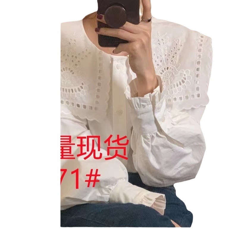 Южная Корея шикарная Ранняя весна французский стиль полая вышивка большой лацкан однобортная модная возрастная белая рубашка Женский Внутренний верх