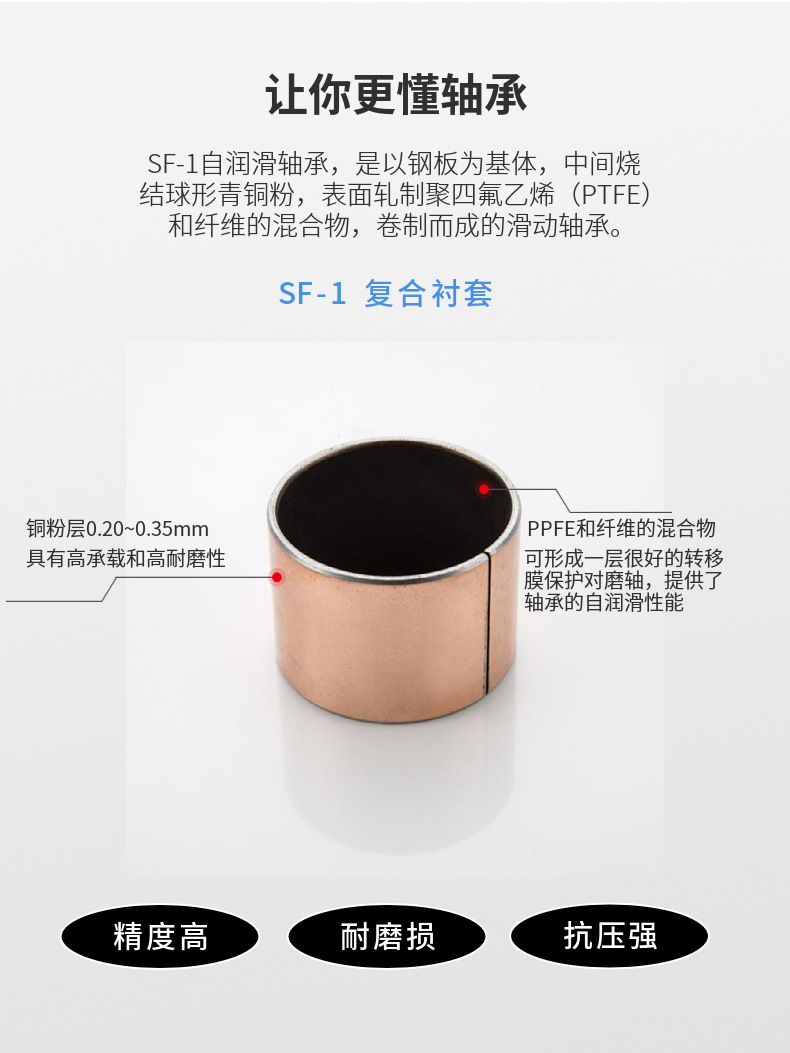 Фабрика прямых продаж износостойкие подшипники скольжения самосмазки безмасляные подшипники SF-1 оптом композитные втулки медные втулки