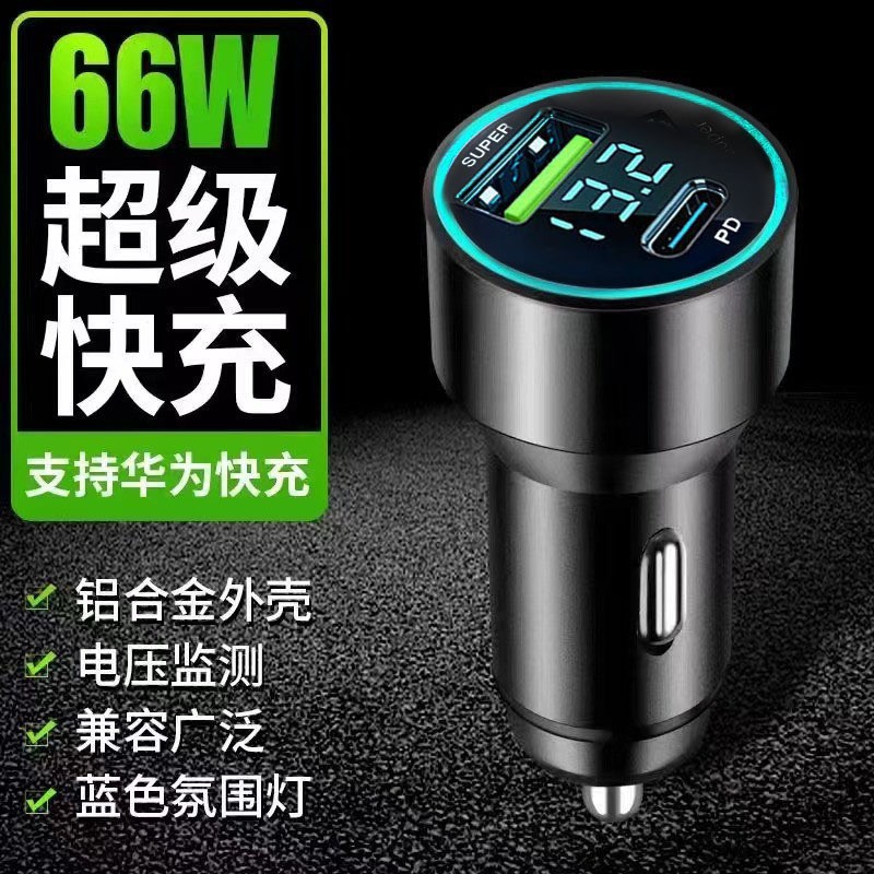 Цифровой дисплей Супер быстрая зарядка PD + QC3.0 трансграничное автомобильное зарядное устройство металлическое многофункциональное автомобильное зарядное устройство 66 Вт прямые продажи с завода