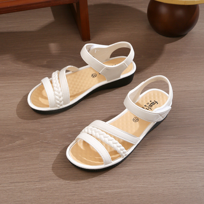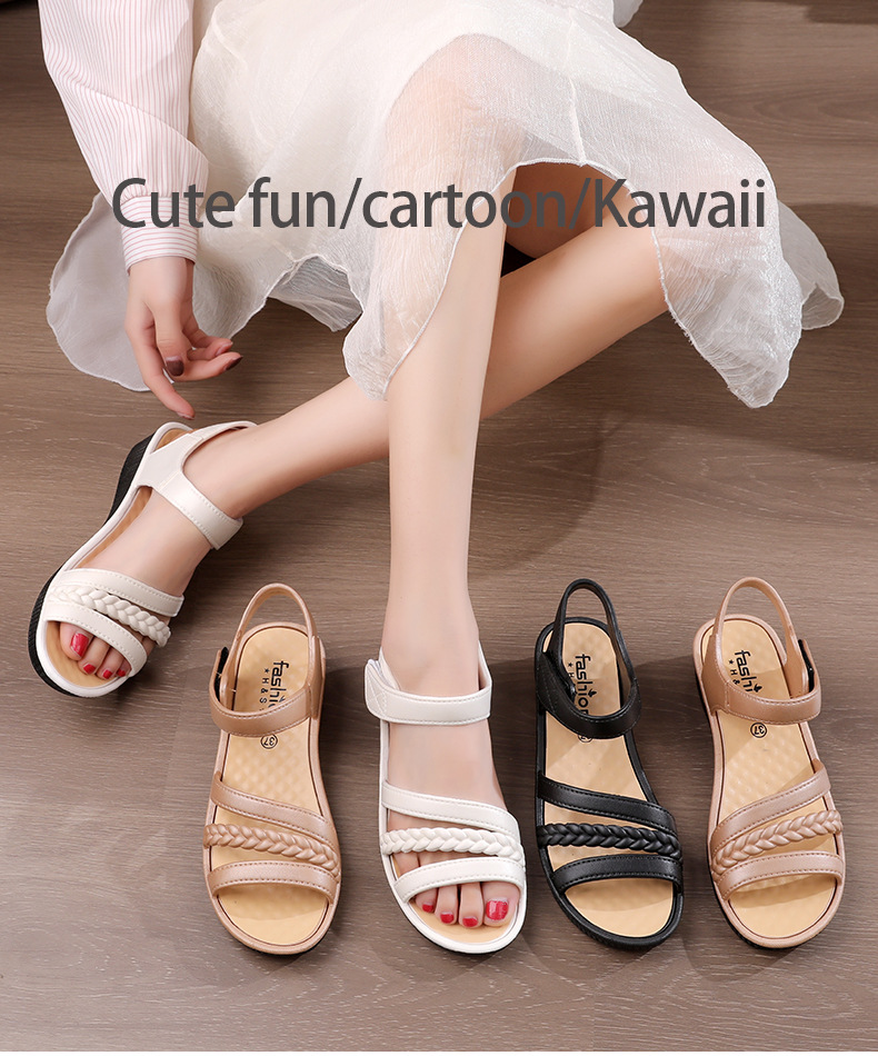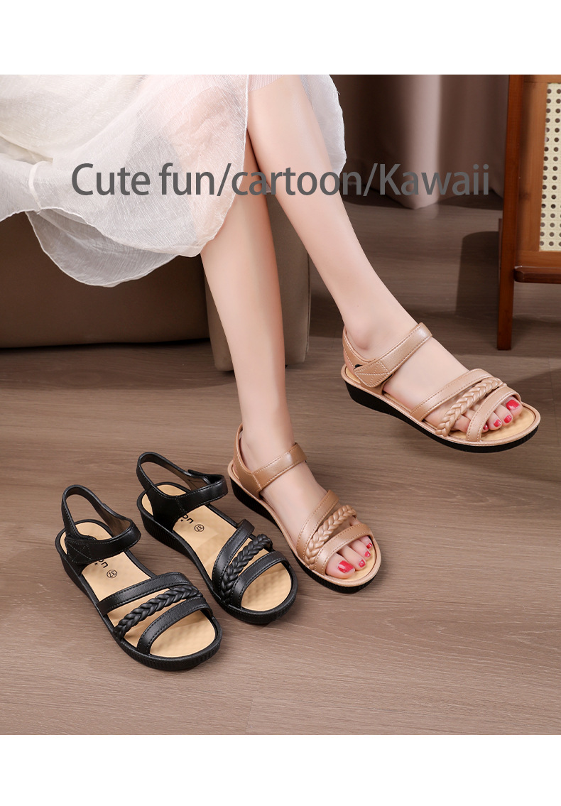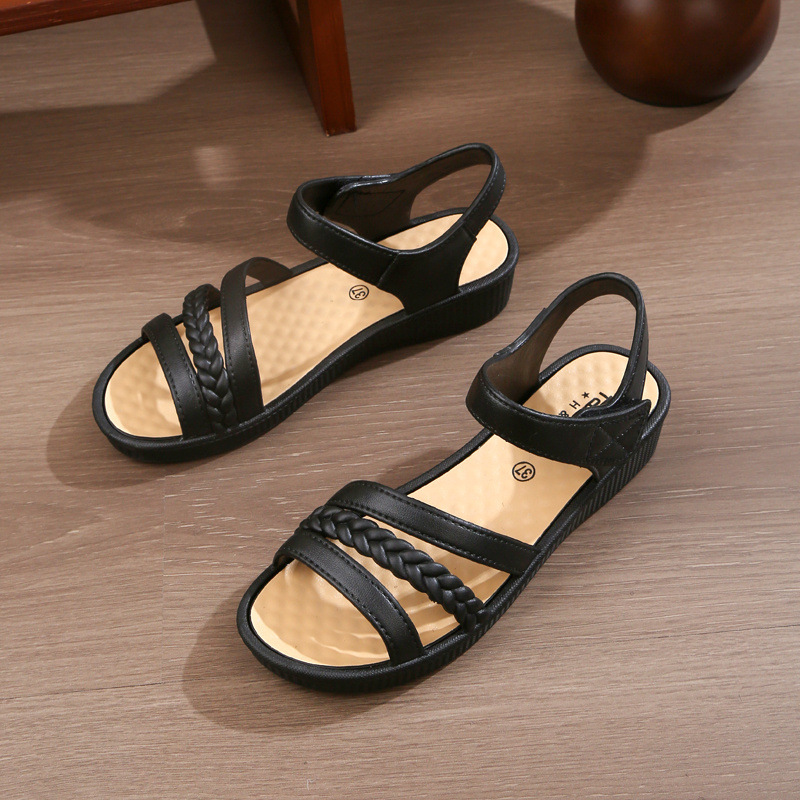 Женские уличные сандалии, летние пляжные рабочие туфли на плоской подошве с мягкой подошвой, Нескользящие сандалии на танкетке, пластиковые женские сандалии для мам на среднем каблуке