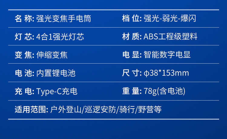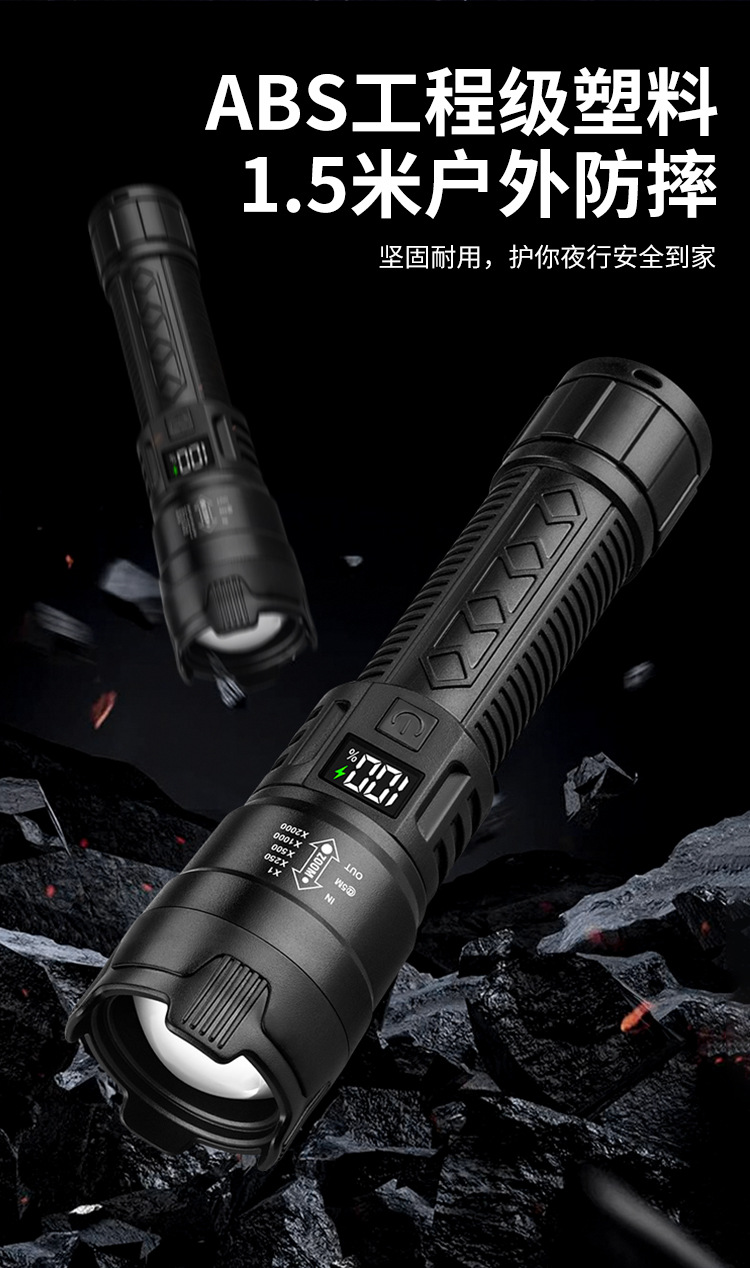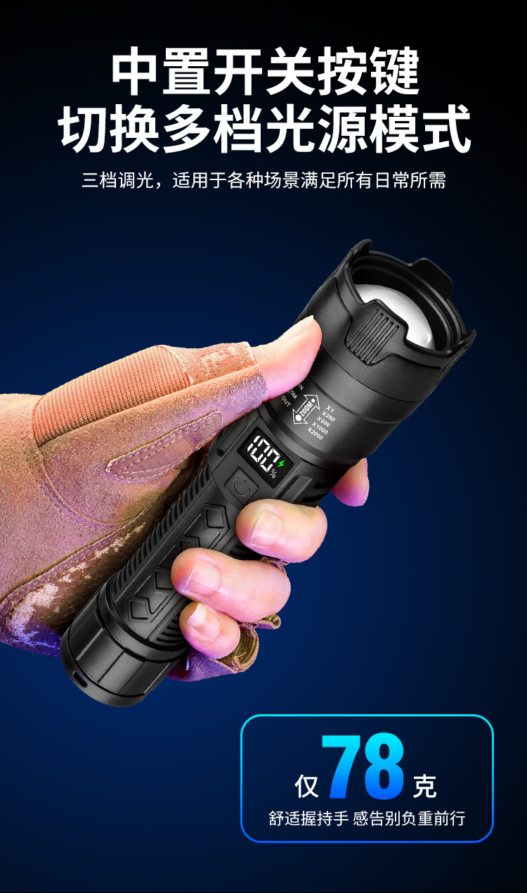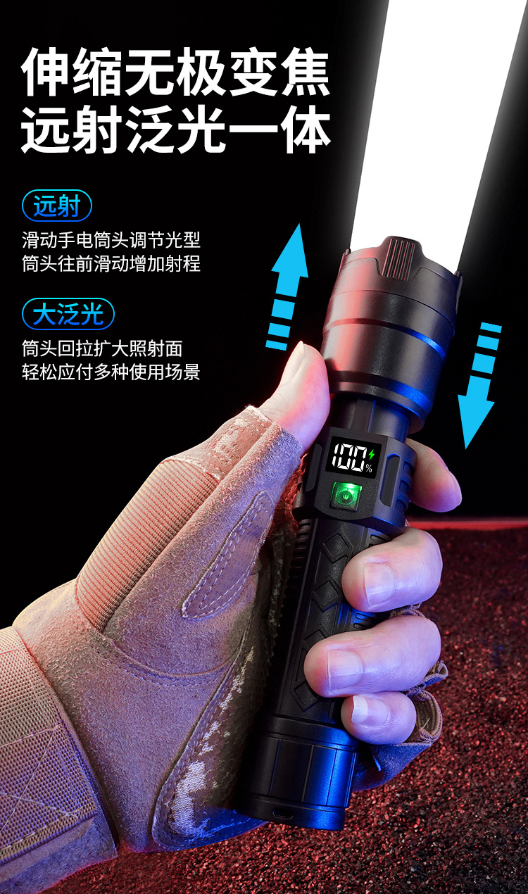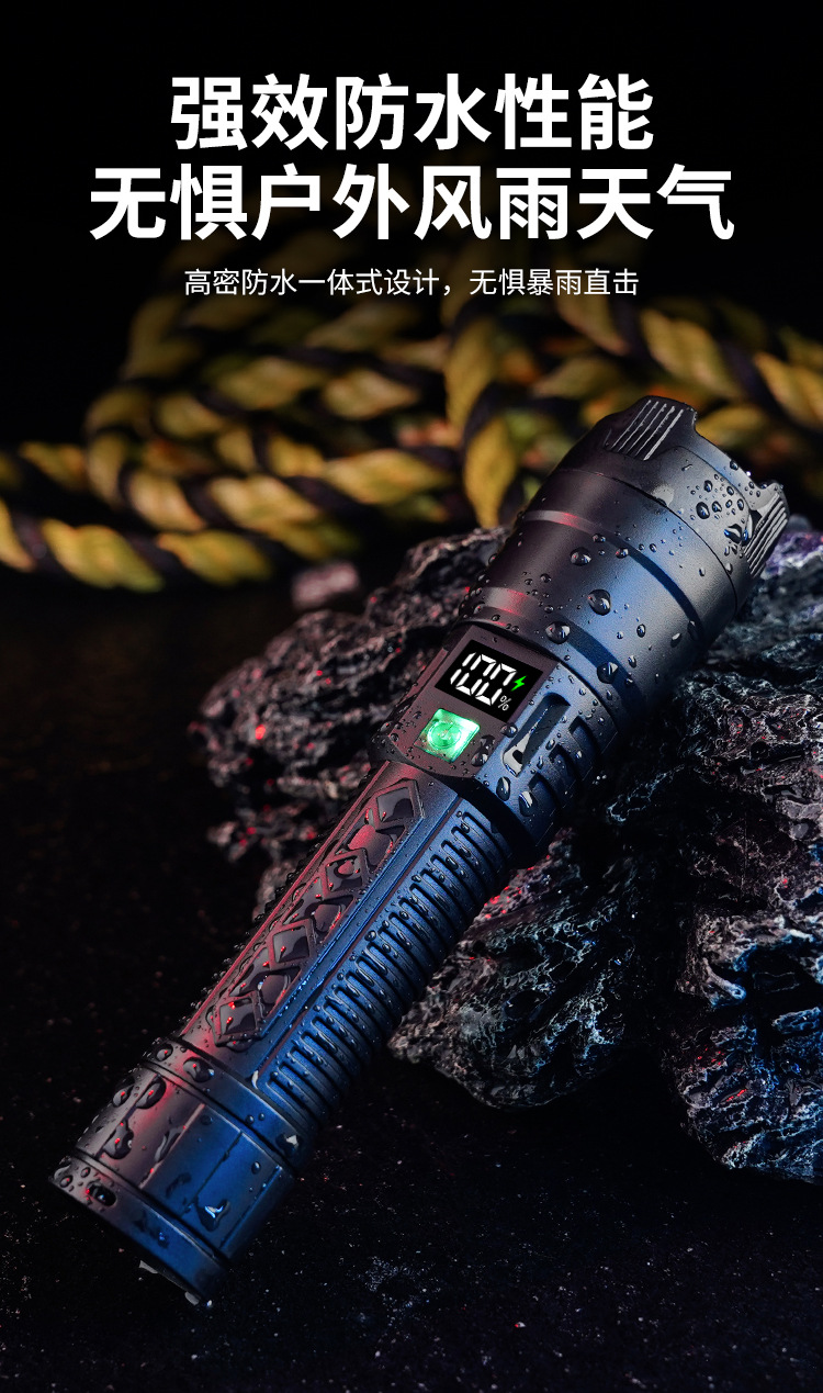 Горячий продавать сильный свет фонарик Открытый Многофункциональный телескопический зум цифровой дисплей фонарик светодиодный портативный водонепроницаемый фонарик