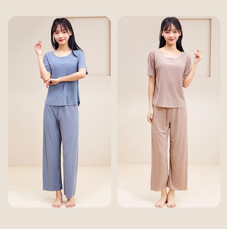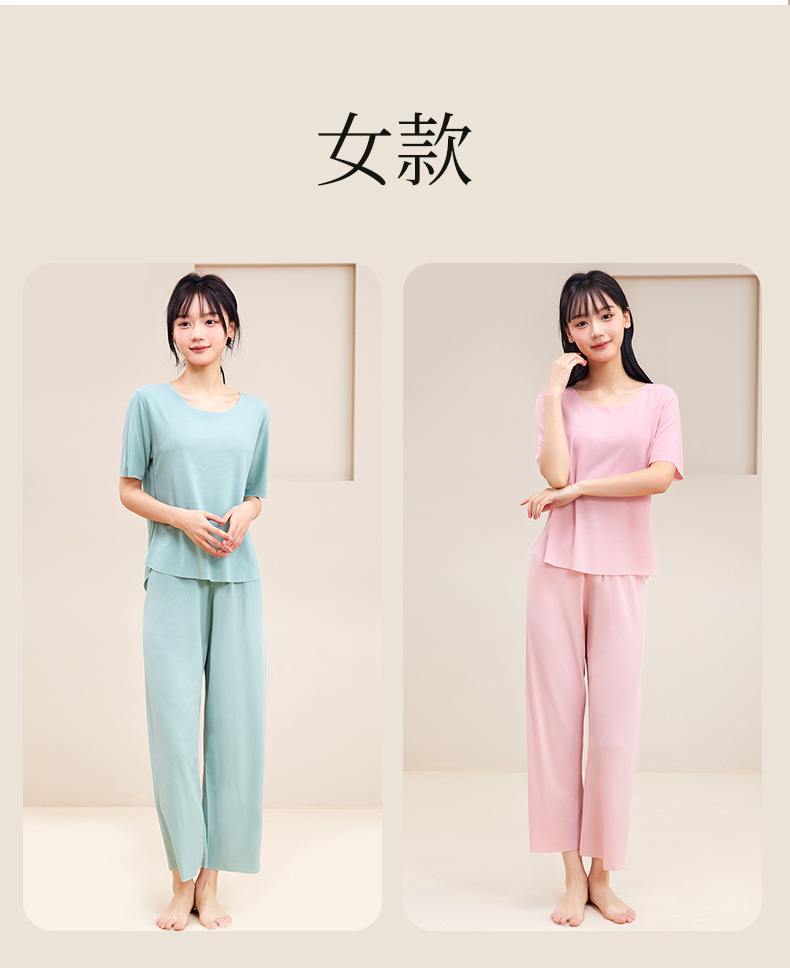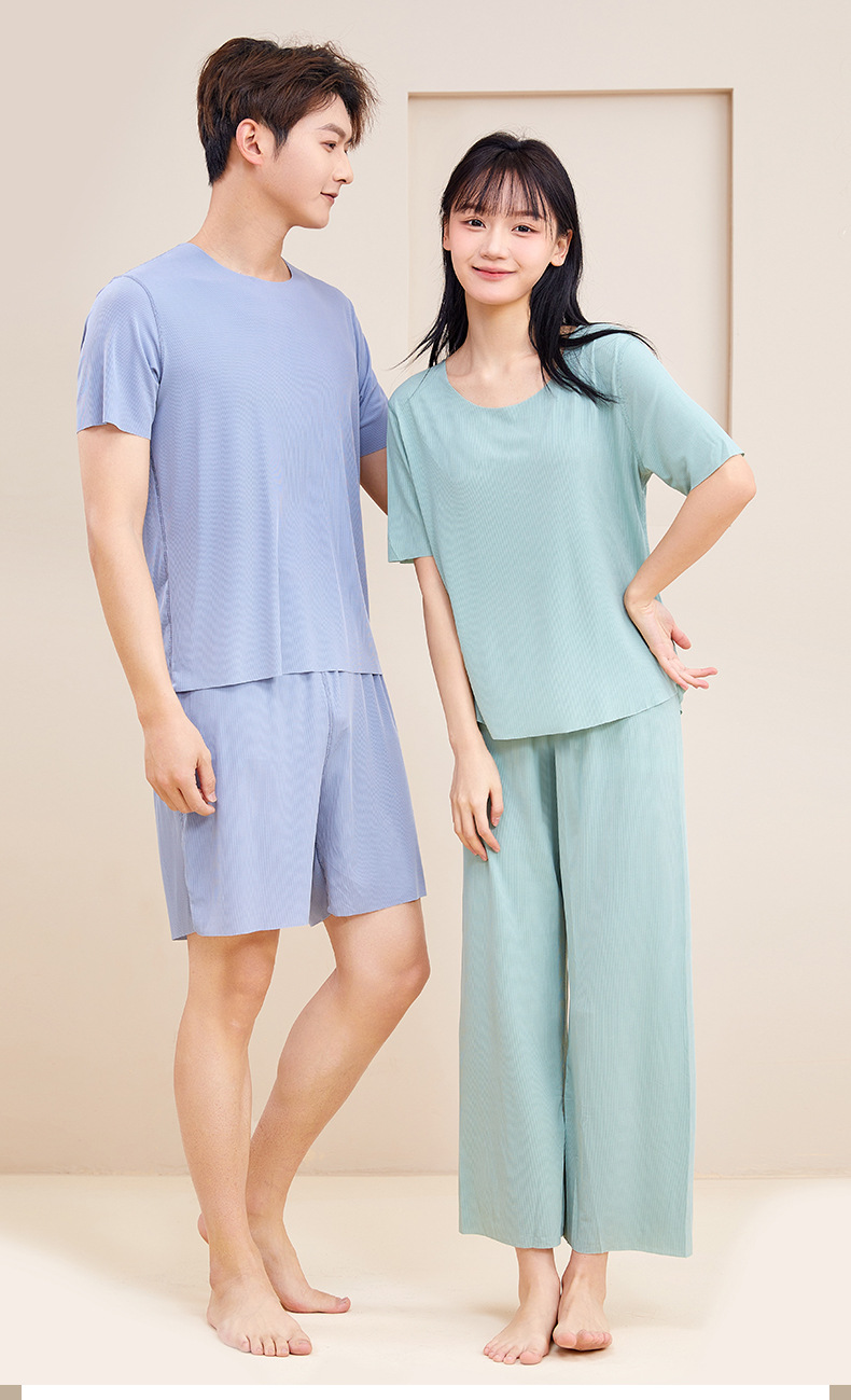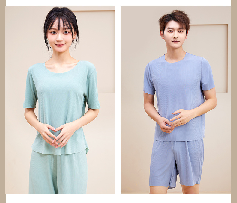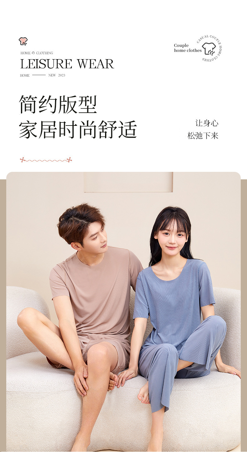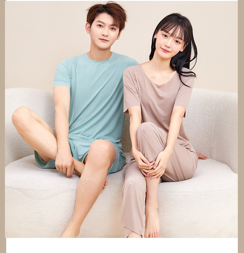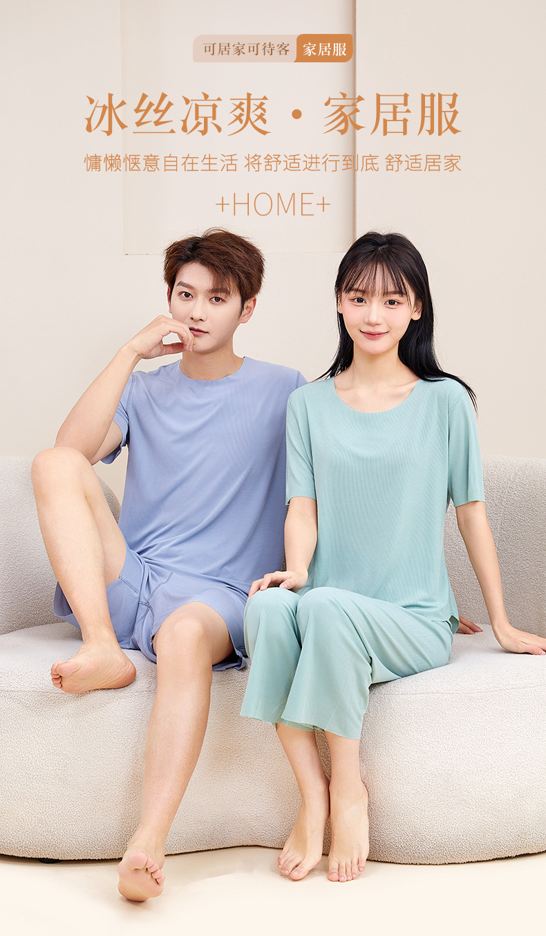 Весенний и летний ледяной шелк пара пижамный набор для мужчин без следов свободного размера большой размер домашней одежды для женщин пижамы оптом для волос