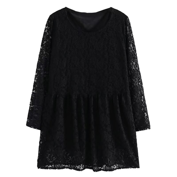 Весенняя универсальная модная кружевная рубашка больших размеров для толстой девушки 200 кг, свободная рубашка средней длины с V-образным вырезом, покрывающим мясо, рубашка средней длины, 22