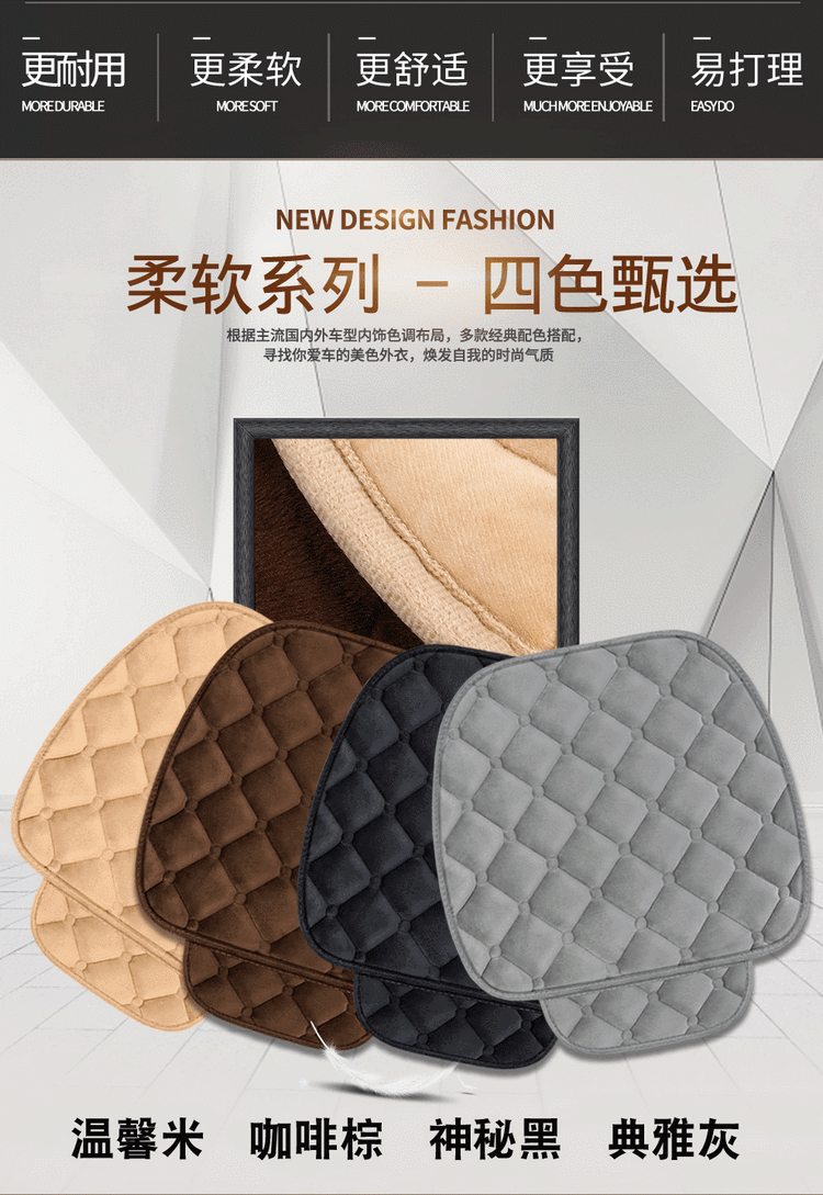 Цельное бархатное переднее сиденье ромбовидной формы; Бархатный задний трехместный салон ромбовидной формы; Бархатный комплект из трех предметов ромбовидной формы; 1 бархатная спинка ромбовидной формы; Бархатный комплект из семи предметов ромбовидной формы; Комплект бархатных передних сидений ромбовидной формы (спинка + сиденье); Бархатный подголовник в форме ромба.
