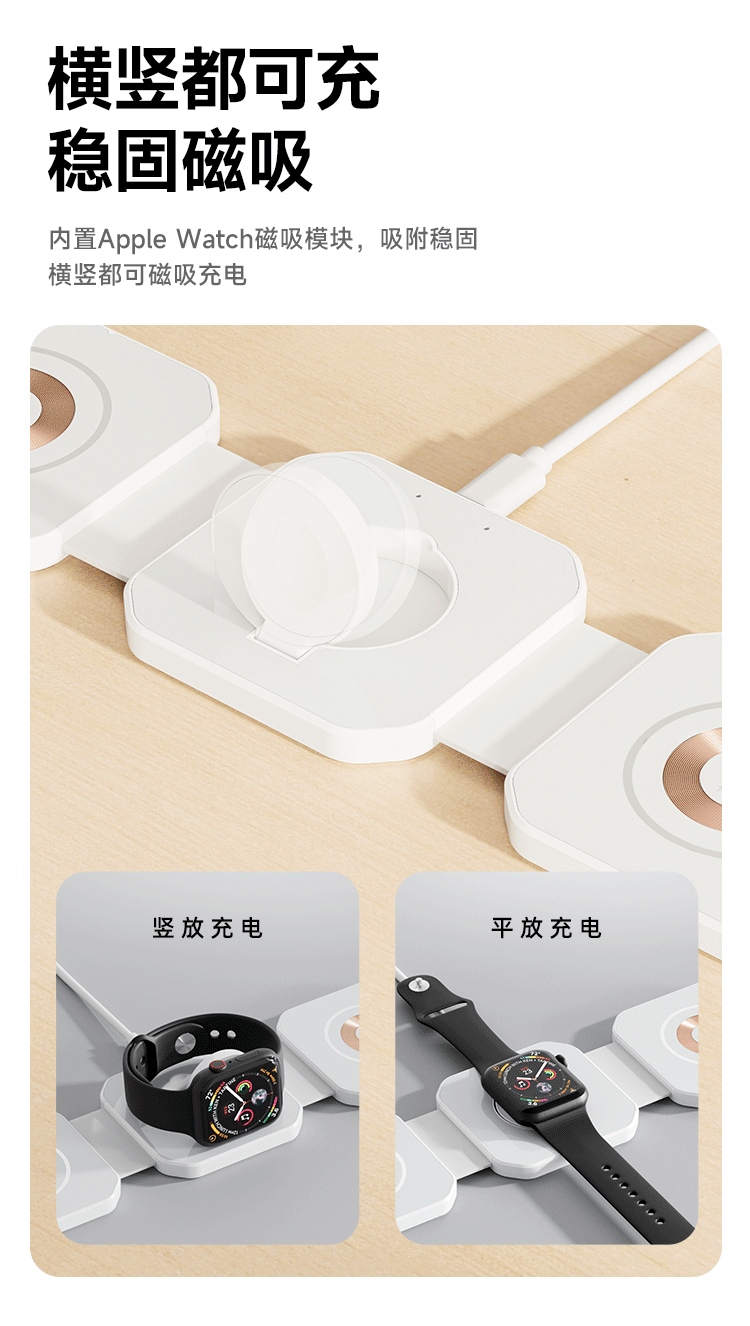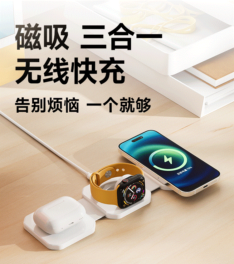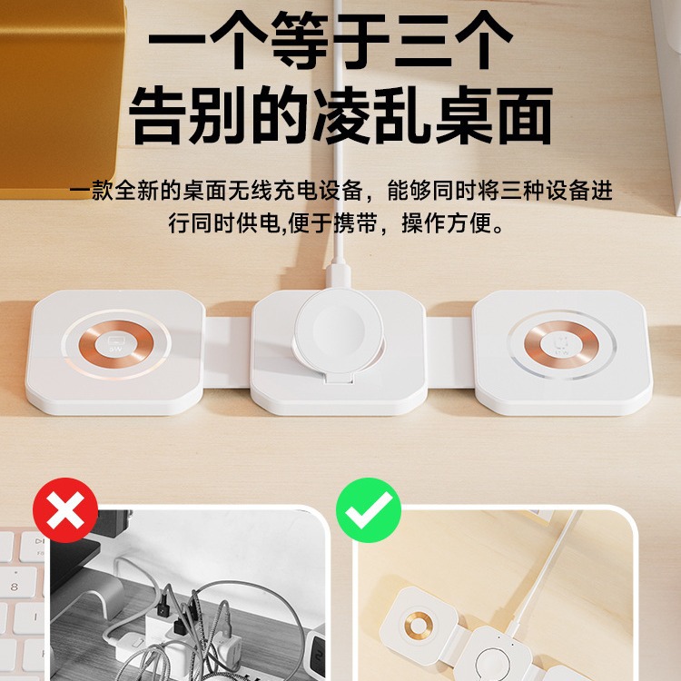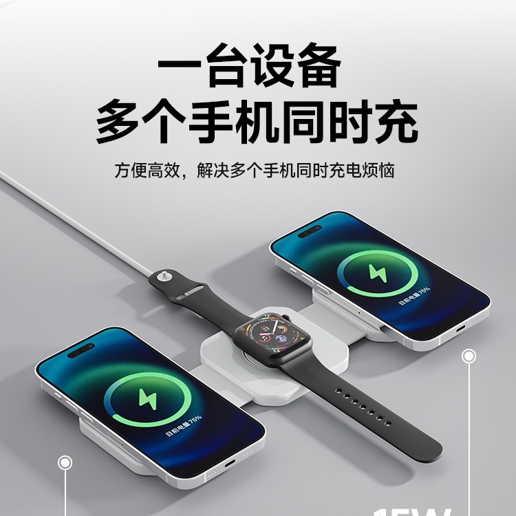 Новая прозрачная складная магнитная беспроводная зарядка «три в одном», подходящая для наушников-часов для мобильных телефонов Apple Huawei Samsung
