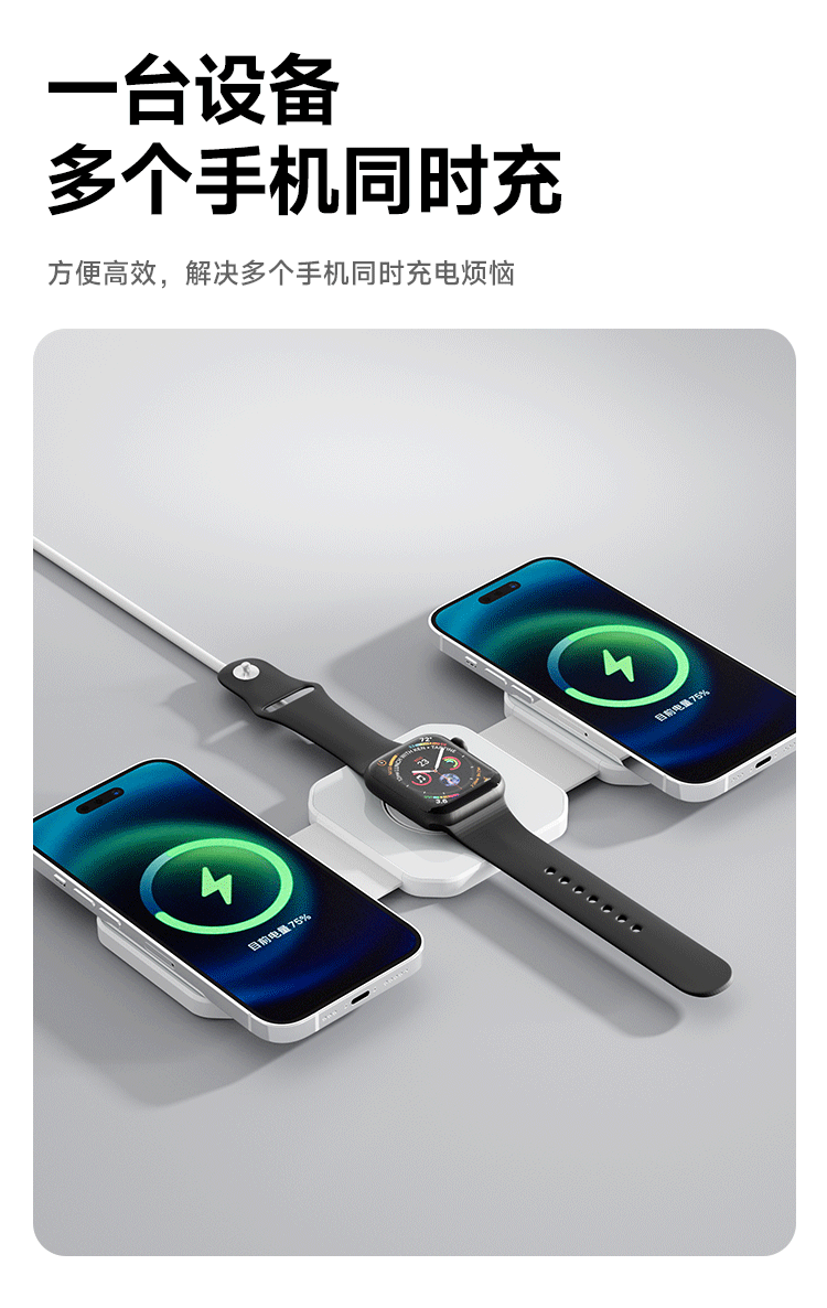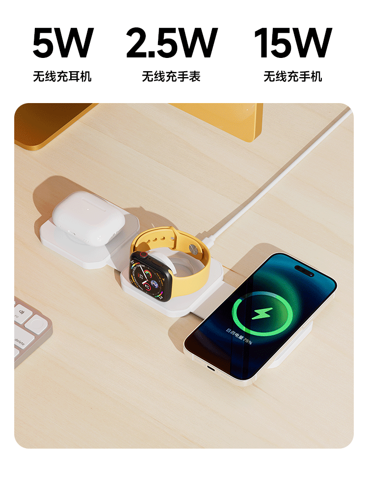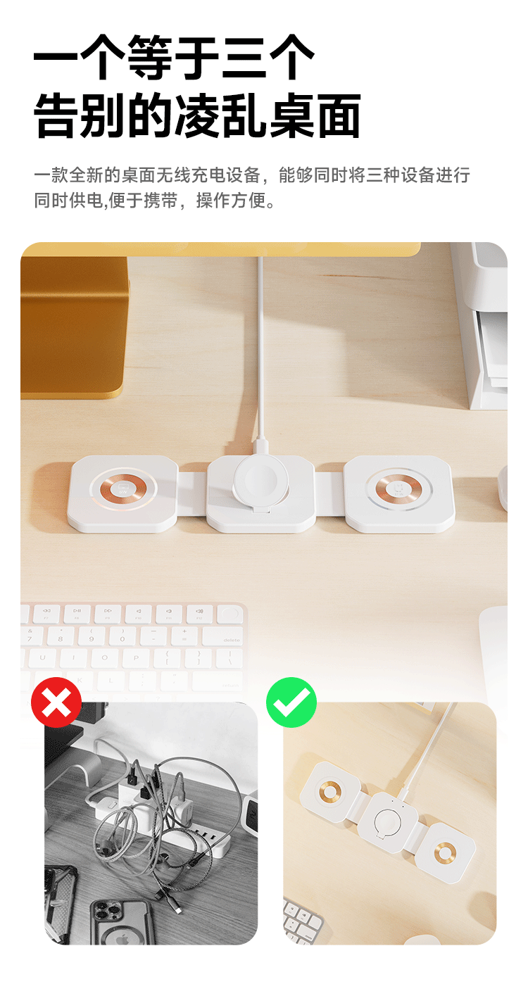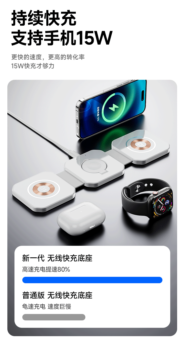 Новая прозрачная складная магнитная беспроводная зарядка «три в одном», подходящая для наушников-часов для мобильных телефонов Apple Huawei Samsung