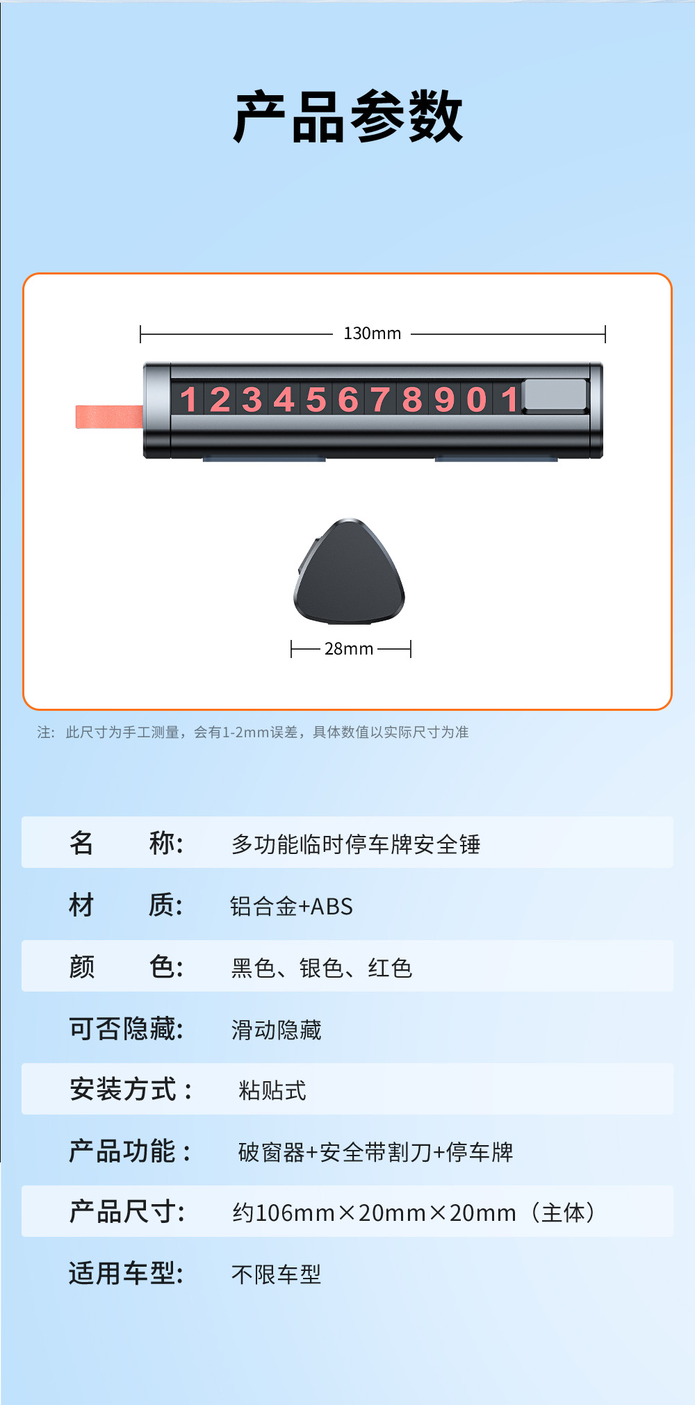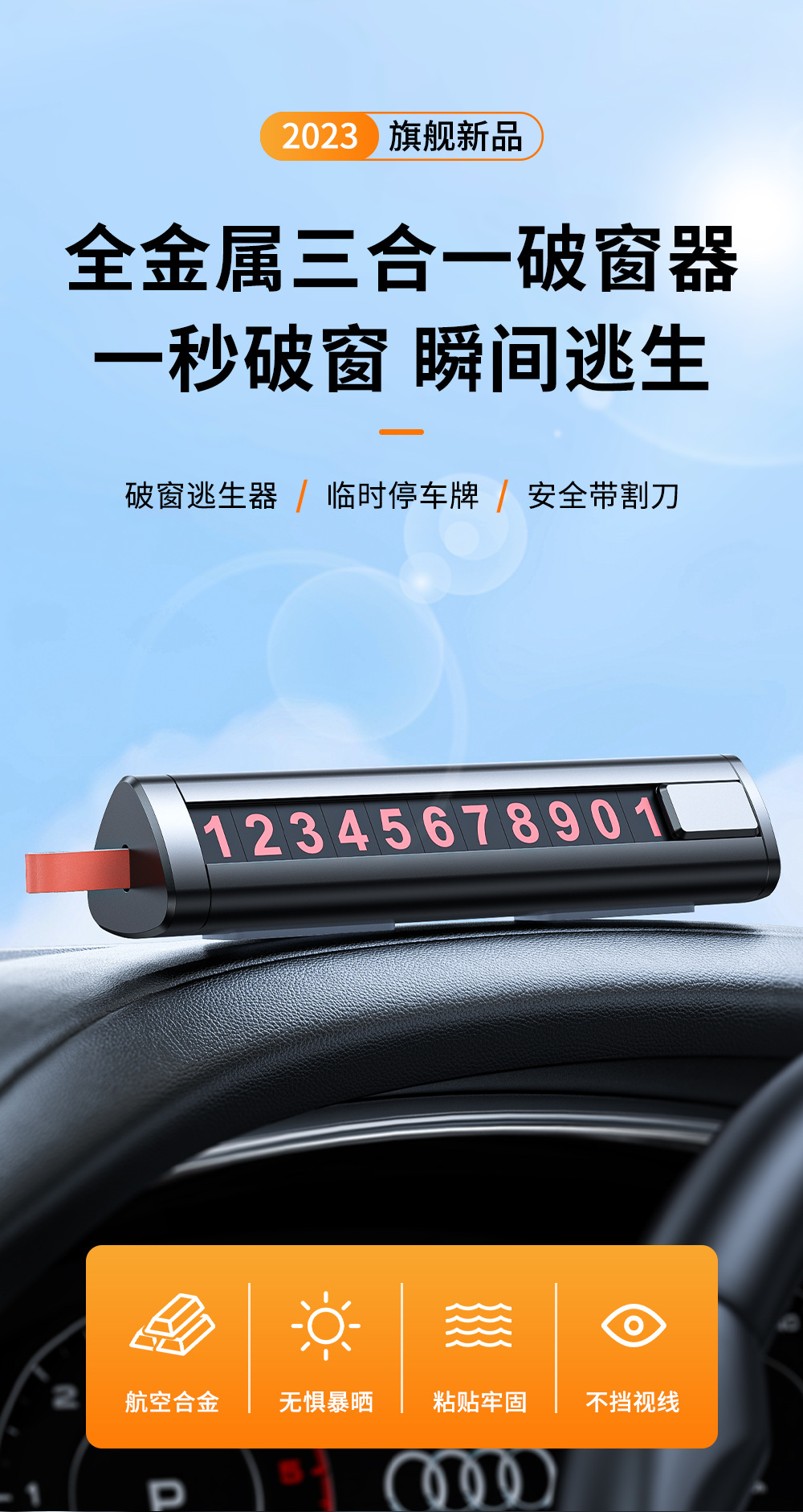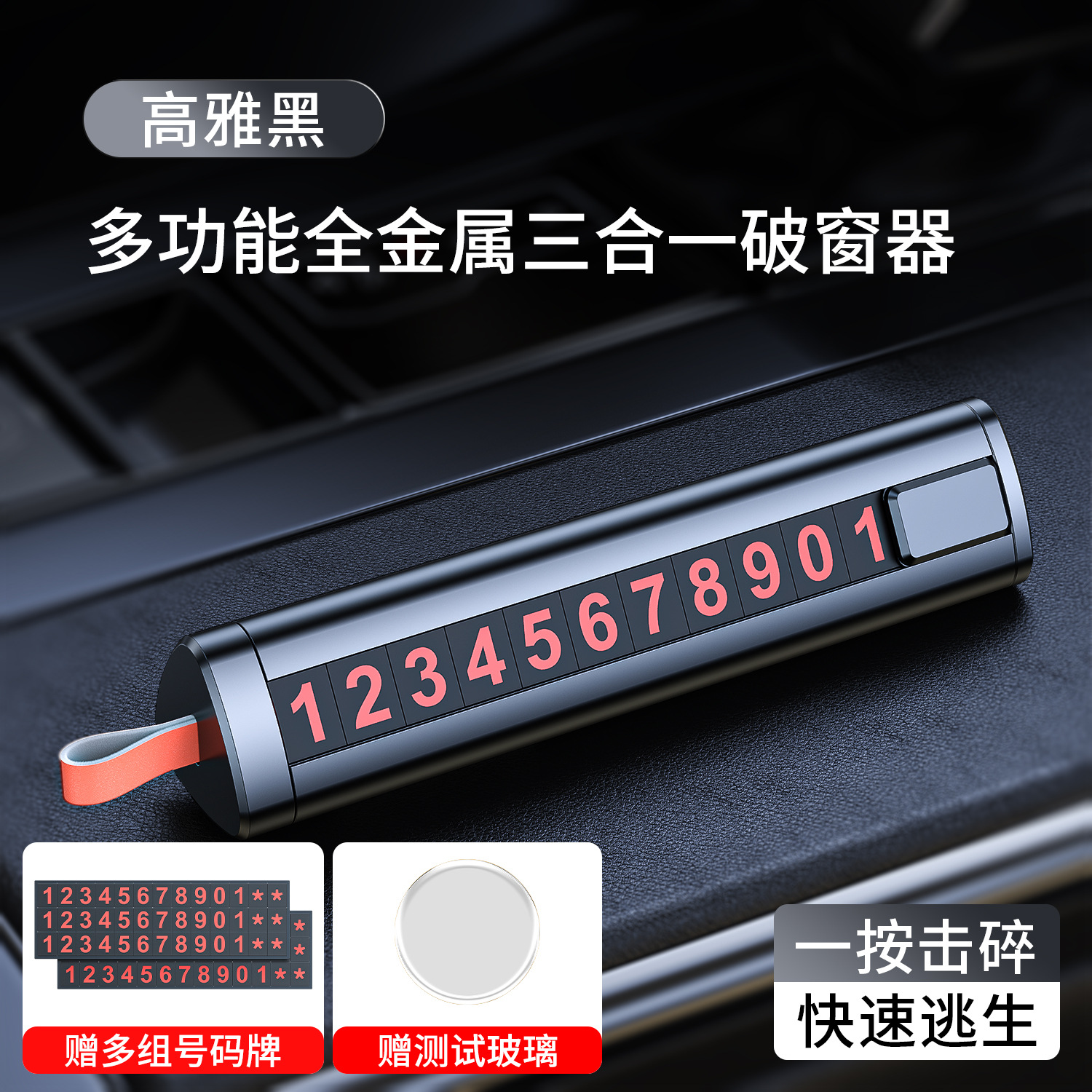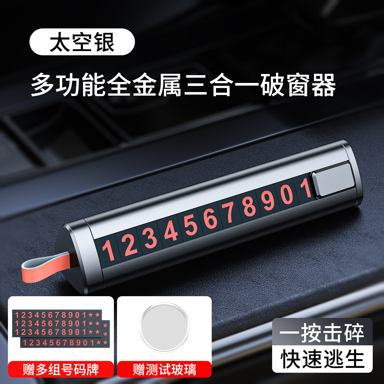 Металлический знак для парковки, номерной знак «три в одном» для автомобиля, стеклобой, аварийный молоток для эвакуации, автомобильный аксессуар для разбивания окон.