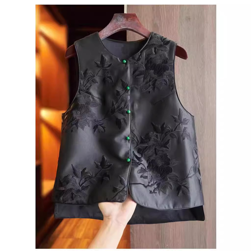 Новый китайский жилет женский 2024 весна новый нишевые дизайн чувство ретро национальный прилив ветер вышитый жакет для лошадей