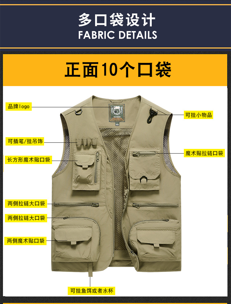 Свободный жилет с несколькими карманами, съемный весенне-летний жилет, внешнеторговый трансграничный дышащий жилет, Рыболовный Жилет Reporter