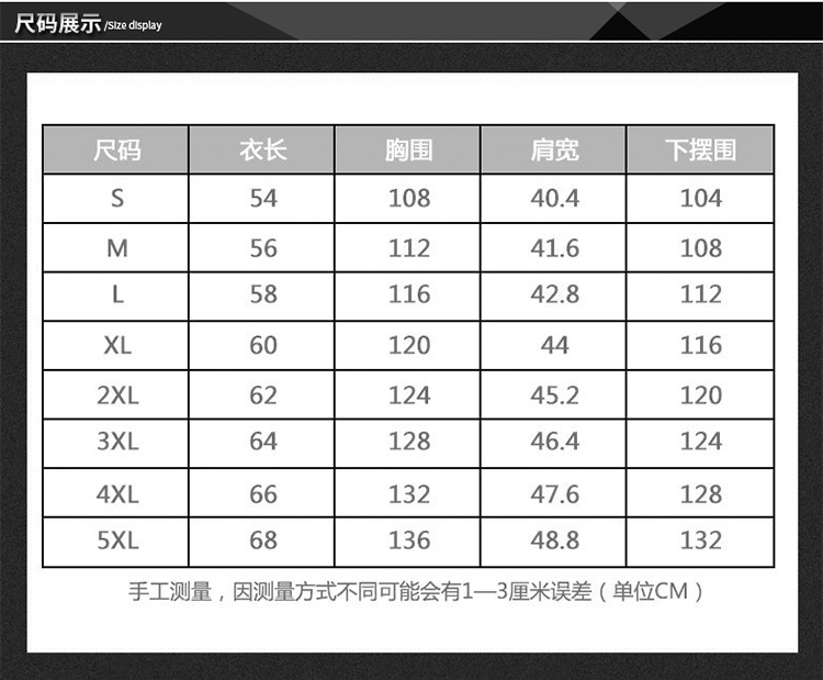 S; M; L; XL; XXL; XXXL; XXXXL; 5XL; 6XL