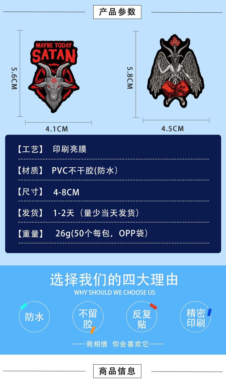 50 шт. Черный фон дьявол сатана граффити наклейки мотоциклетный шлем скейтборд динамик водонепроницаемые наклейки оптом