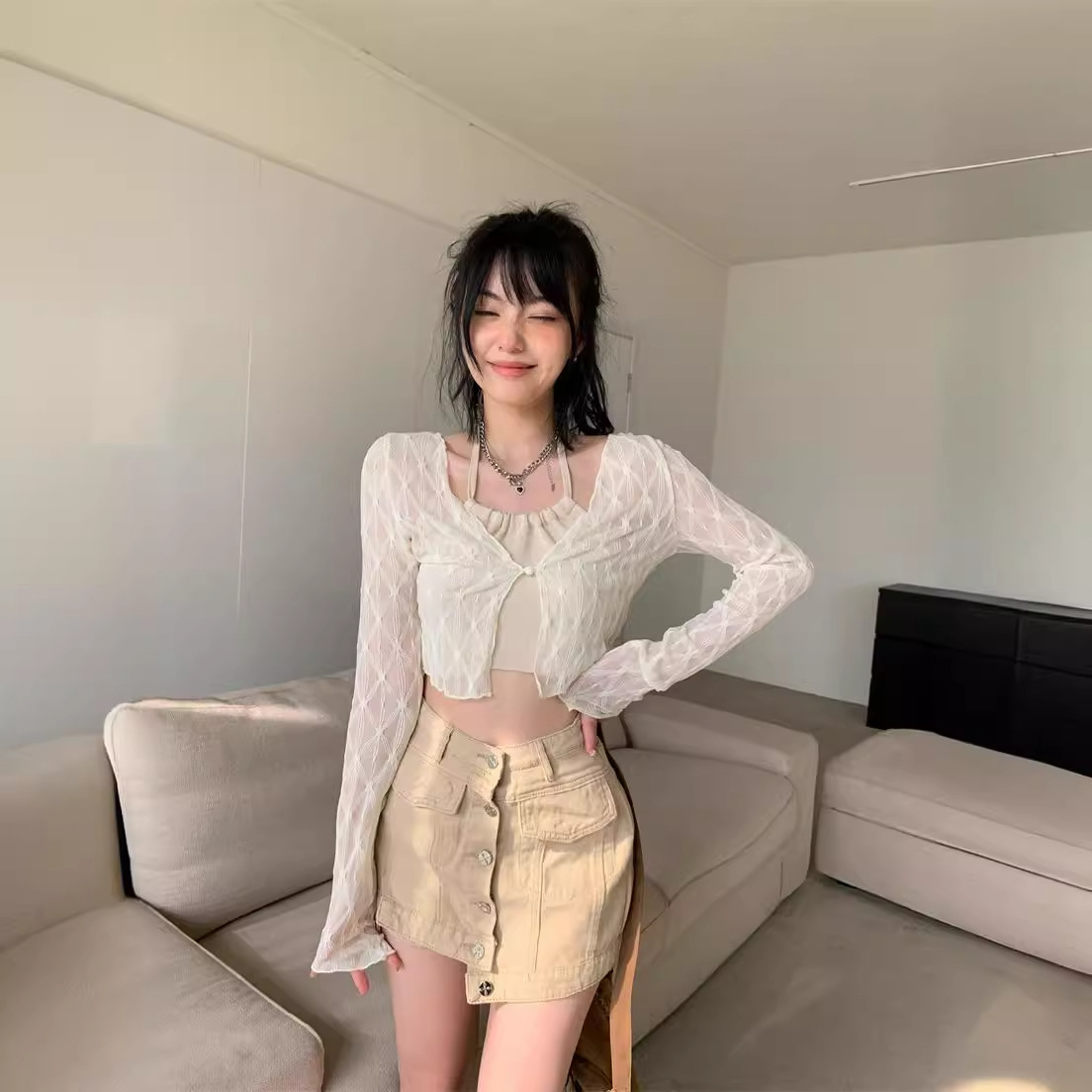 Дизайнерская красотка нишевая девушка кардиган женский весенний и летний солнцезащитный крем рубашка тонкая тонкая тонкая шаль