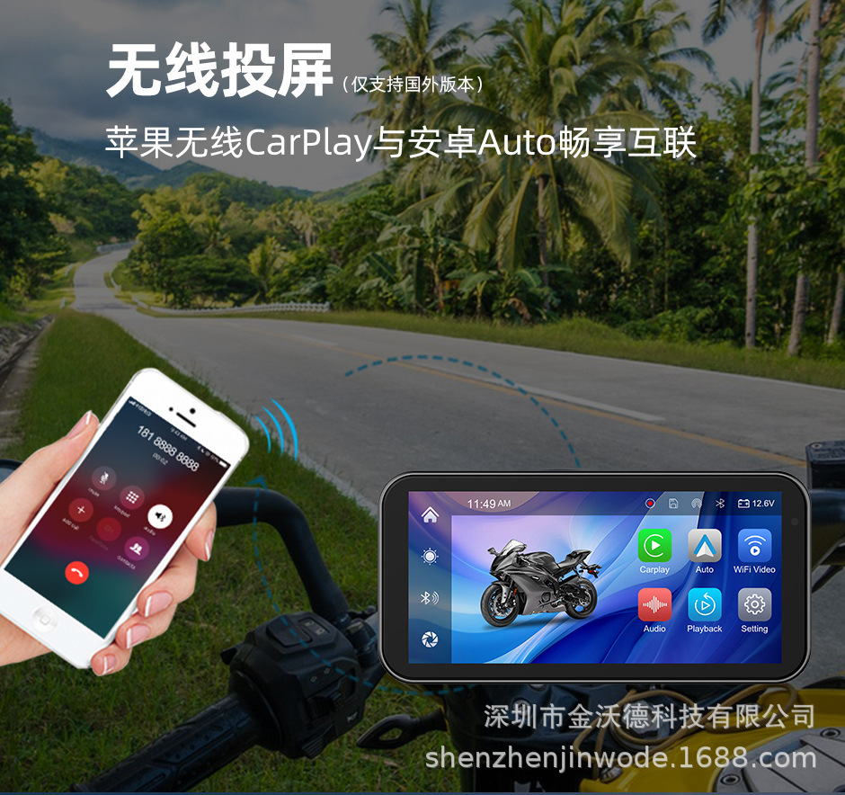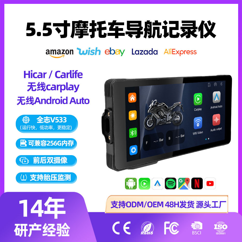 Трансграничный специальный мотоциклетный рекордер, беспроводной Carplay/Androidauto, мобильный телефон, экран мотоцикла, навигация