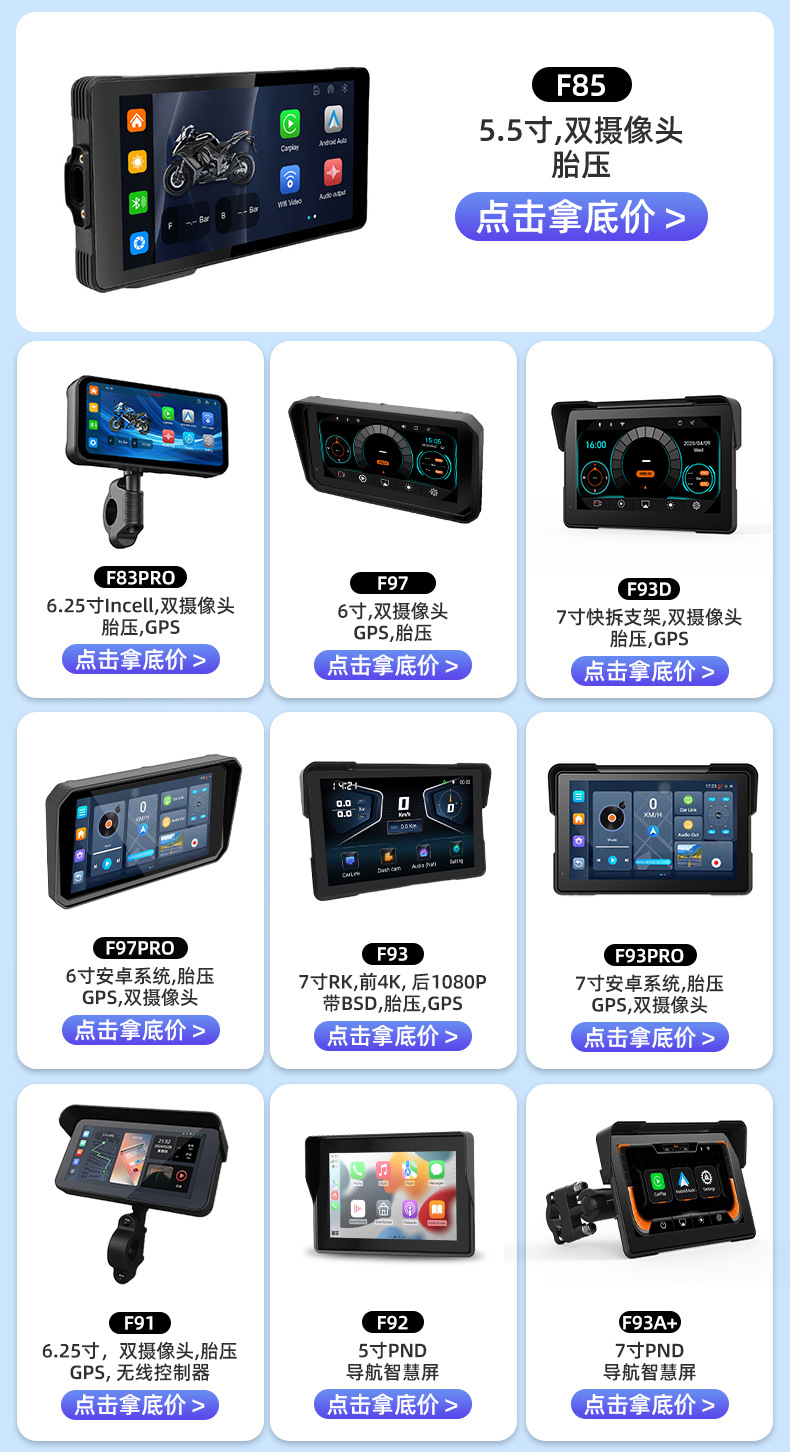 F83 Carplay+Android авто зарубежная версия+двойной объектив; F83A Carplay+Android авто зарубежная версия без двойного объектива; F83T Carplay+Android авто зарубежная версия+двойной объектив+давление в шинах; F85 зарубежная версия+давление в шинах Carplay+Android auto; F97 иностранный вариант проекции экрана Carplay+Androidauto+двойная камера+давление в шинах+GPS; F83Pro зарубежная версия Carplay/Android auto+двойной объектив+давление в шинах+GPS; F83A+ иностранный вариант Carplay/Android auto, чистая проекция экрана; F93D зарубежная версия Carplay+Androidauto+двойная камера+GPS+давление в шинах; F93A+ зарубежная версия Carplay Androidauto; F93 зарубежная версия Carplay+Androidauto+двойная камера+давление в шинах+GPS; F91 зарубежная версия Carplay+Androidauto+давление в шинах+GPS+двойная камера+беспроводное управление