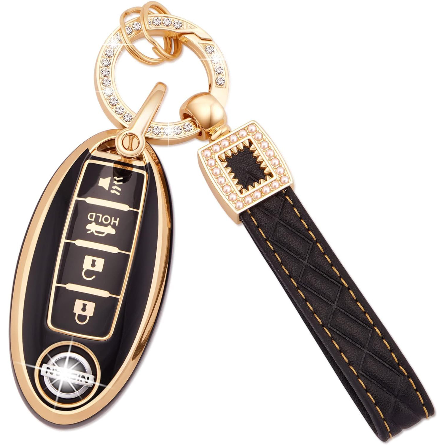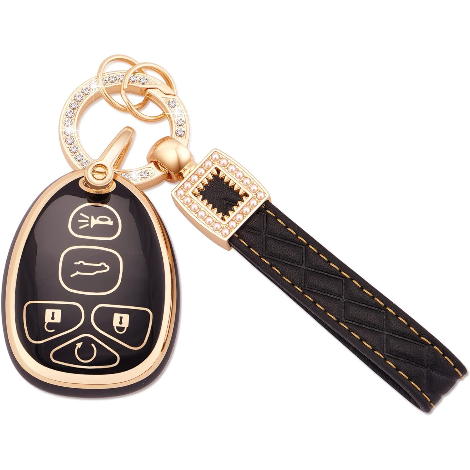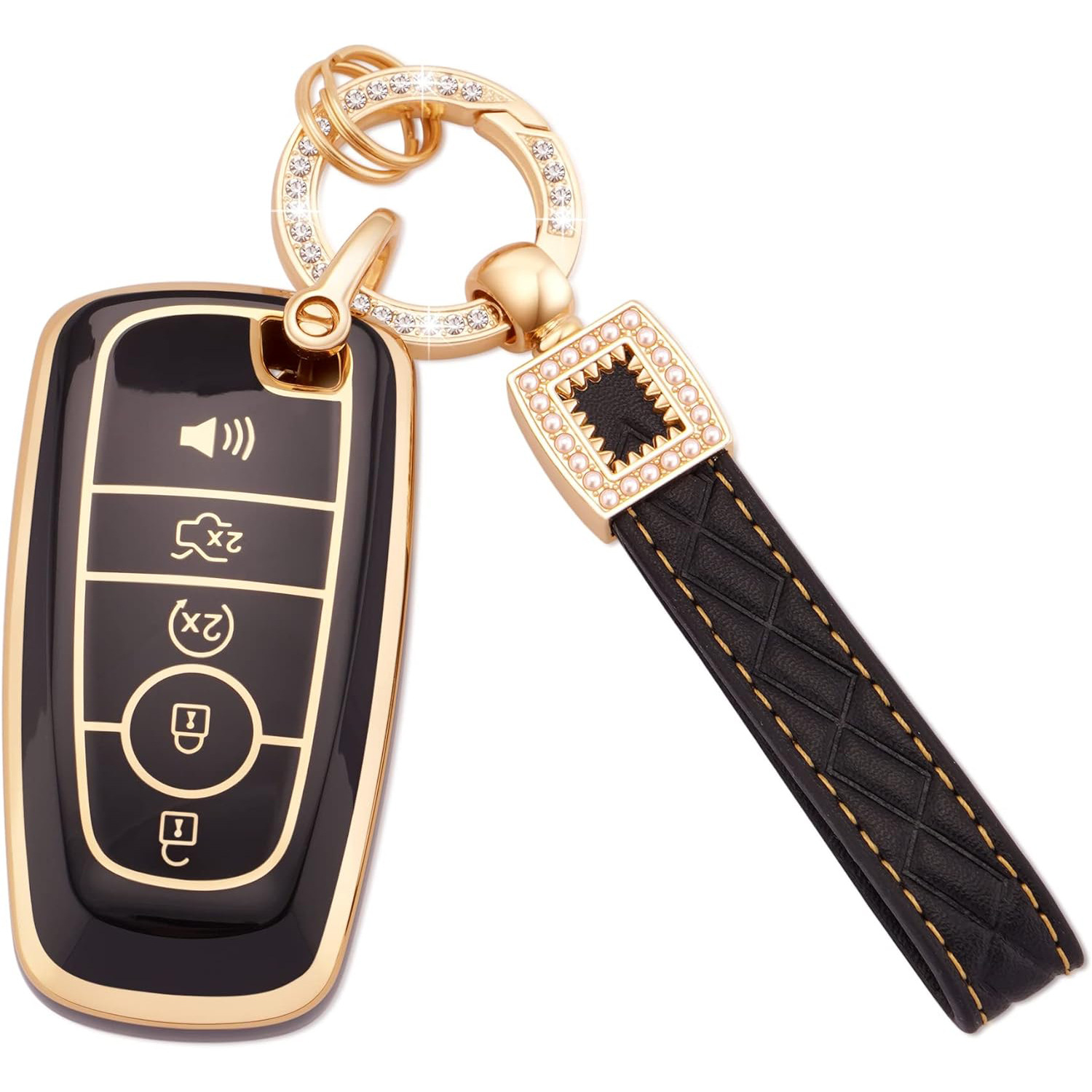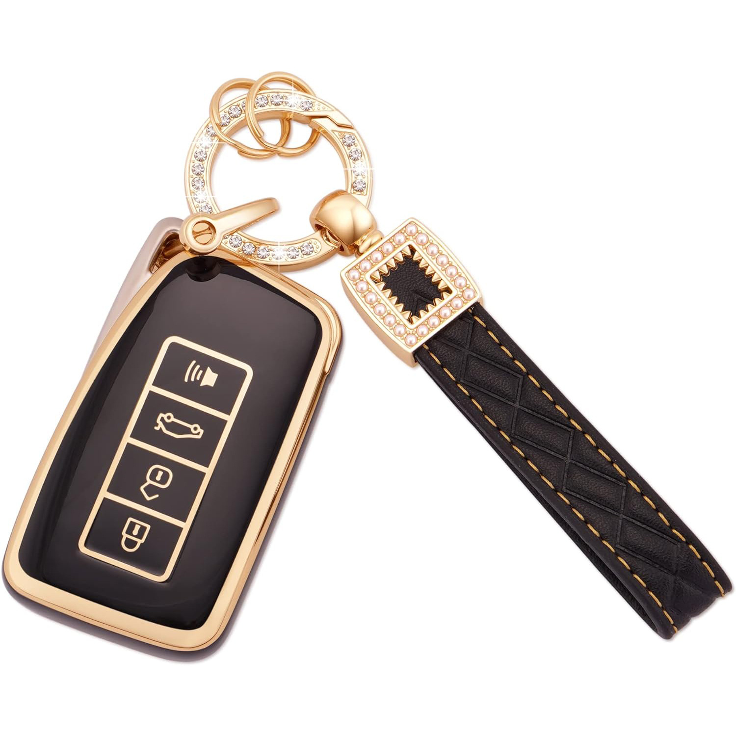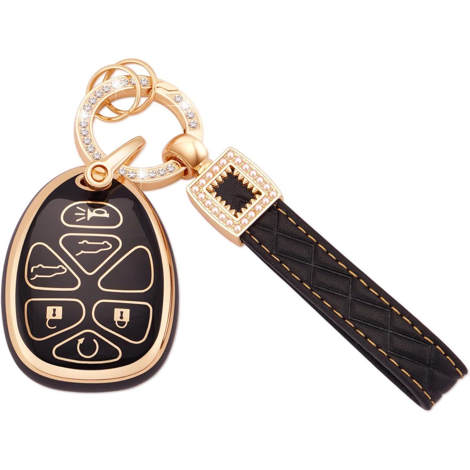 Трансграничная оптовая продажа горячие продажи золотой край Автомобильный ключ чехол с бриллиантом кольцо жемчуг Личи узор брелок Amazon Автомобильный ключ чехол