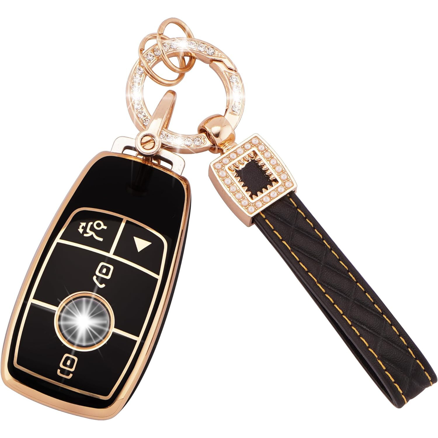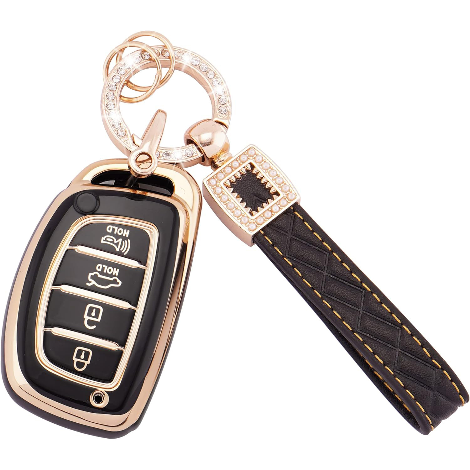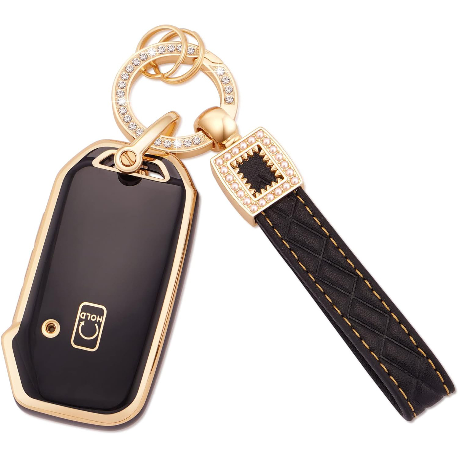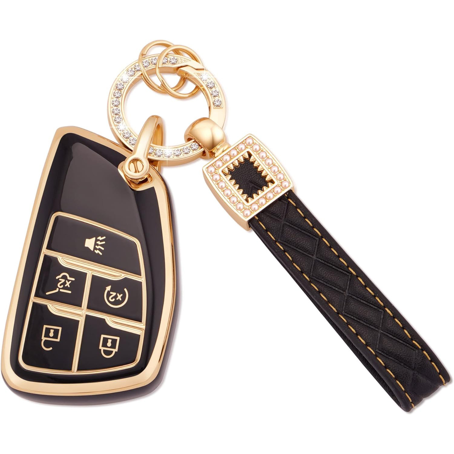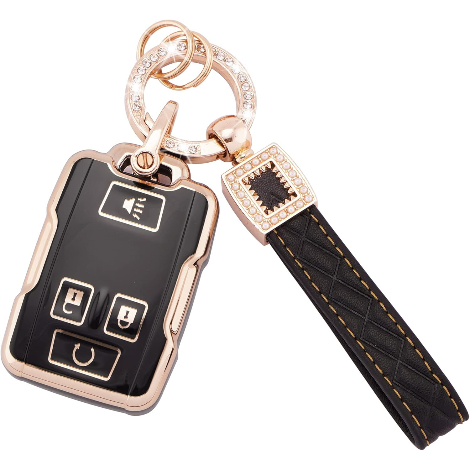 Трансграничная оптовая продажа горячие продажи золотой край Автомобильный ключ чехол с бриллиантом кольцо жемчуг Личи узор брелок Amazon Автомобильный ключ чехол