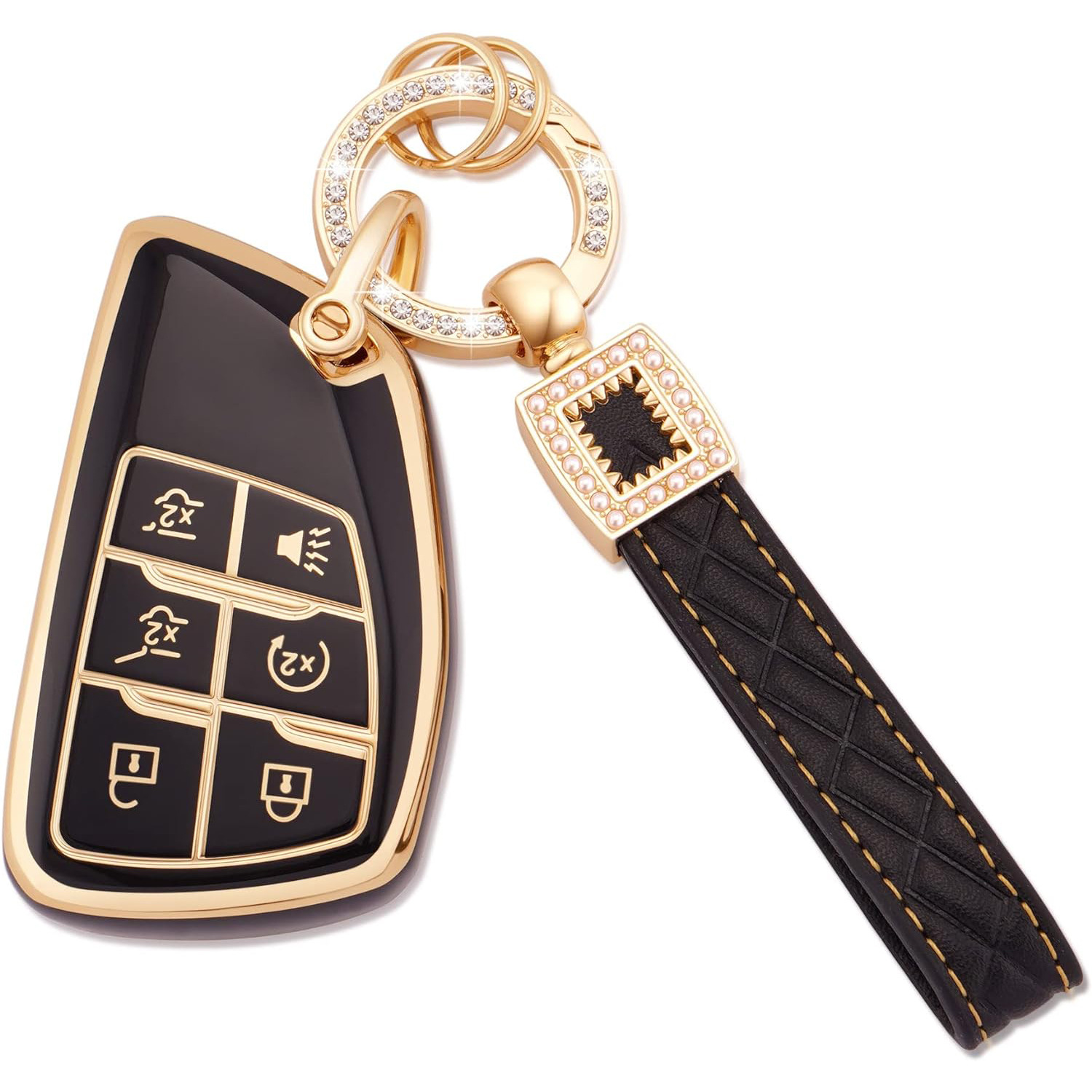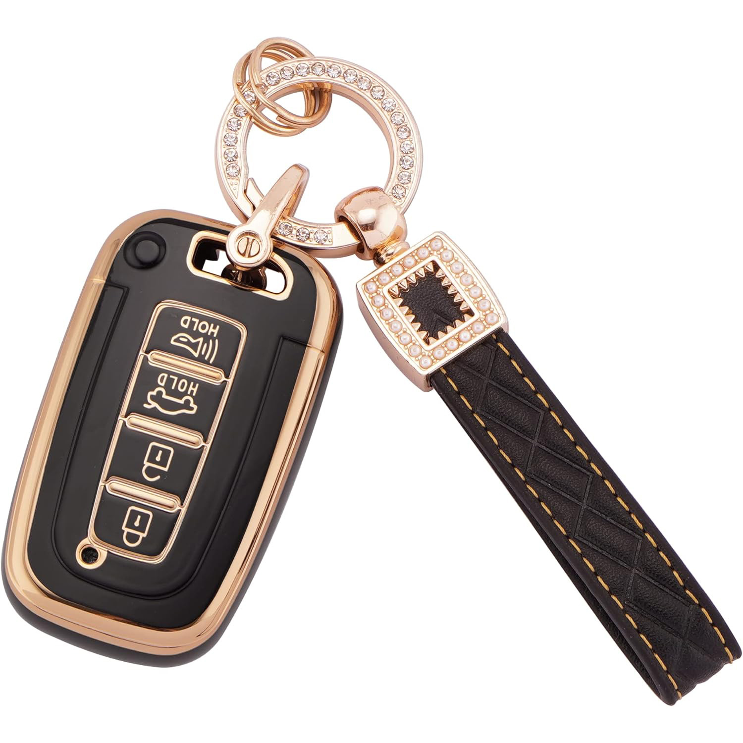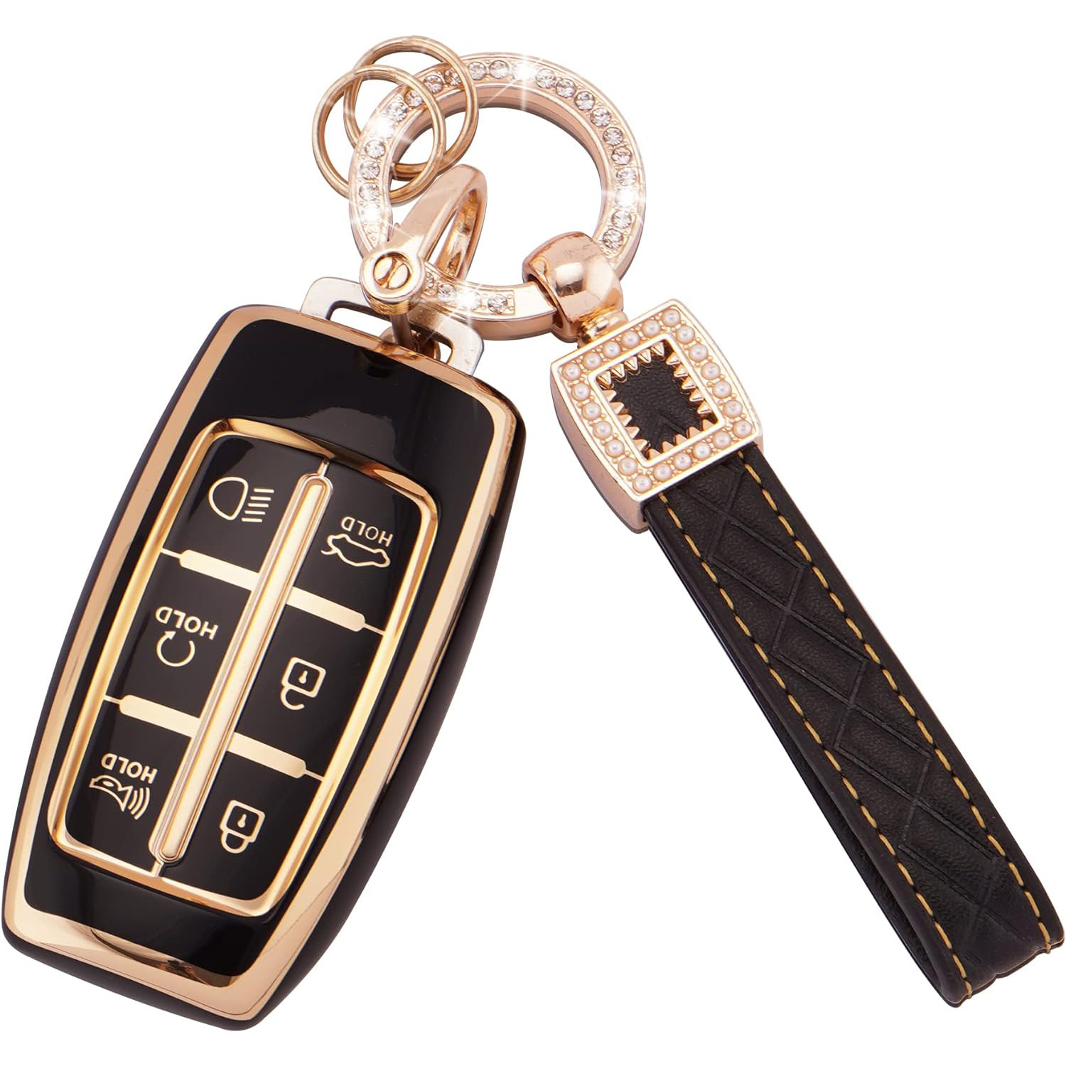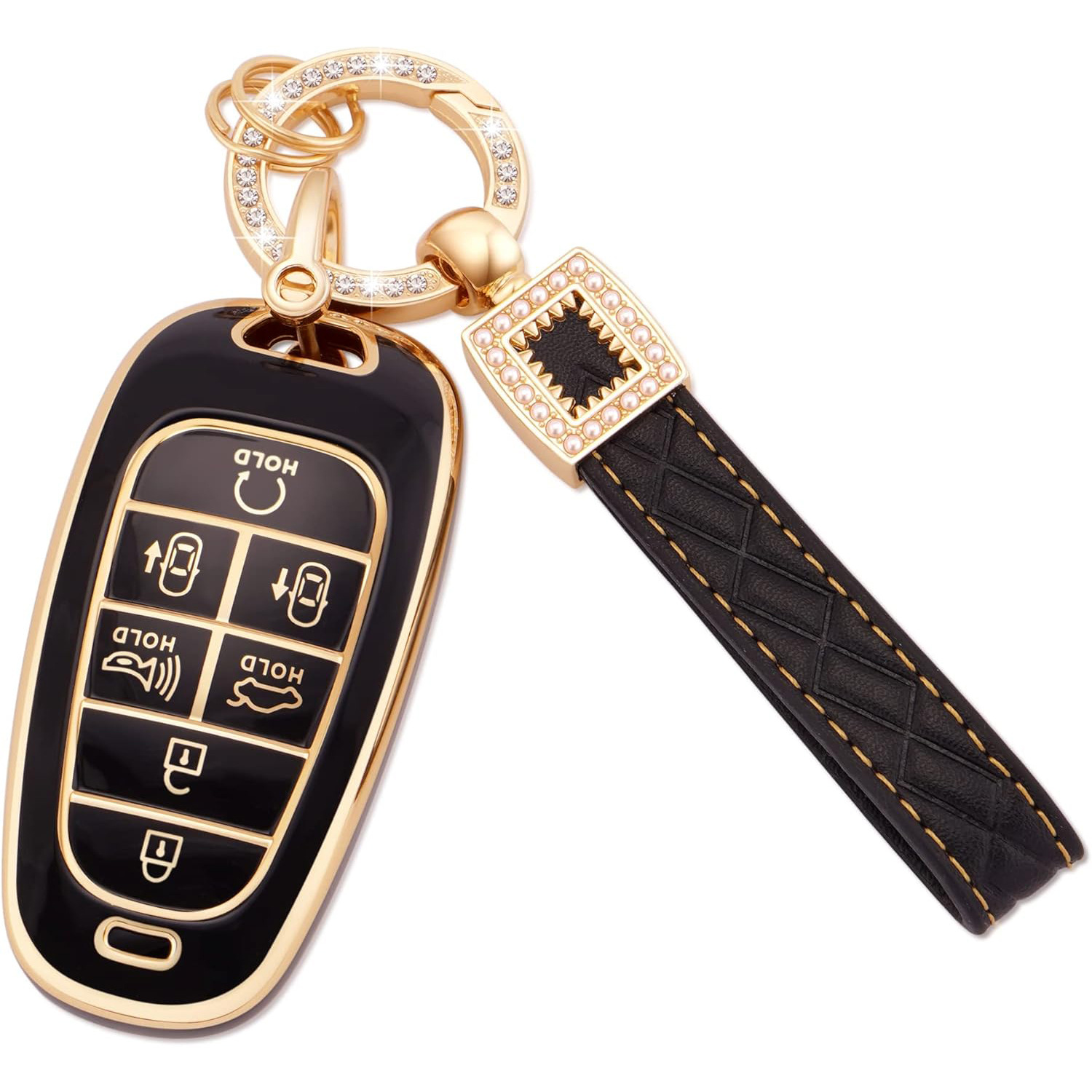 Трансграничная оптовая продажа горячие продажи золотой край Автомобильный ключ чехол с бриллиантом кольцо жемчуг Личи узор брелок Amazon Автомобильный ключ чехол