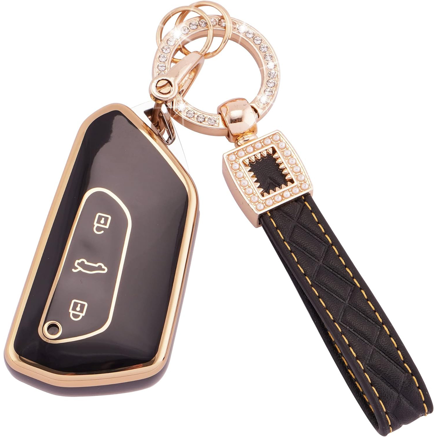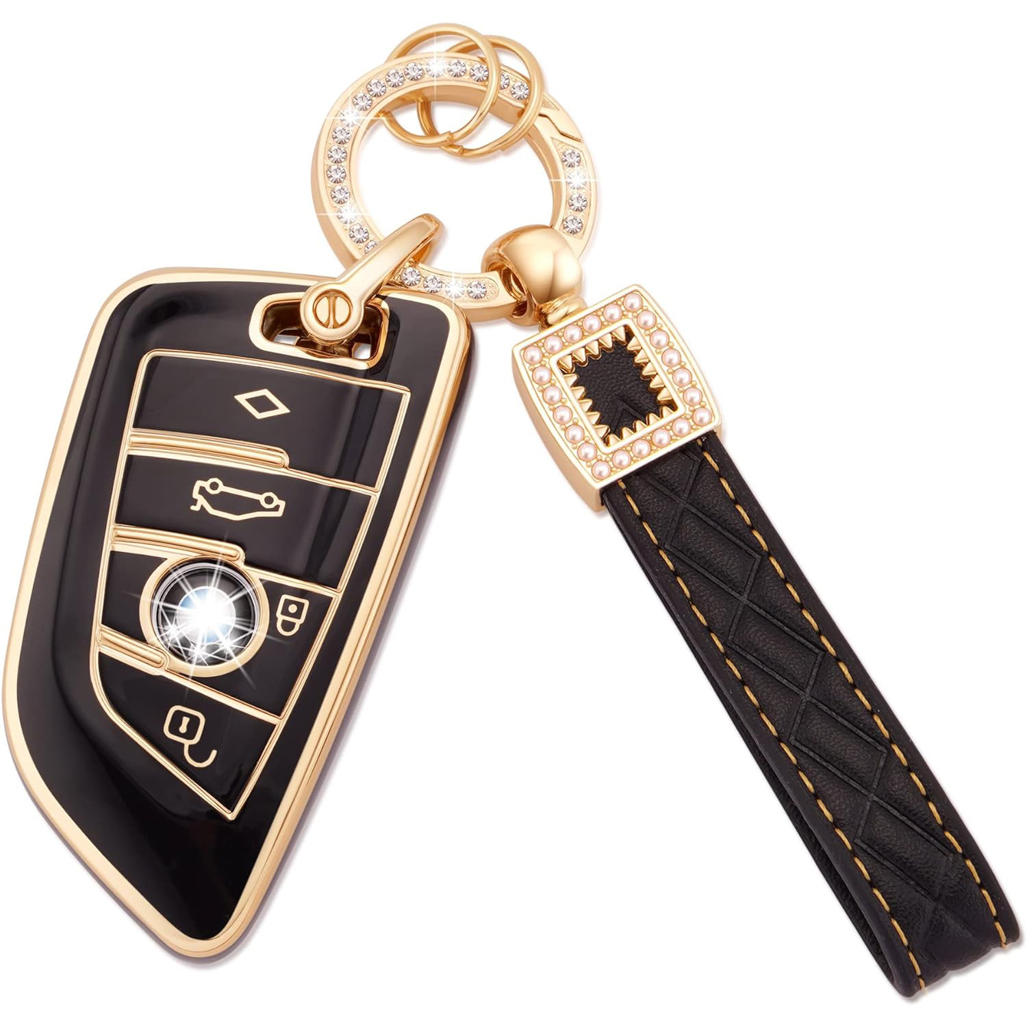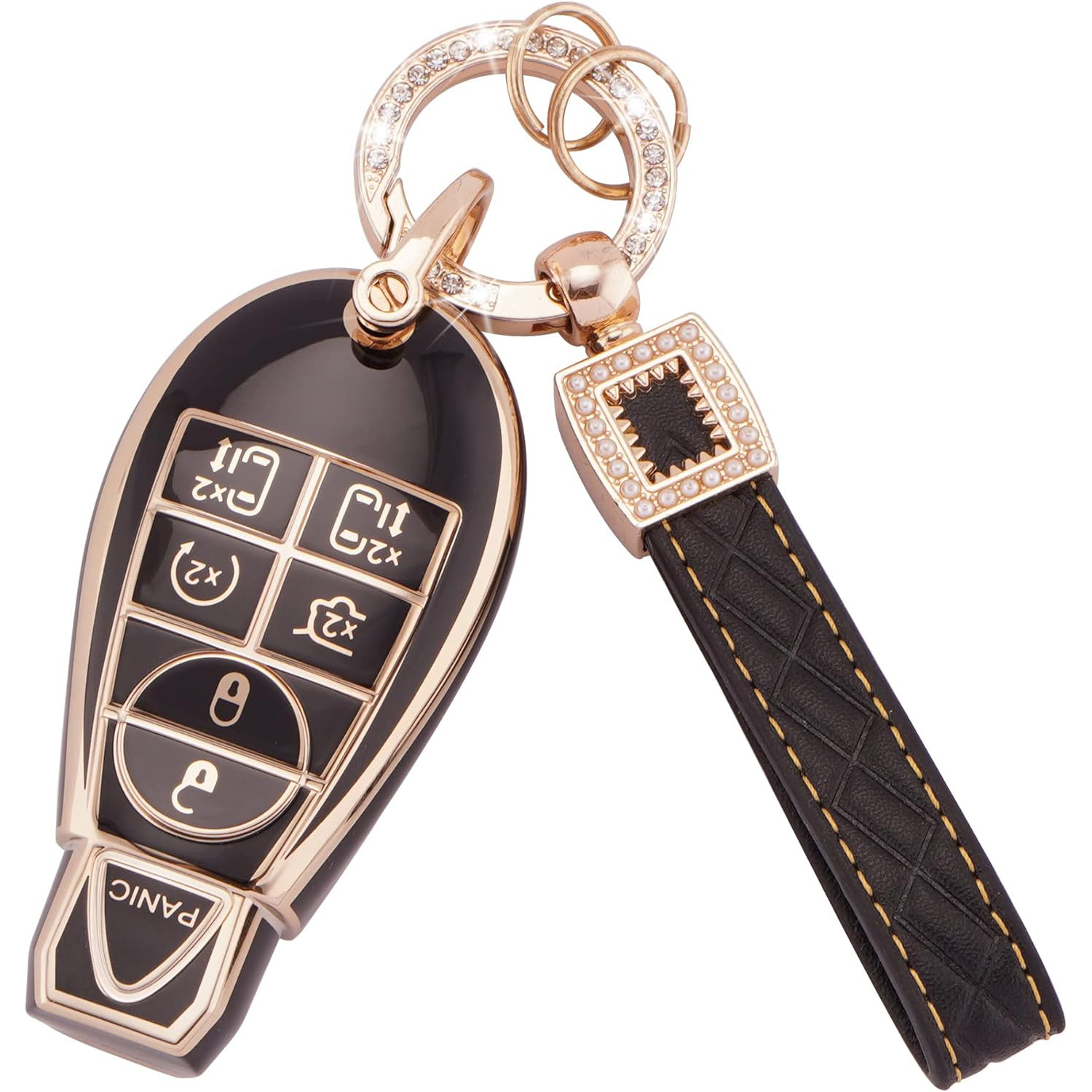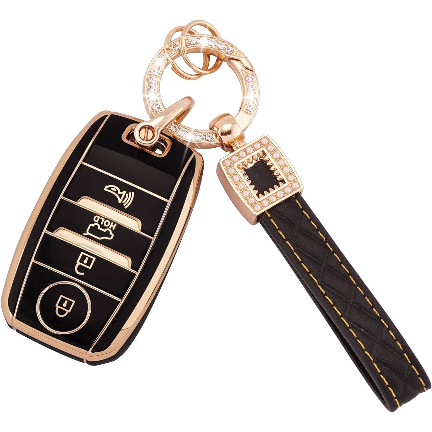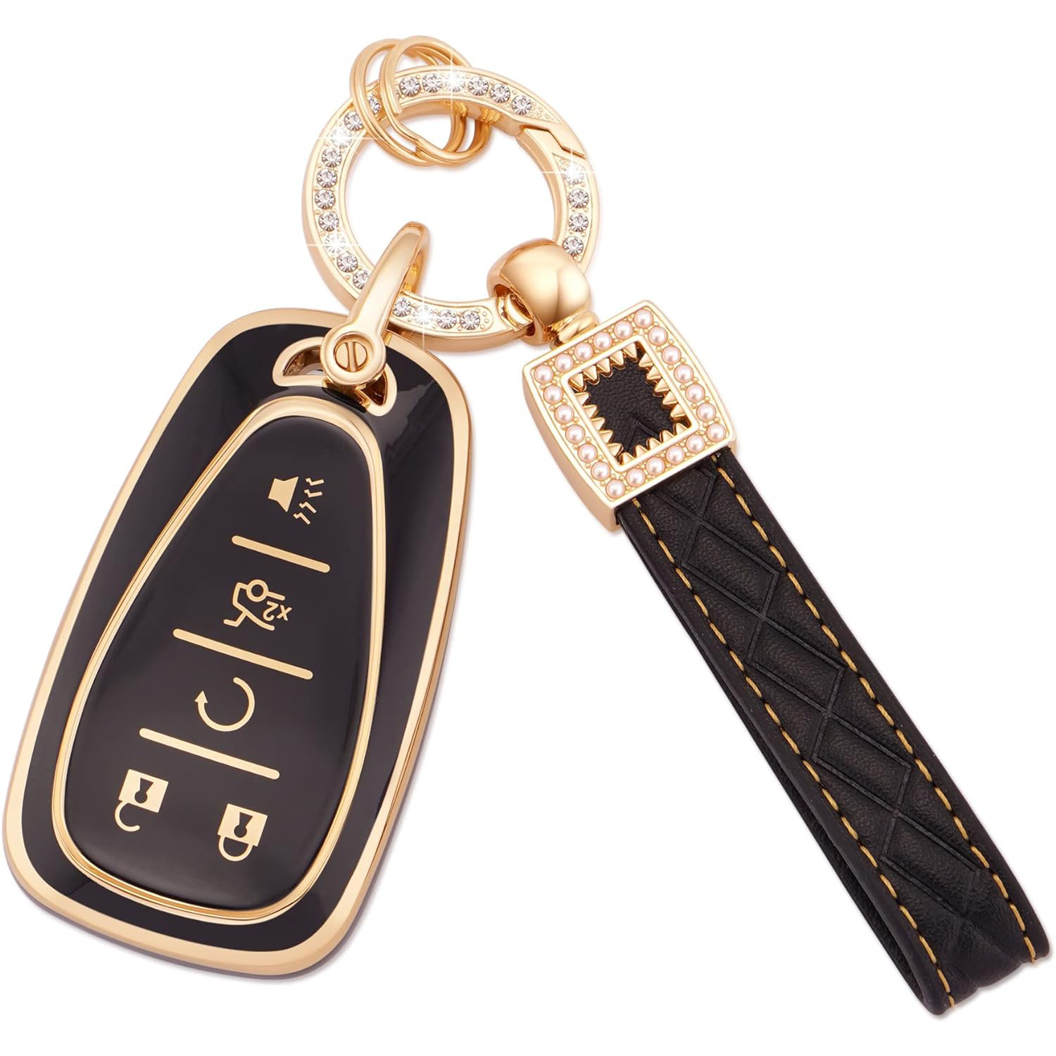 Трансграничная оптовая продажа горячие продажи золотой край Автомобильный ключ чехол с бриллиантом кольцо жемчуг Личи узор брелок Amazon Автомобильный ключ чехол