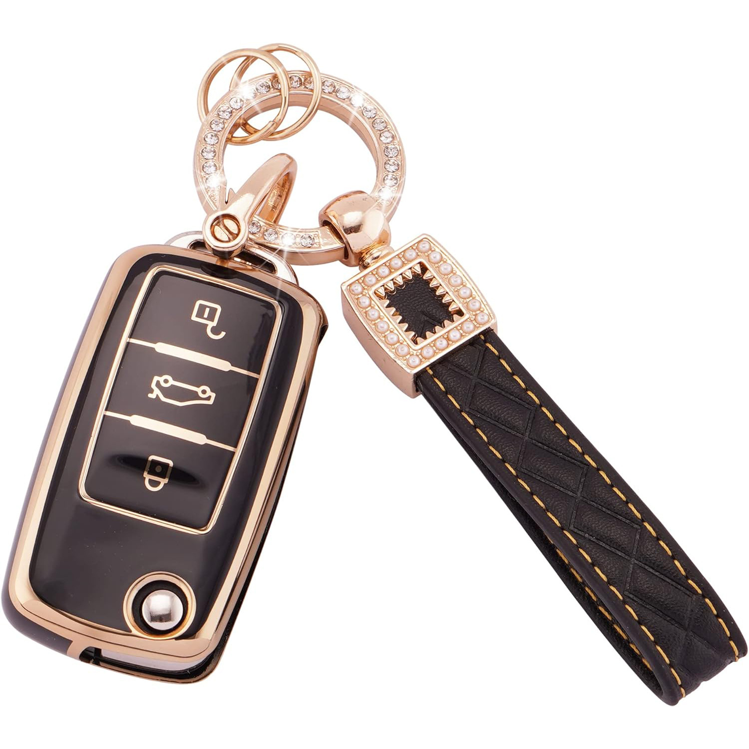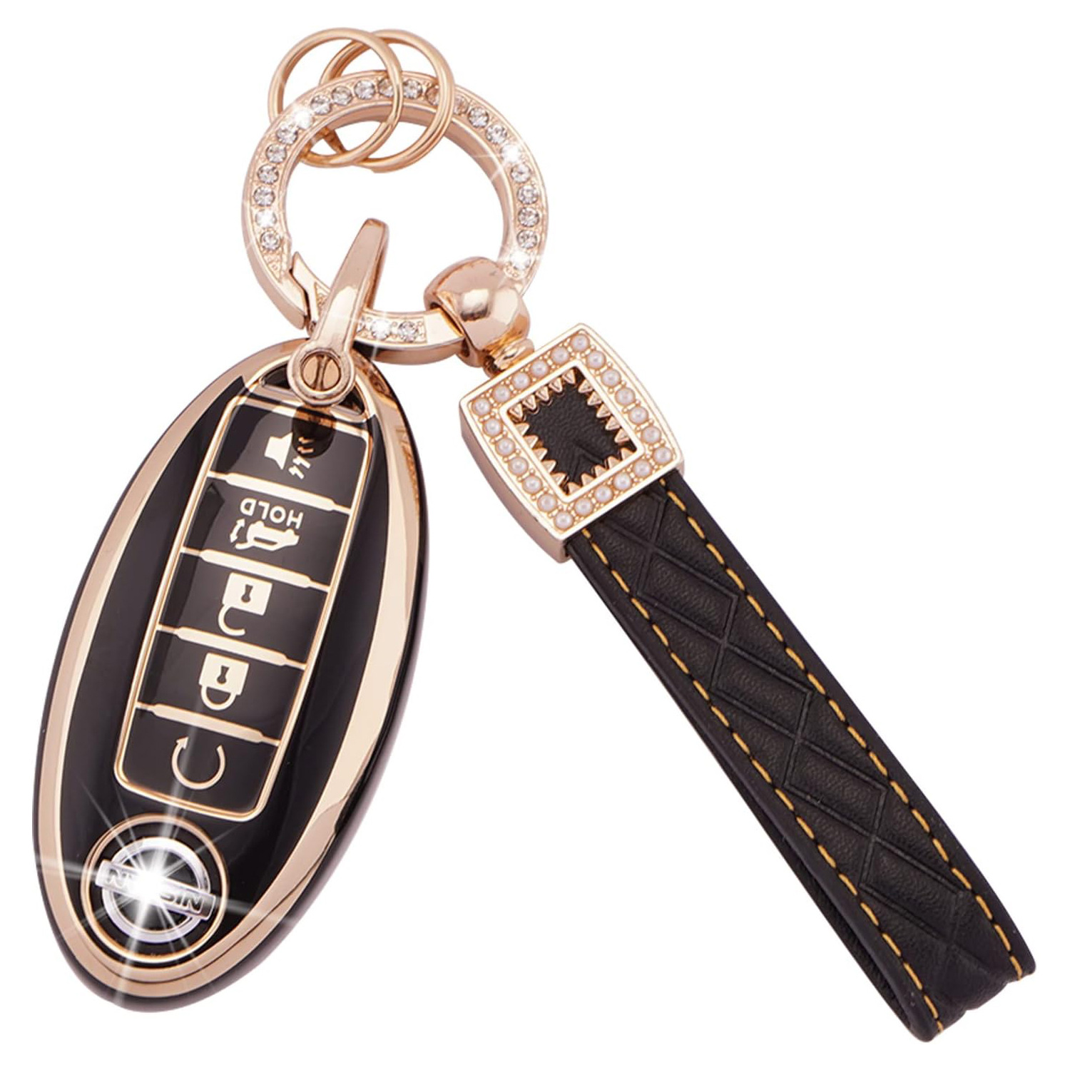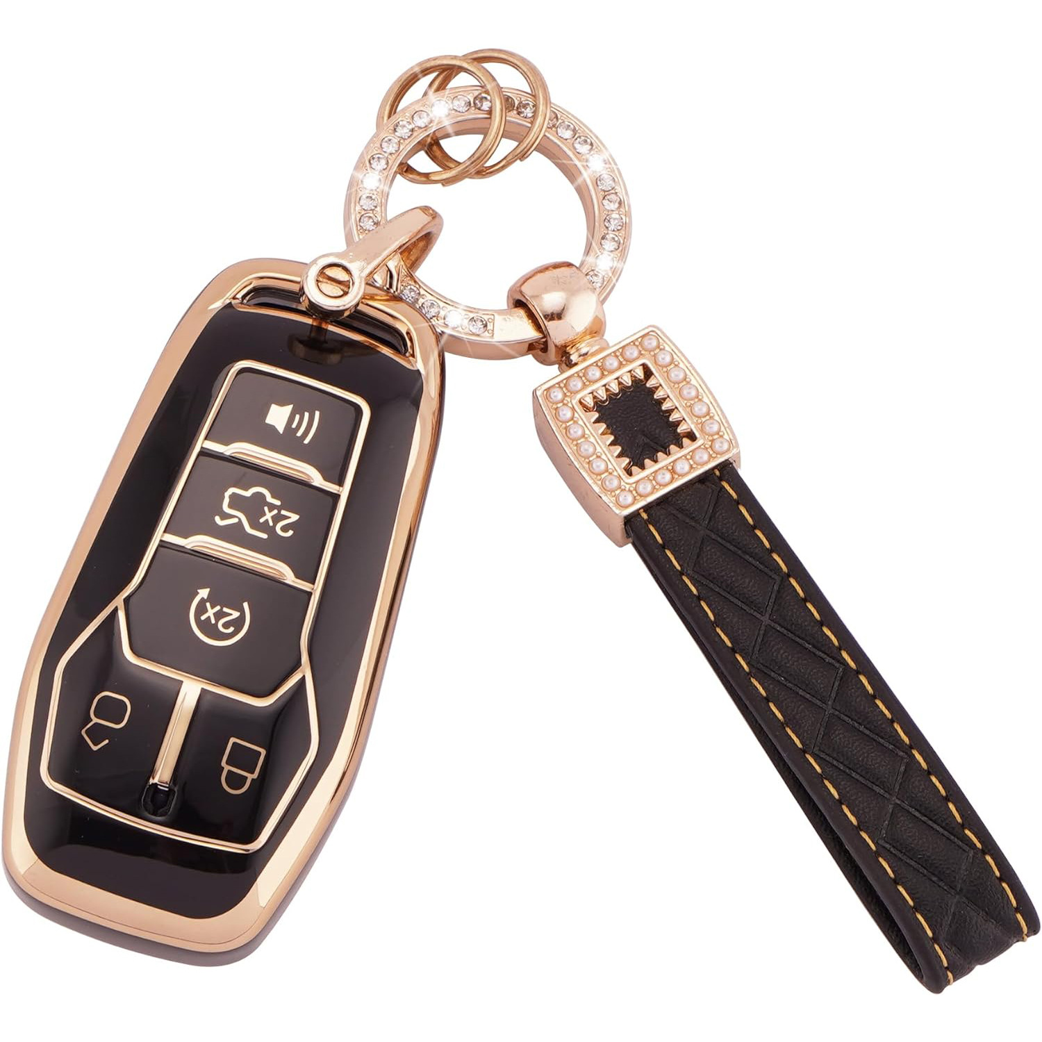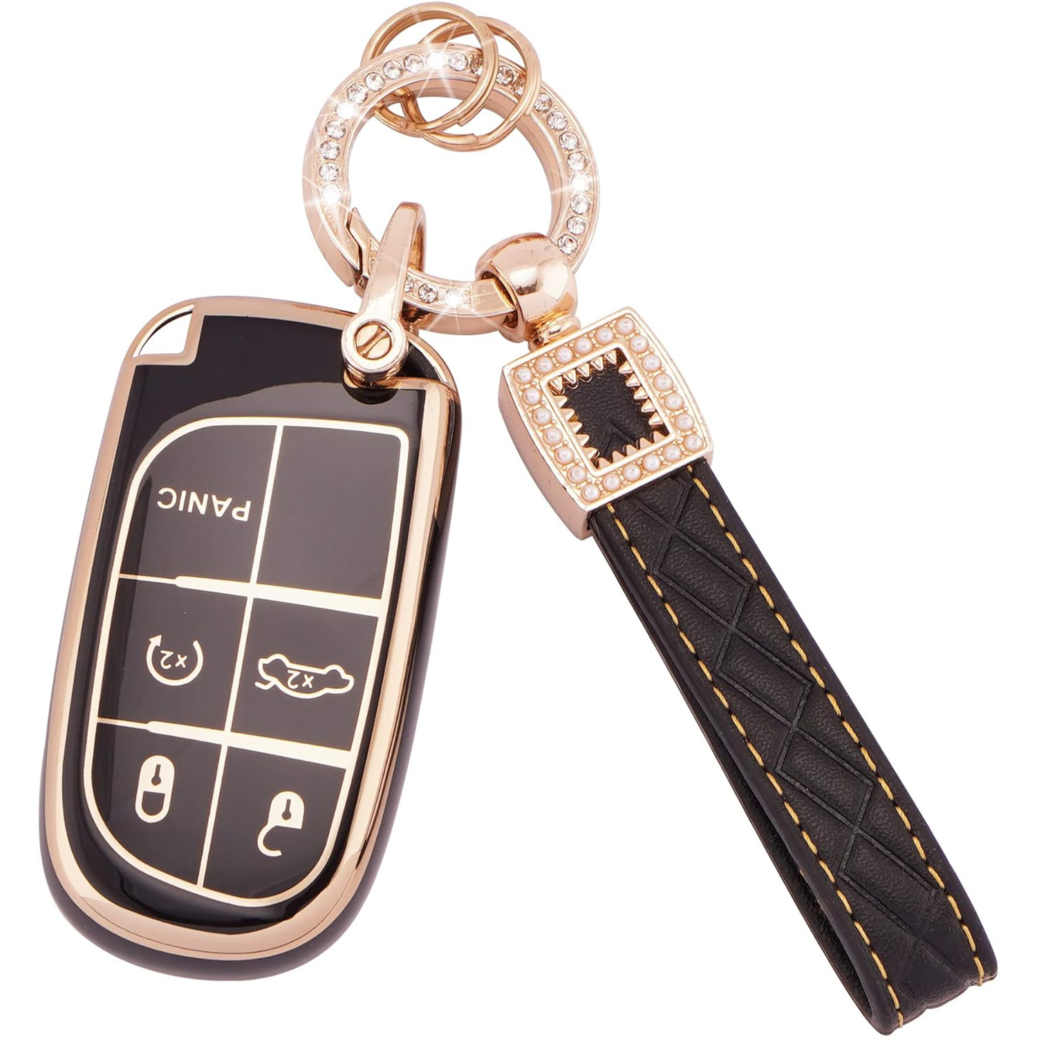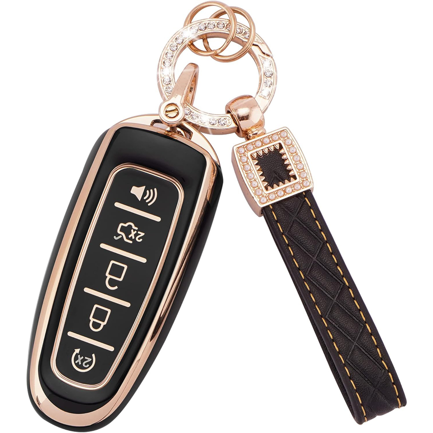 Трансграничная оптовая продажа горячие продажи золотой край Автомобильный ключ чехол с бриллиантом кольцо жемчуг Личи узор брелок Amazon Автомобильный ключ чехол