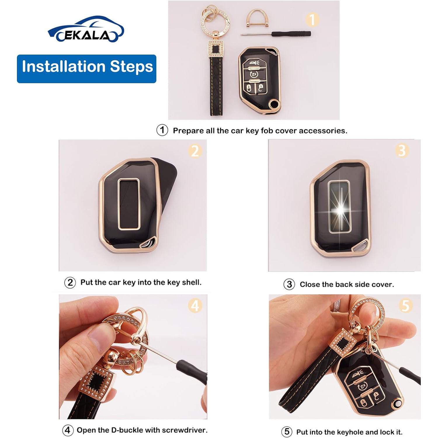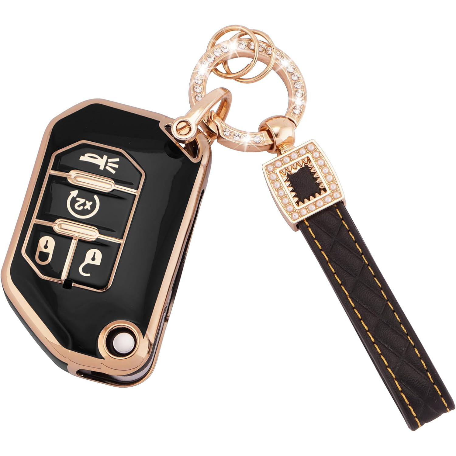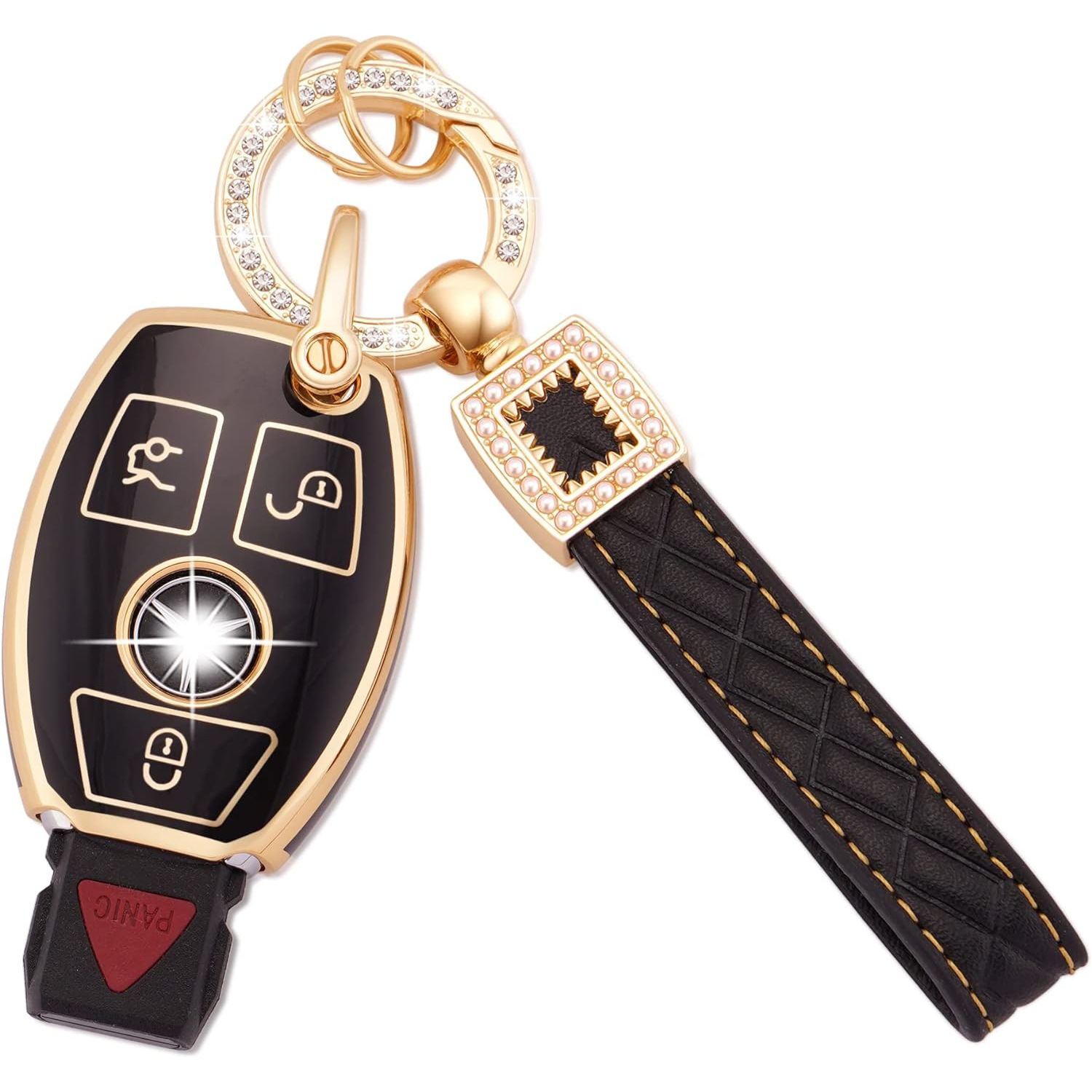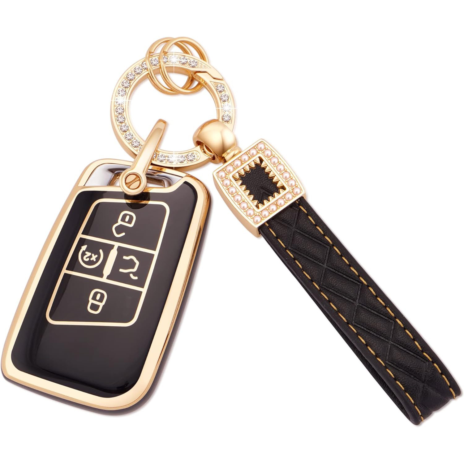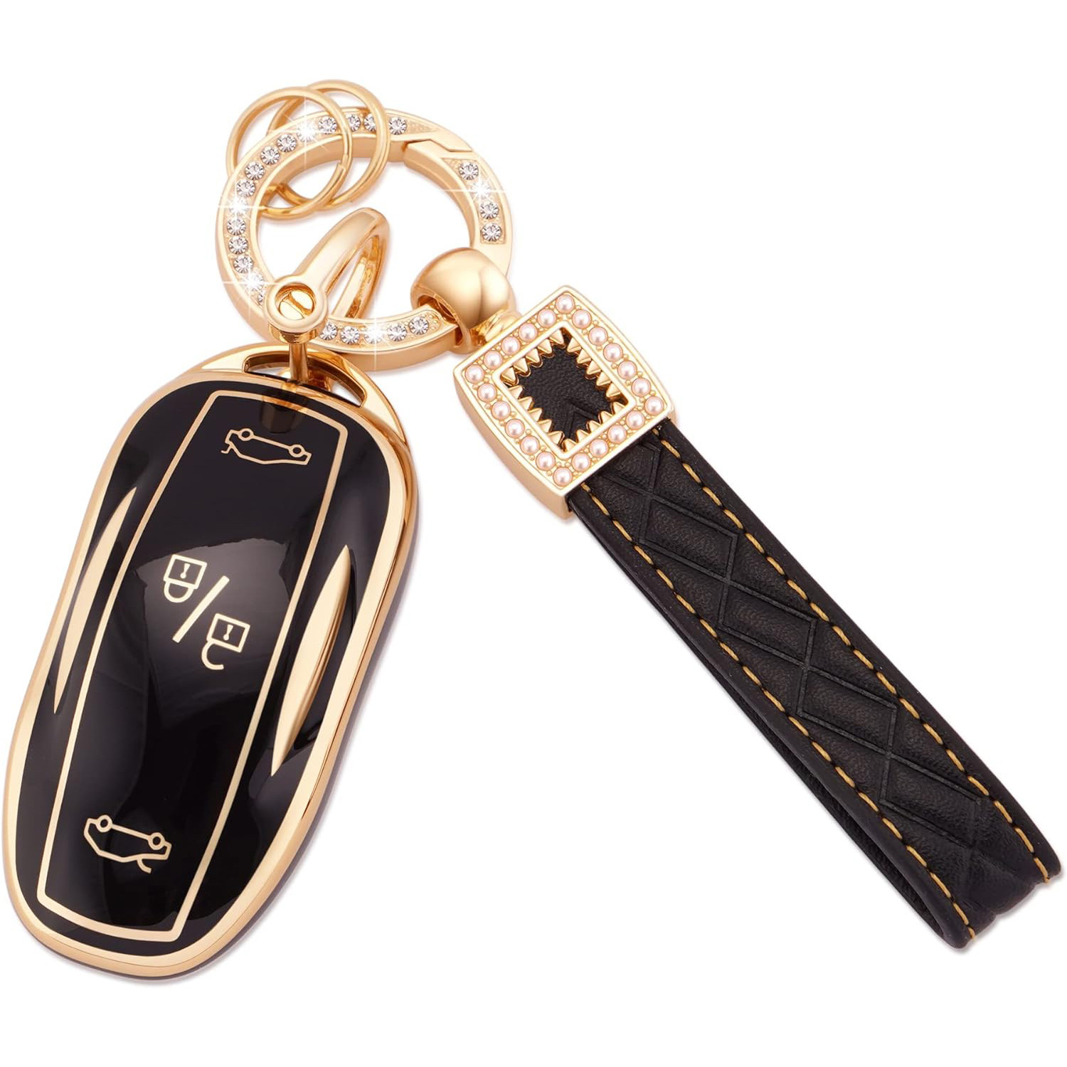 Трансграничная оптовая продажа горячие продажи золотой край Автомобильный ключ чехол с бриллиантом кольцо жемчуг Личи узор брелок Amazon Автомобильный ключ чехол