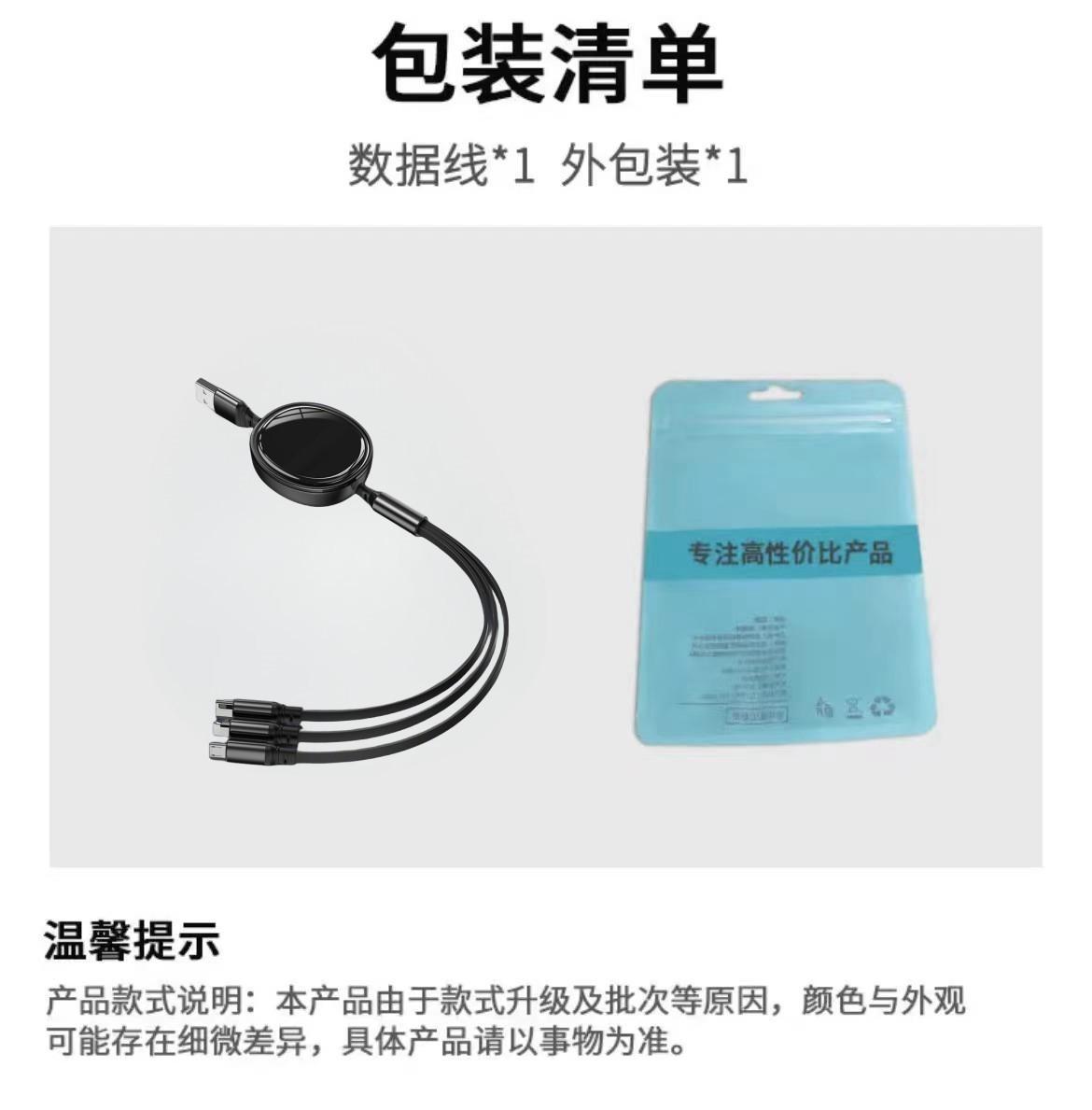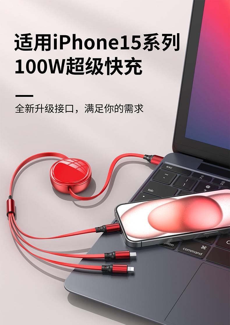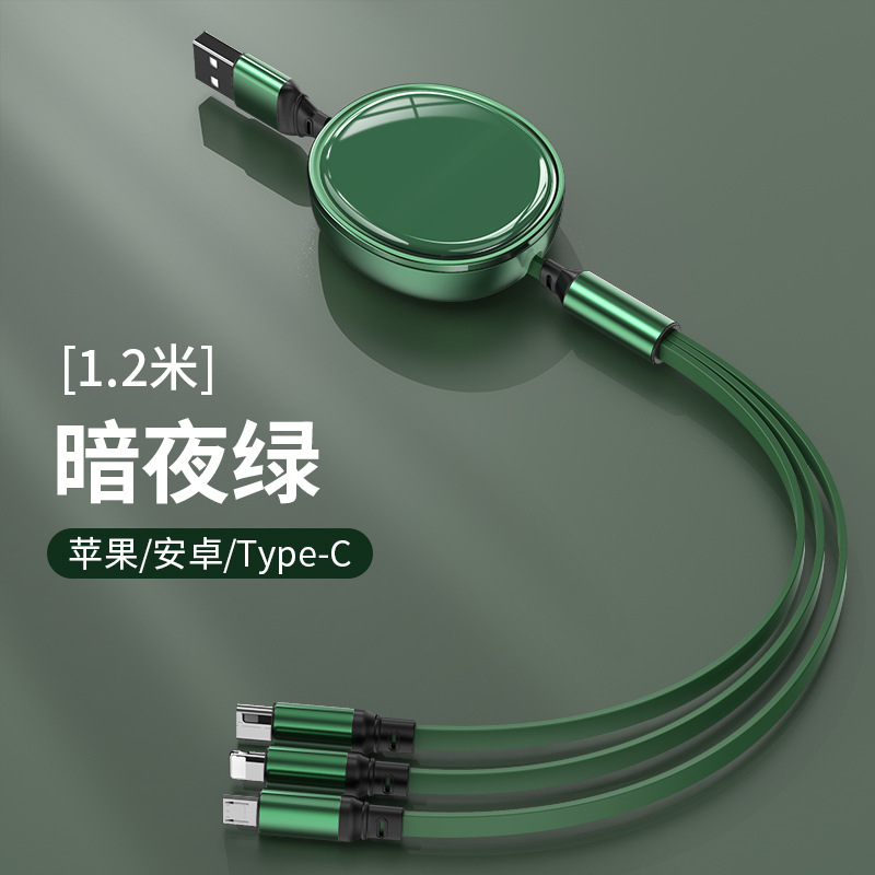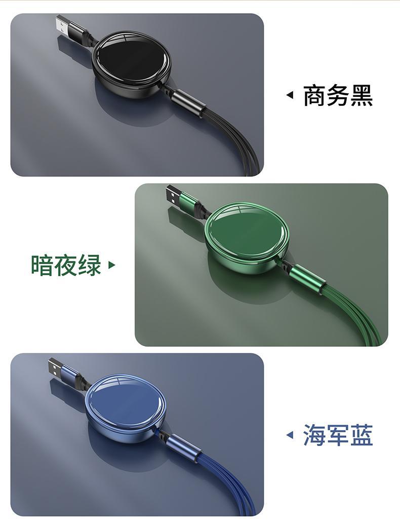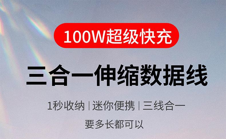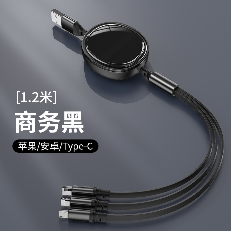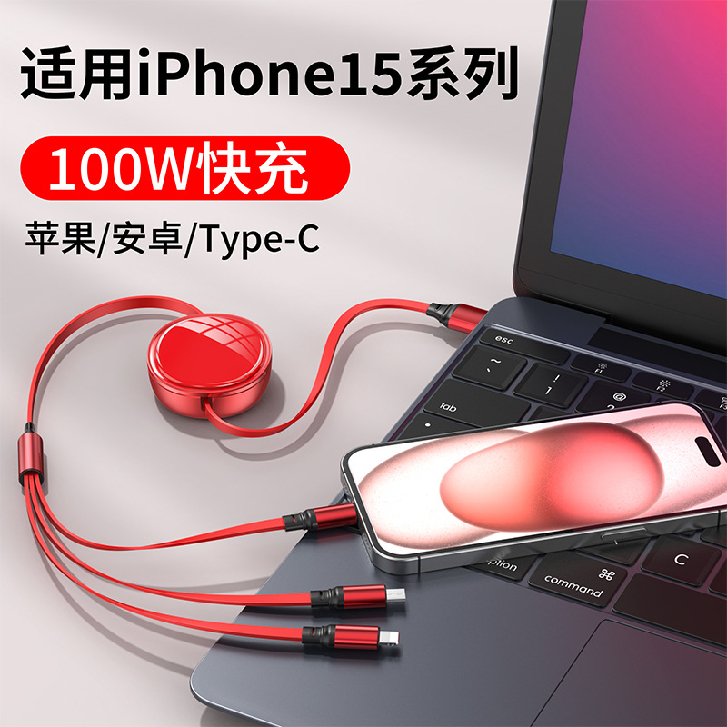 Выдвижной кабель для передачи данных «три в одном», 100 Вт, сверхбыстрая зарядка «один-три», подходит для кабеля для флэш-зарядки Huawei Apple Android