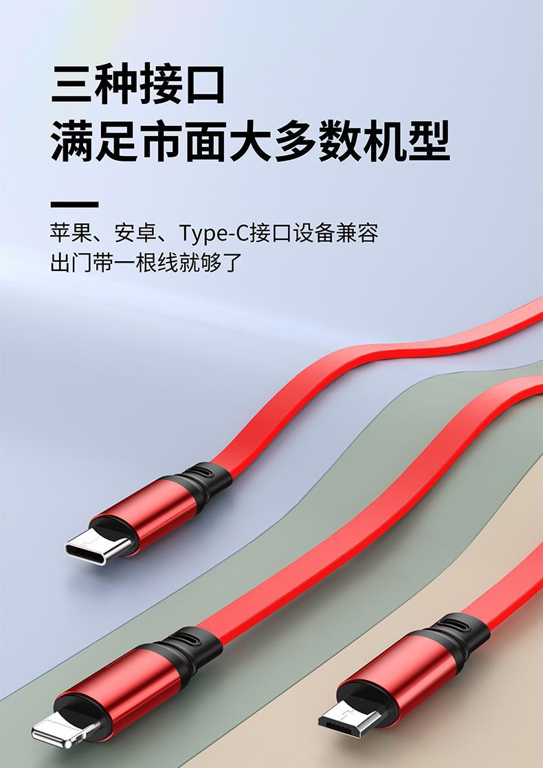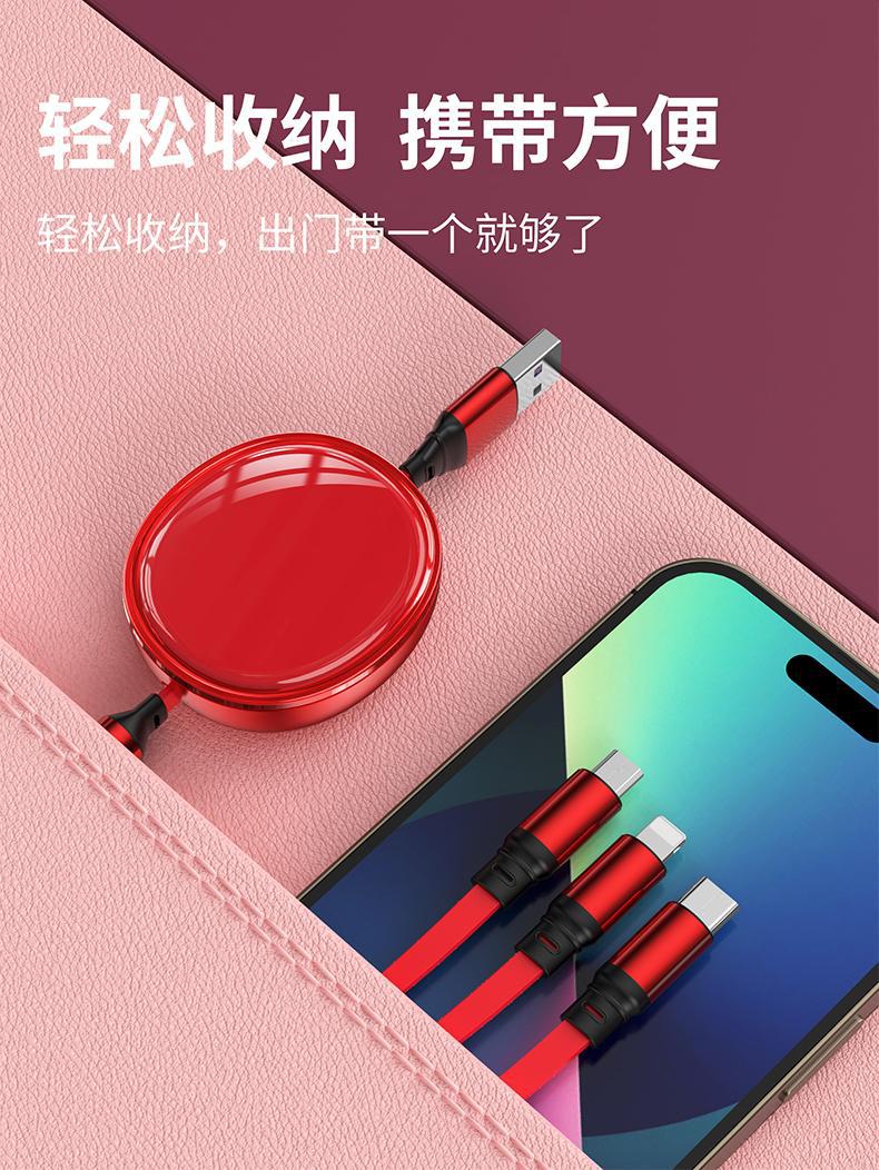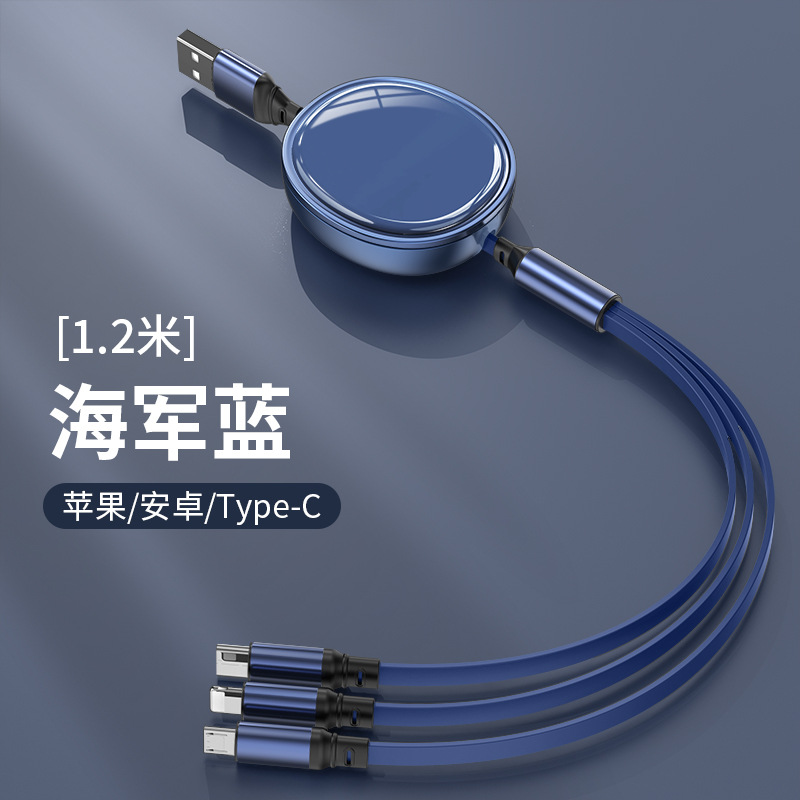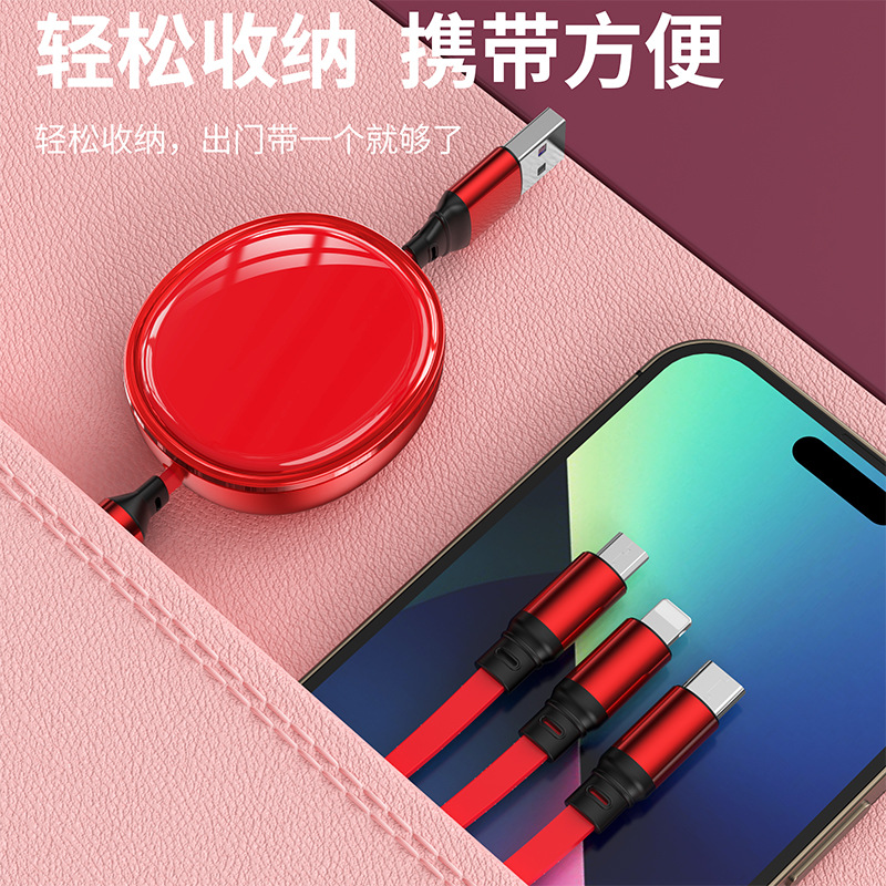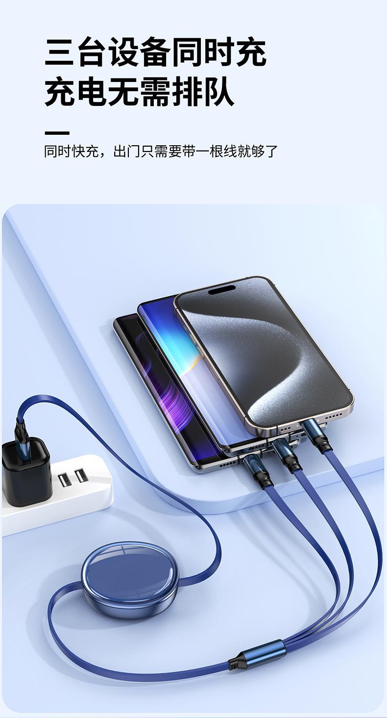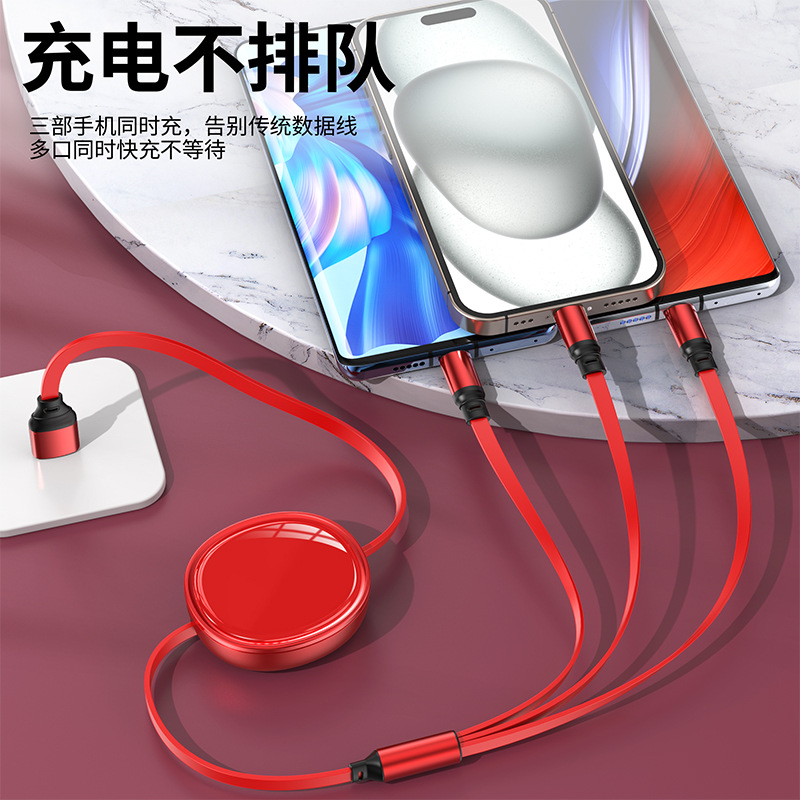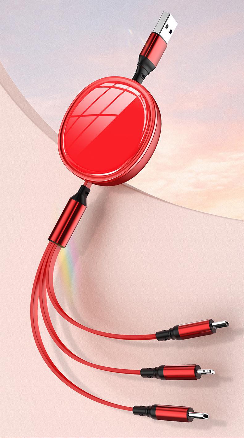 Выдвижной кабель для передачи данных «три в одном», 100 Вт, сверхбыстрая зарядка «один-три», подходит для кабеля для флэш-зарядки Huawei Apple Android