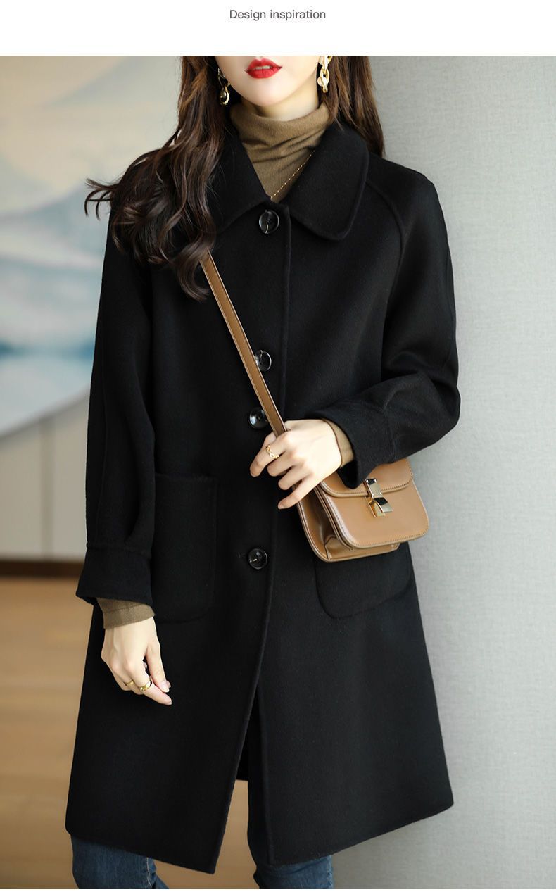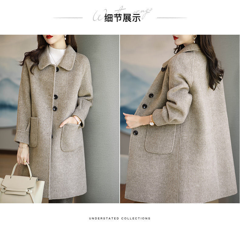 Женская шерстяная верхняя одежда 2025 осень-зима новый стиль утепленная корейский стиль стройная элегантная средней длины шерстяная верхняя одежда
