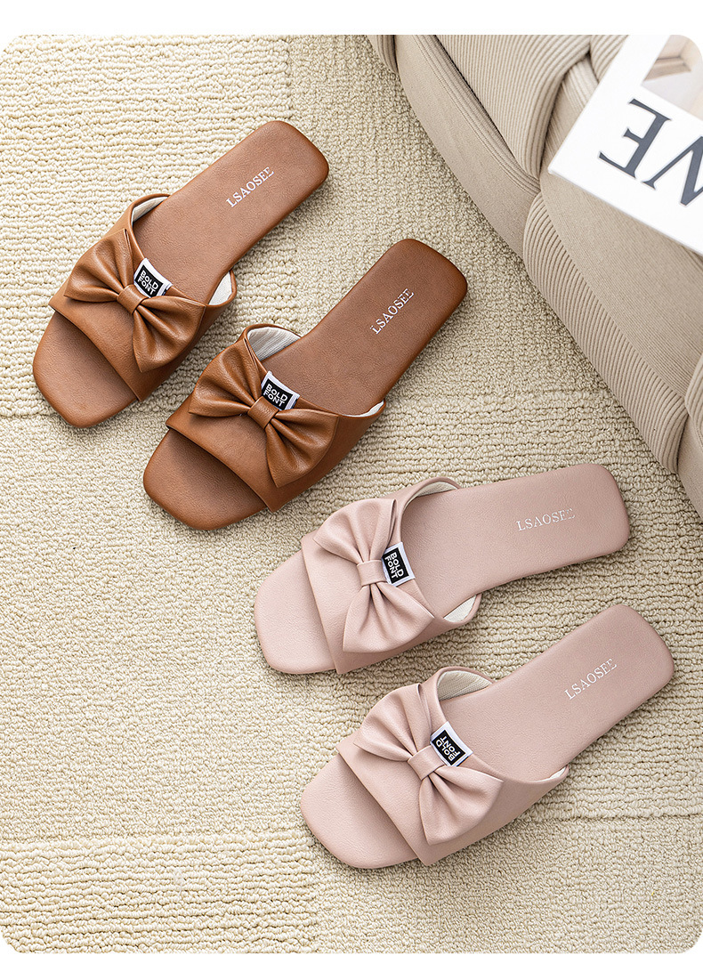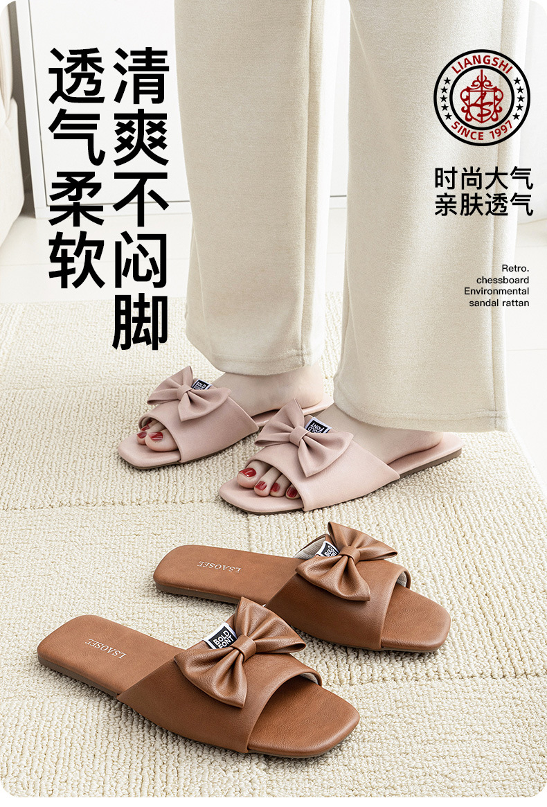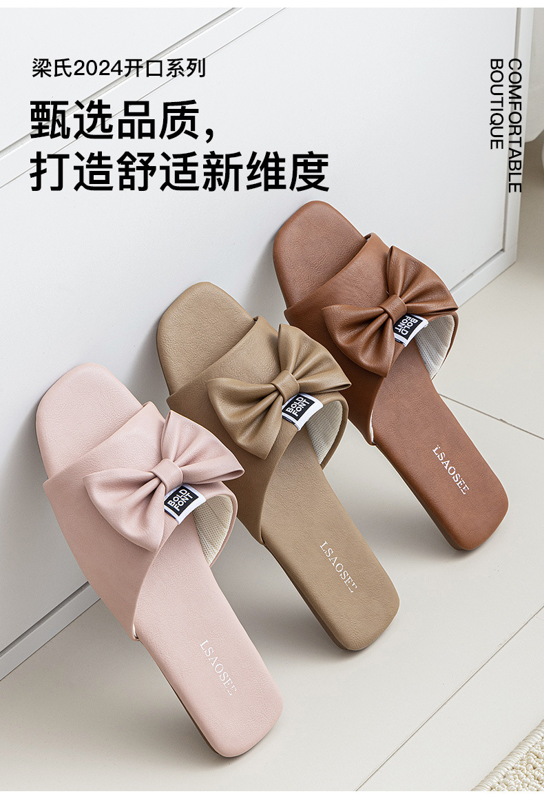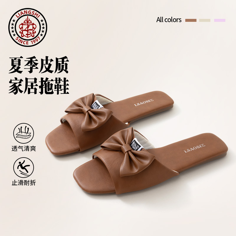Liang's Spring Summer 2024 новый бант кожаный лапша домашний дамы тапки коровья сухожилие дно, противоскользящие отверстия, дышащие и водонепроницаемые