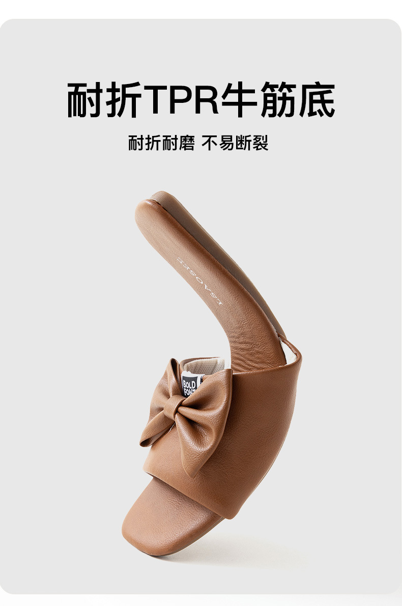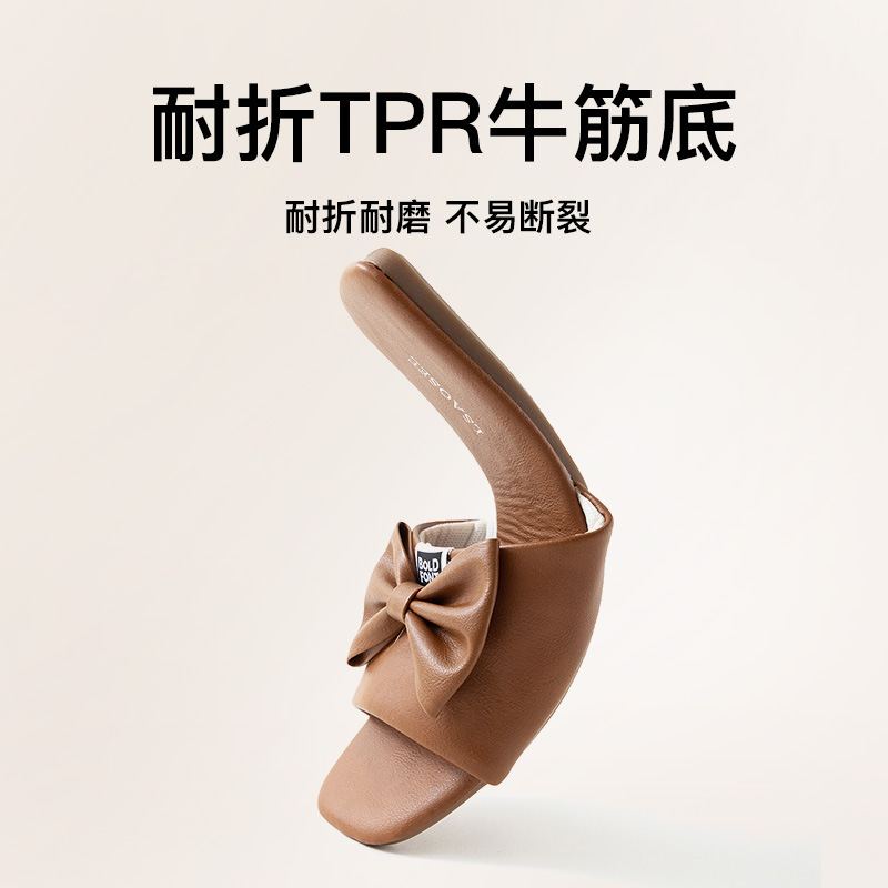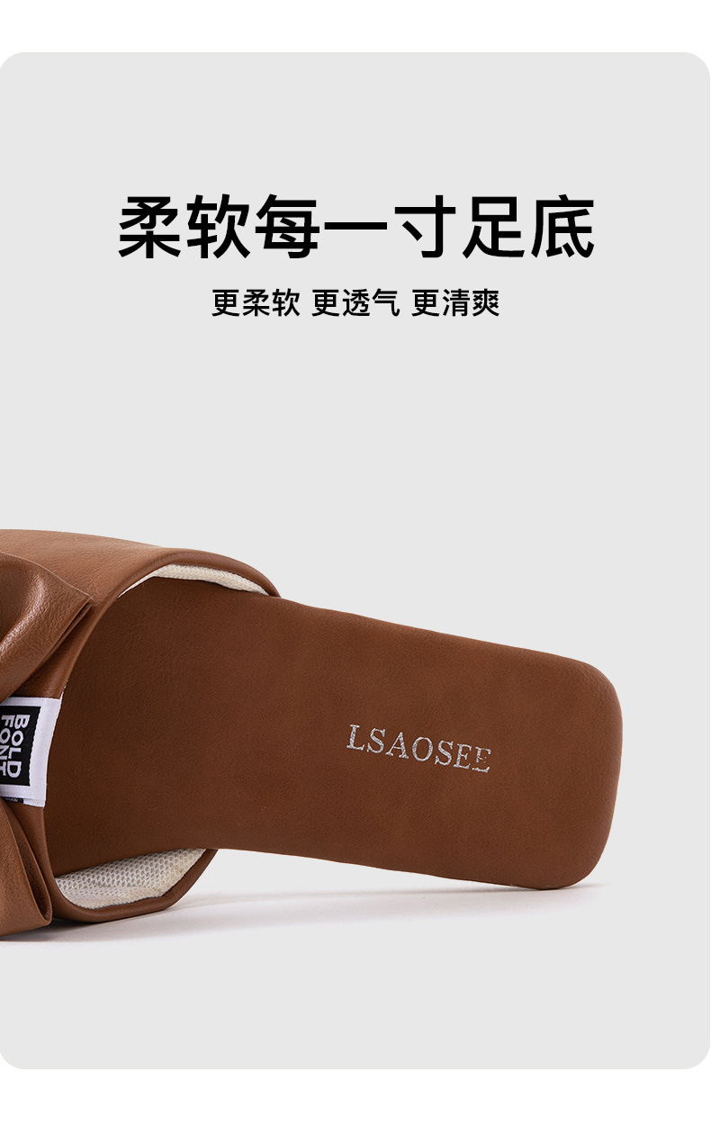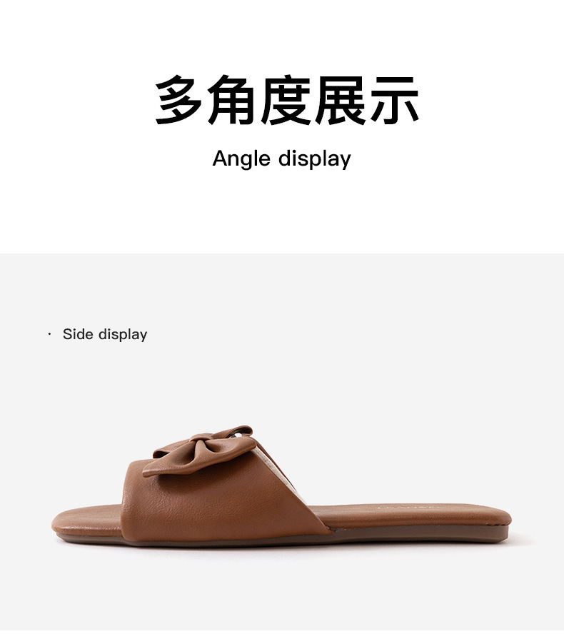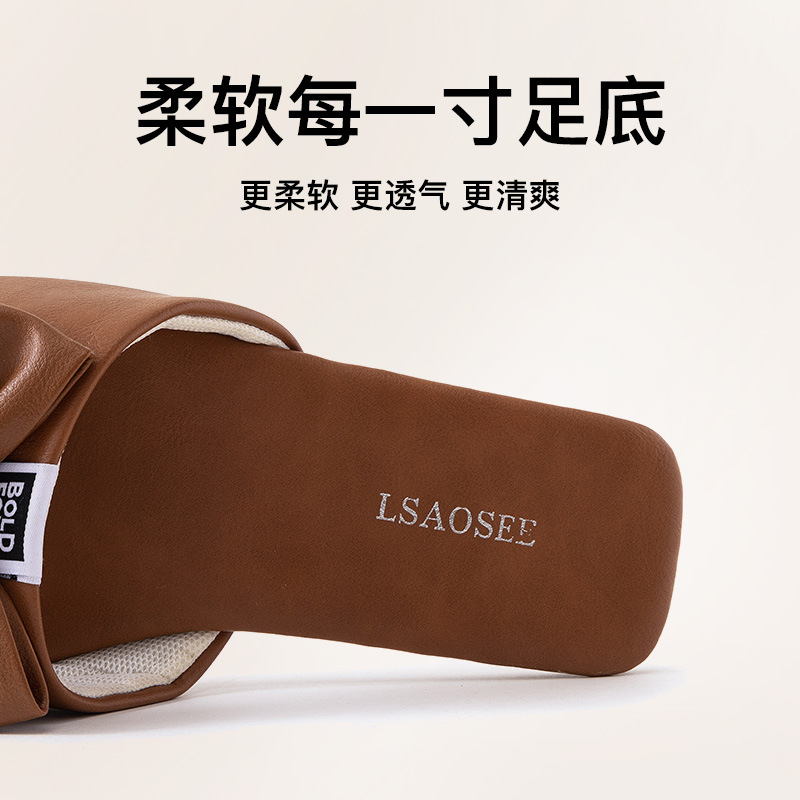 Liang's Spring Summer 2024 новый бант кожаный лапша домашний дамы тапки коровья сухожилие дно, противоскользящие отверстия, дышащие и водонепроницаемые
