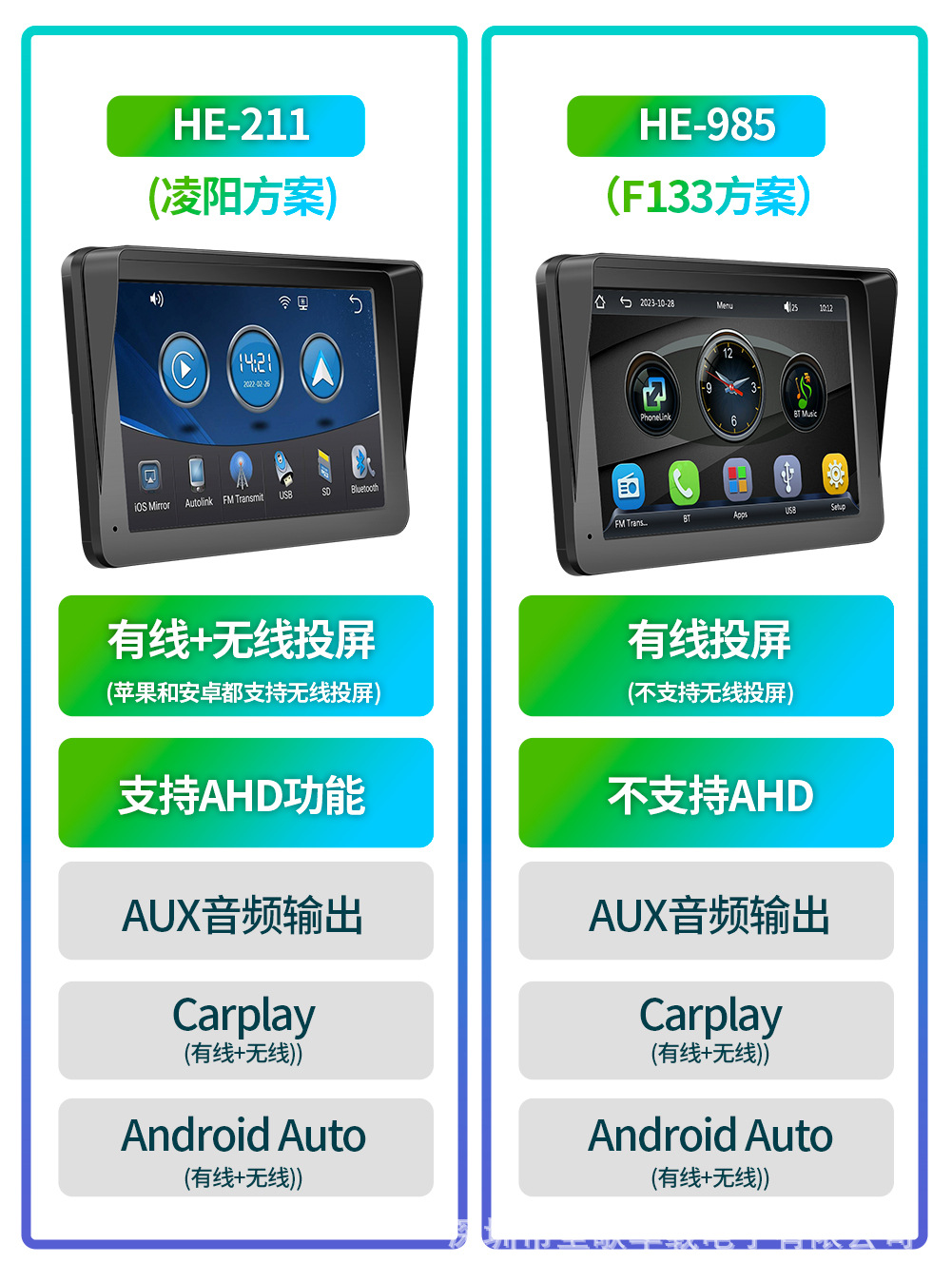 HE-985(F133方案):支持有线投屏、没有AHD功能。