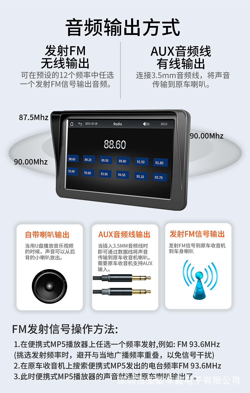 收音发射频率:88.60/89.20/89.50/89.80/91.50/91.80/93/.00/93.60/93.90/94.50/95.10/95.70MHz
