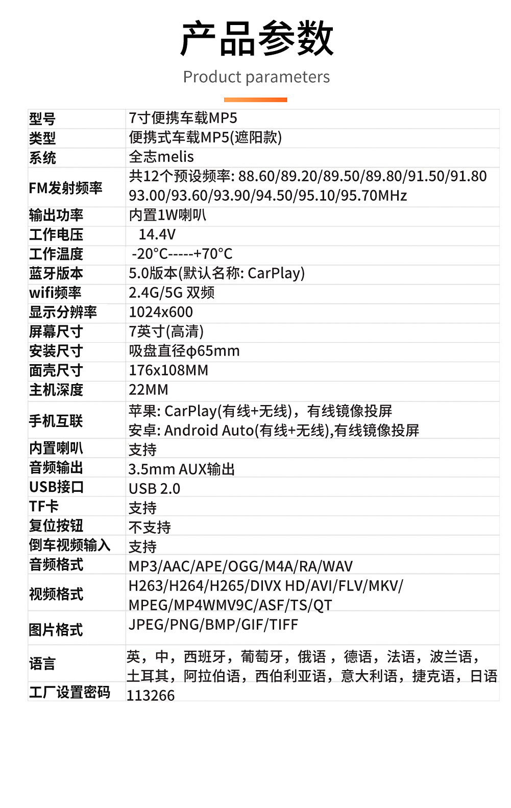 蓝牙版本:5.0版本(默认名称:CarPlay)