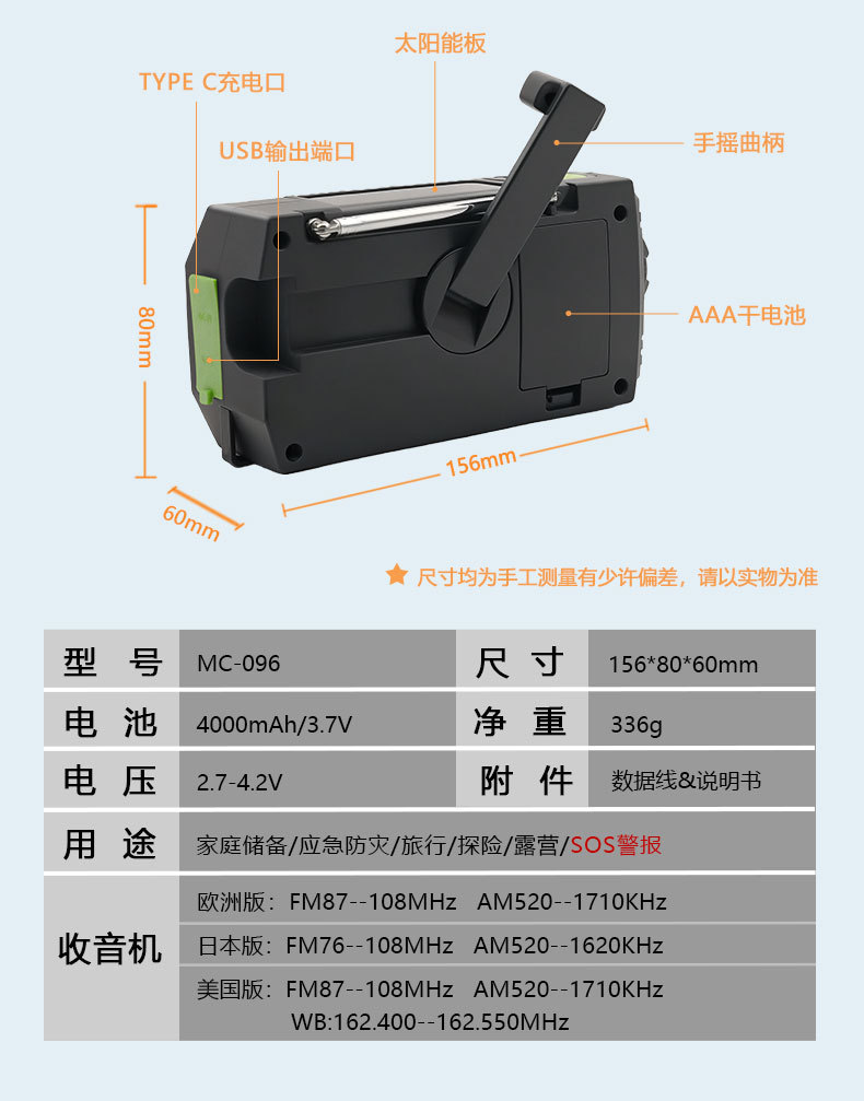 Ручное встряхивание аварийного радио многофункциональная аварийная зарядка солнечное радио наружное радио для предотвращения стихийных бедствий
