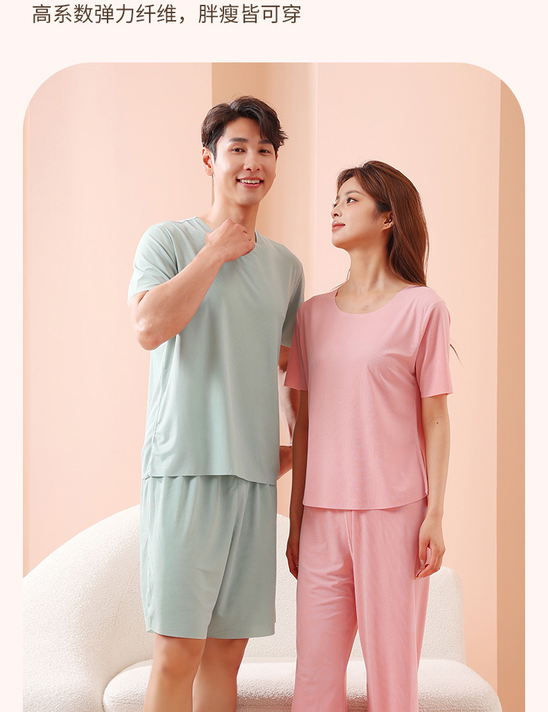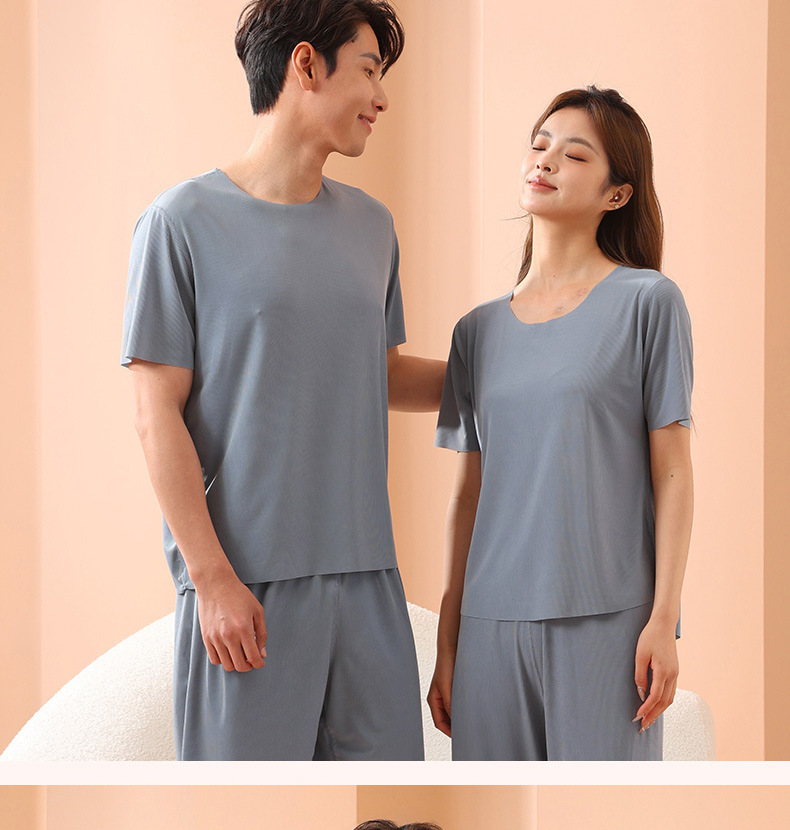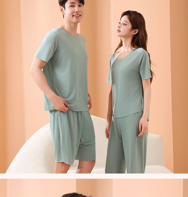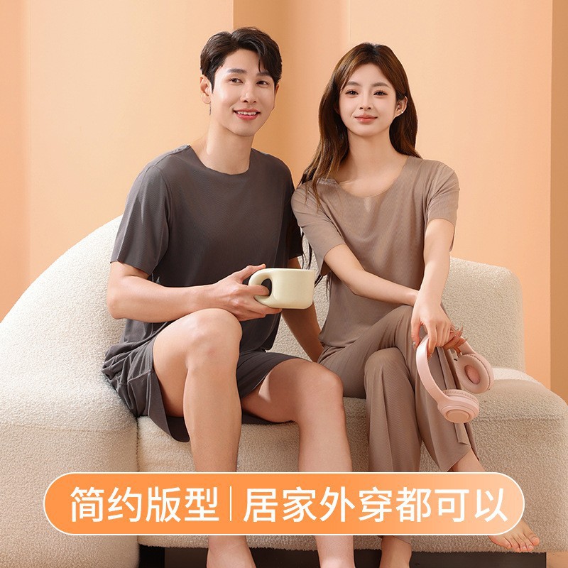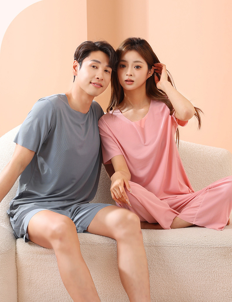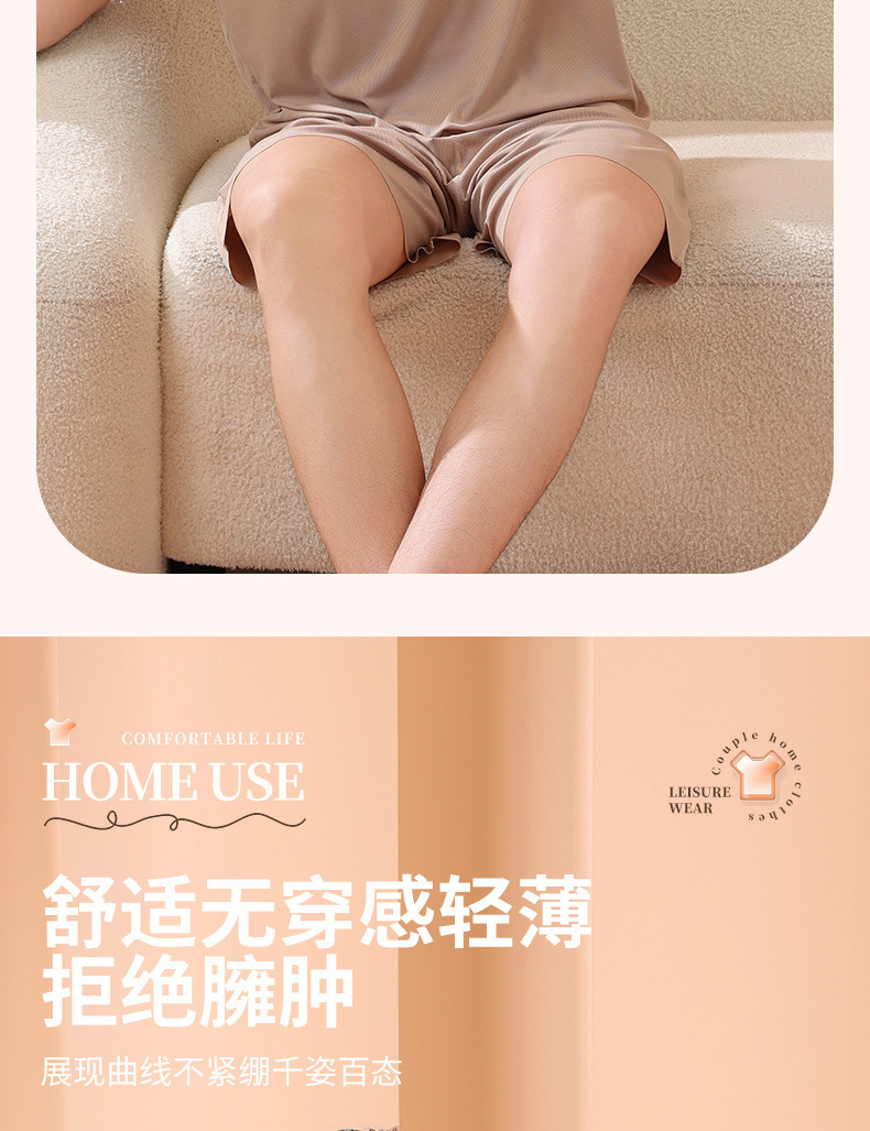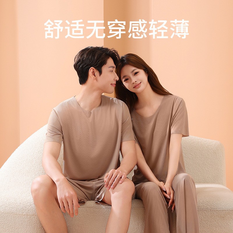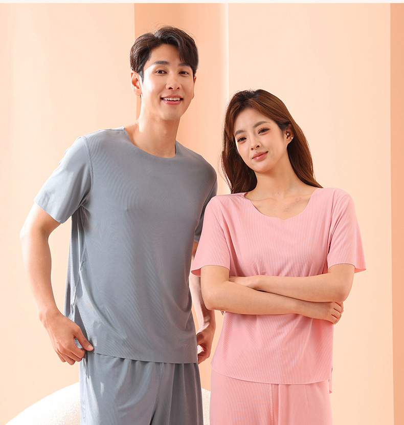 Комплект домашней одежды из ледяного шелка, шорты с короткими рукавами, мужские и женские парные пижамы, бесшовный дизайн, домашняя одежда для пар