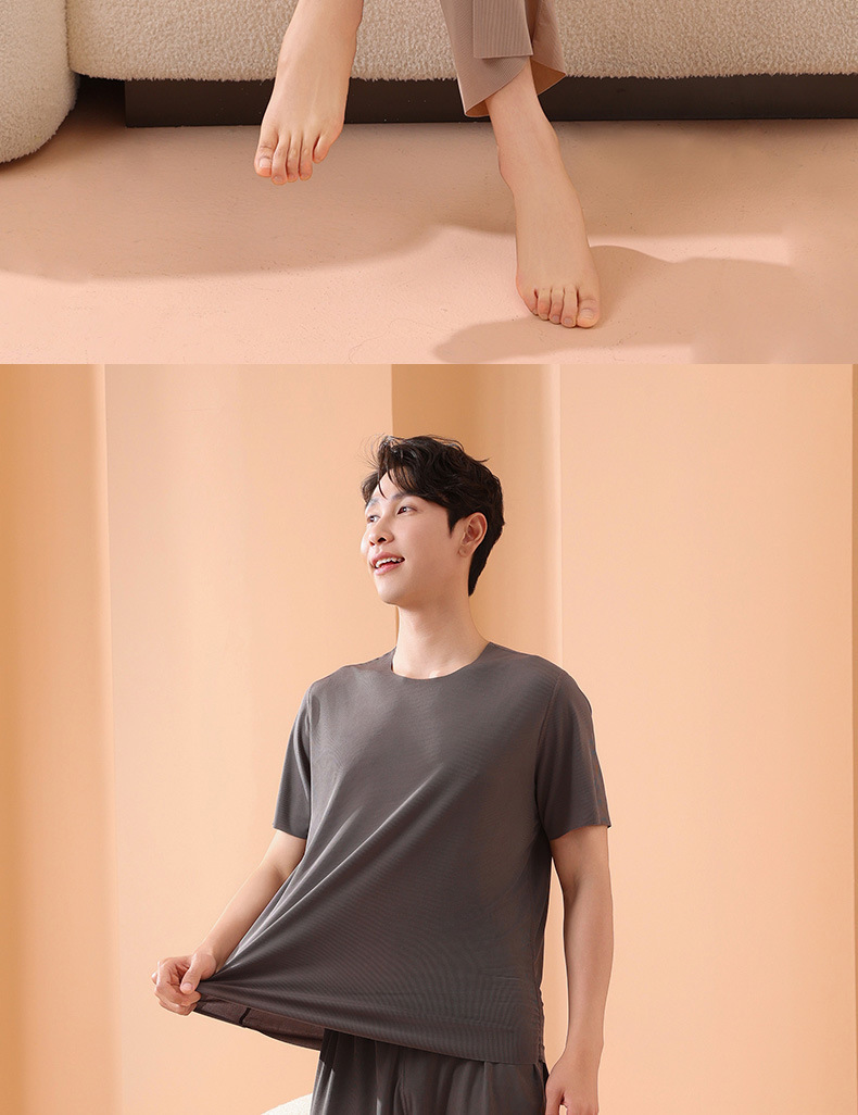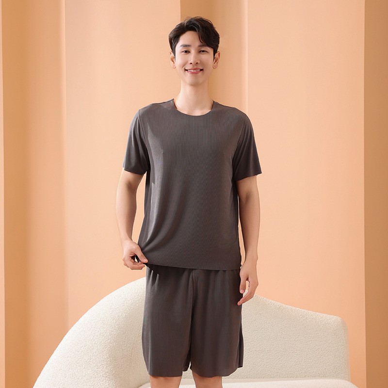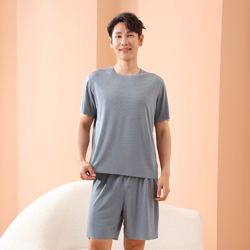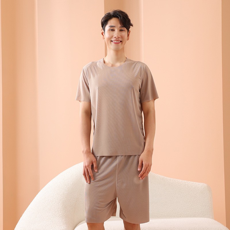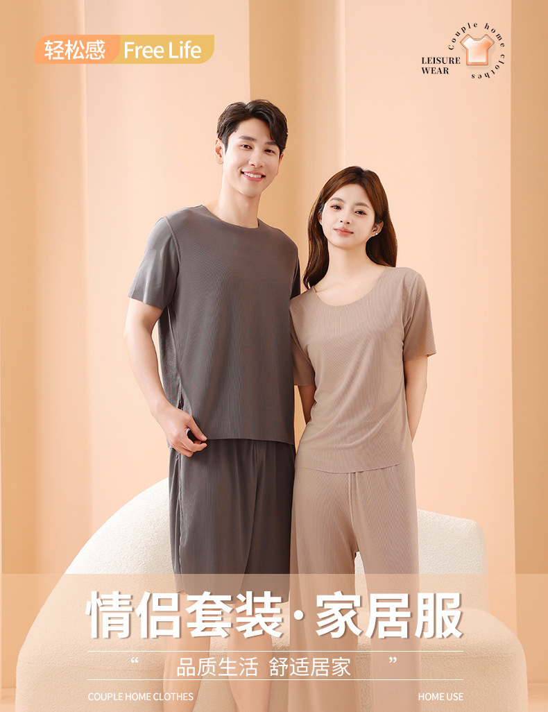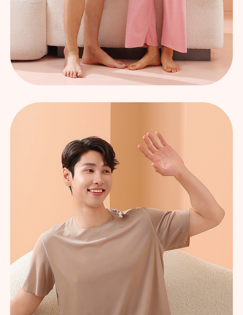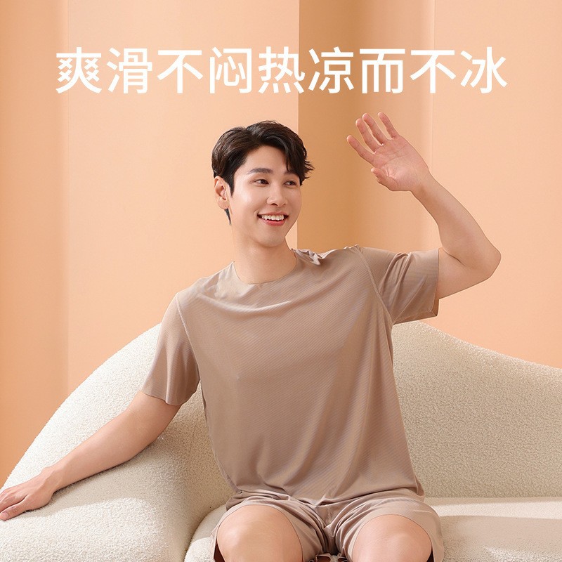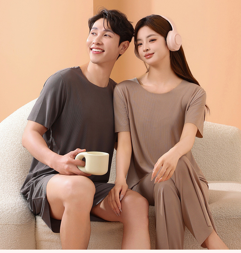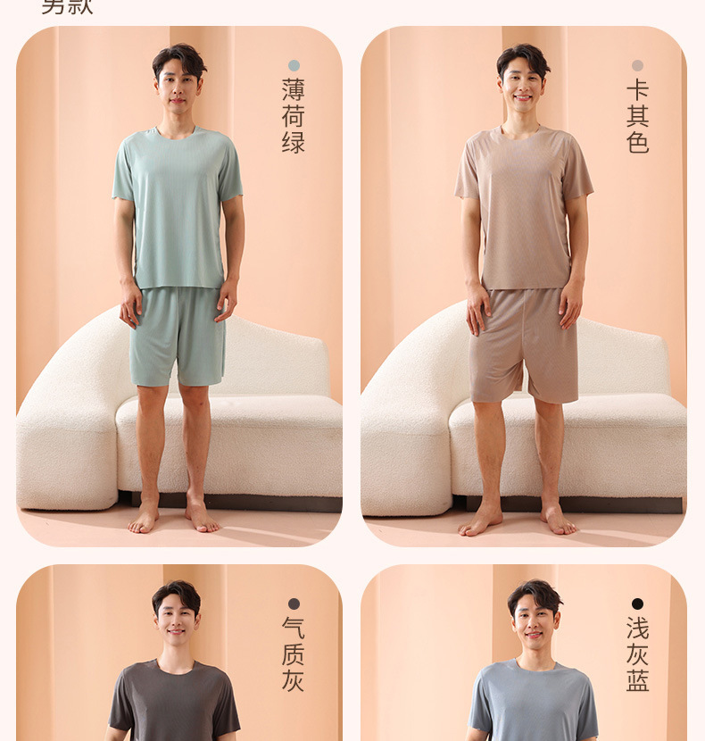 Комплект домашней одежды из ледяного шелка, шорты с короткими рукавами, мужские и женские парные пижамы, бесшовный дизайн, домашняя одежда для пар