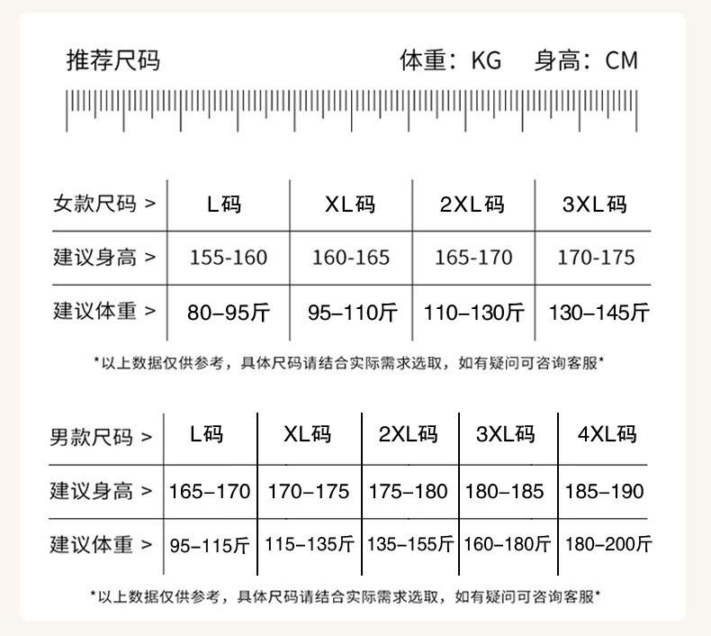 L【Рекомендуемый мужской 40-55kg / женский 35-47.5kg】; XL [рекомендуется для мужчин 55-65kg / женщин 47.5-55kg ]; XXL [рекомендуется мужчины 65-75kg / женщины 55-65kg ]; 3XL [рекомендуется мужчины 75-85kg / женщины 65-72.5kg]; 4XL [рекомендуется мужчинам 85-95kg лет]