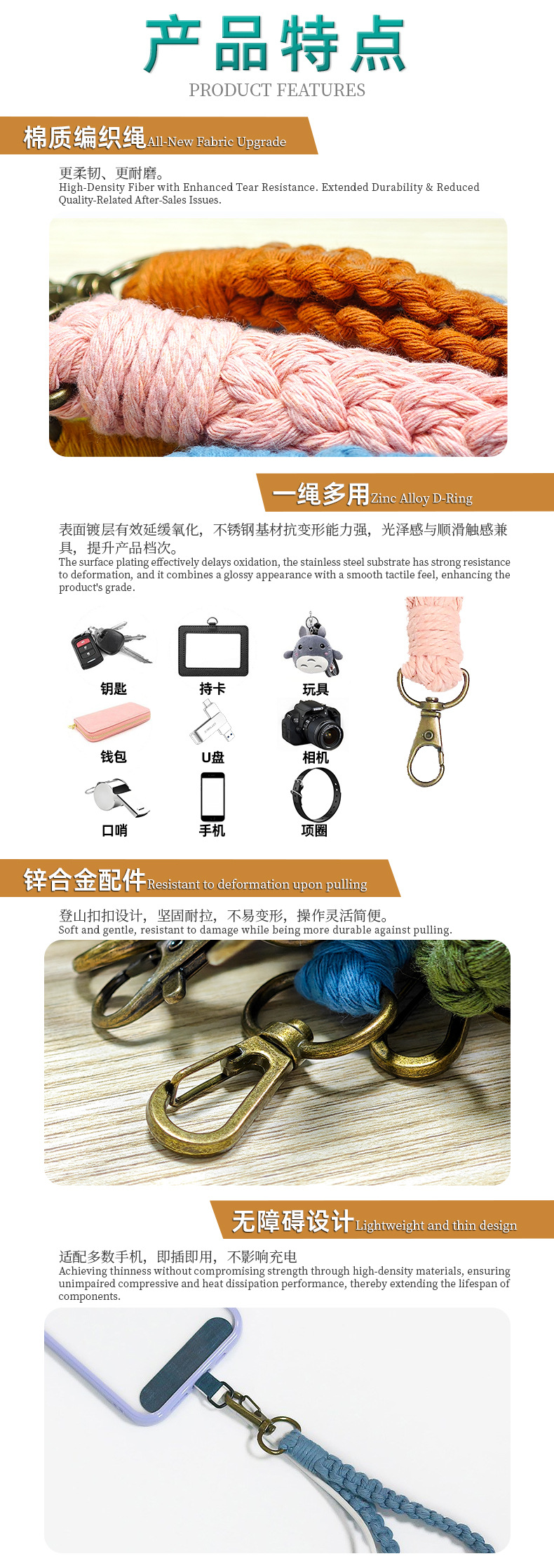 Фабрика новый тканый мобильный телефон шнур шнур фиксированная прокладка анти-потери универсальный запястной веревку DIY хлопчатобумажный шнур
