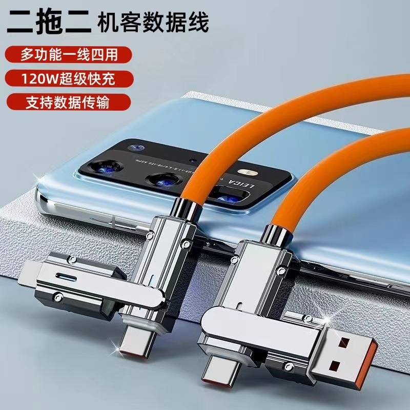 Четыре в одном зарядный кабель pd быстрозарядный цинковый сплав машина гостевой линии экспорта трансграничный двухбуксировочный кабель для передачи данных мобильного телефона