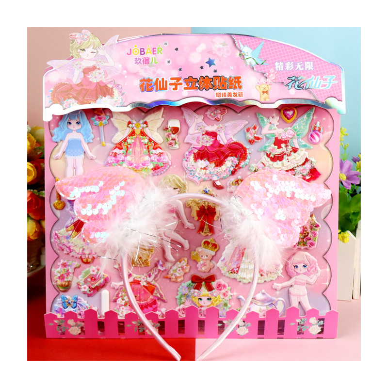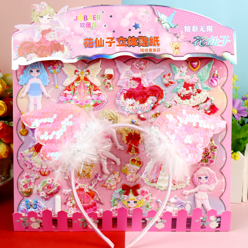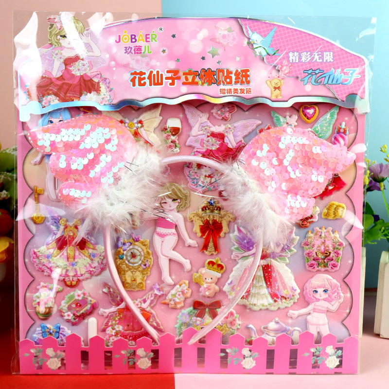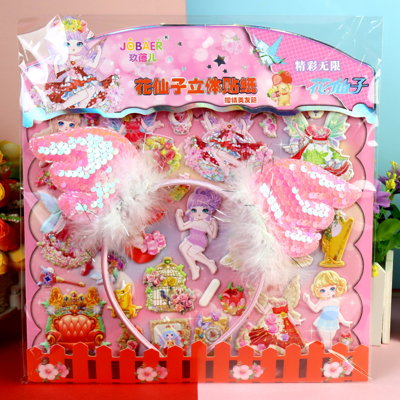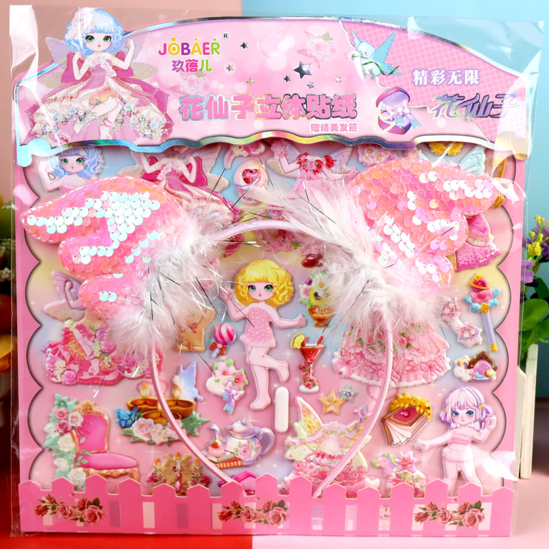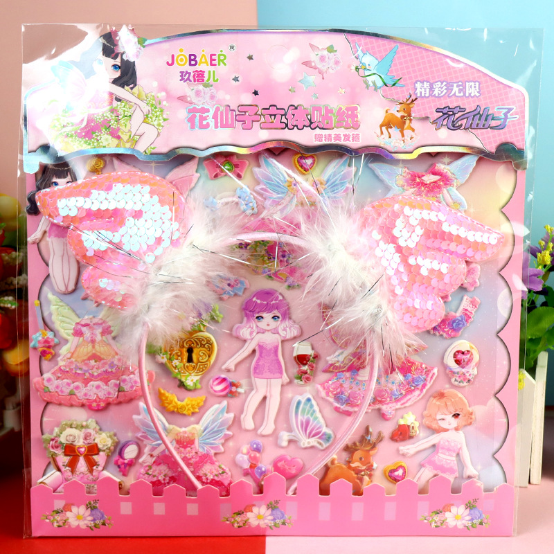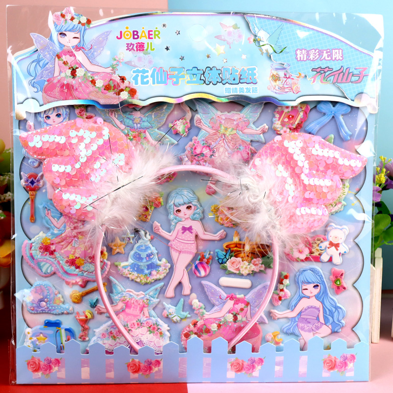 Цветочная фея с обручем для волос девушка пенистая наклейка из кожи гибискуса пена наклейка для детей мультфильм стерео одеваются наклейка