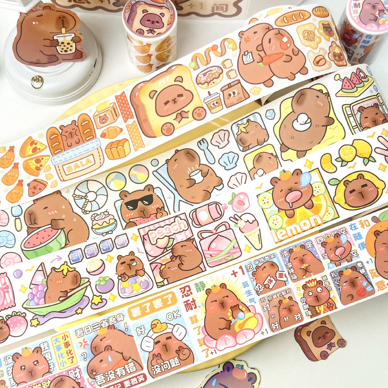 Капибара и бумажная лента капибары мультфильм ручной счет наклейка лента высокого цвета ручной счет декоративная наклейка