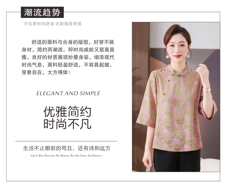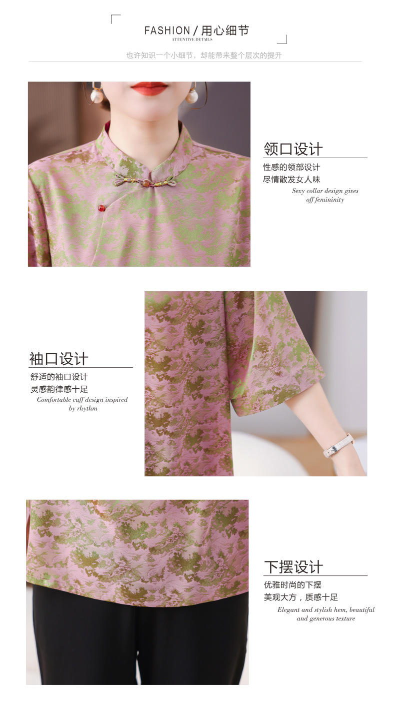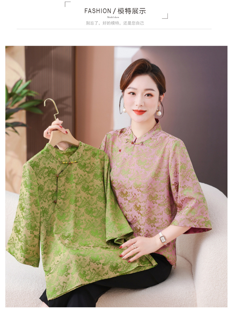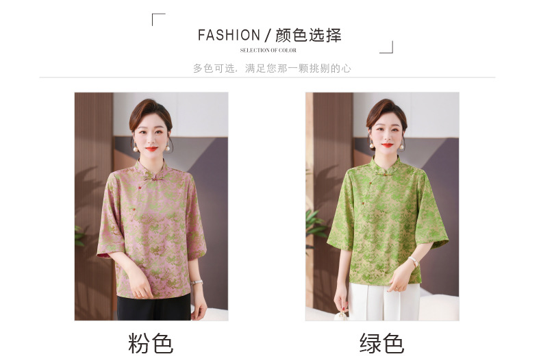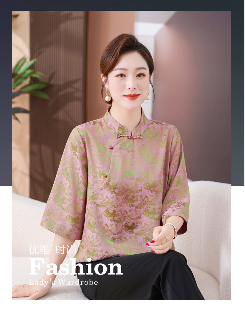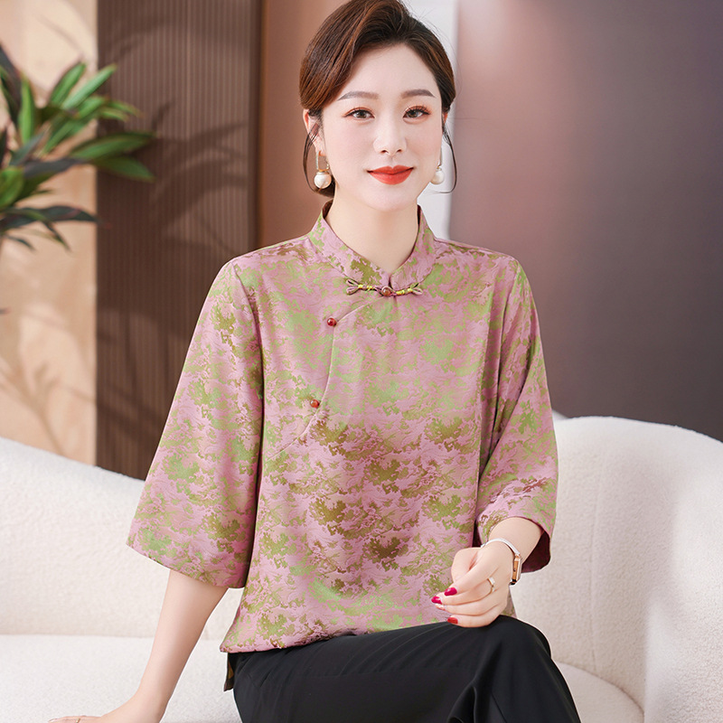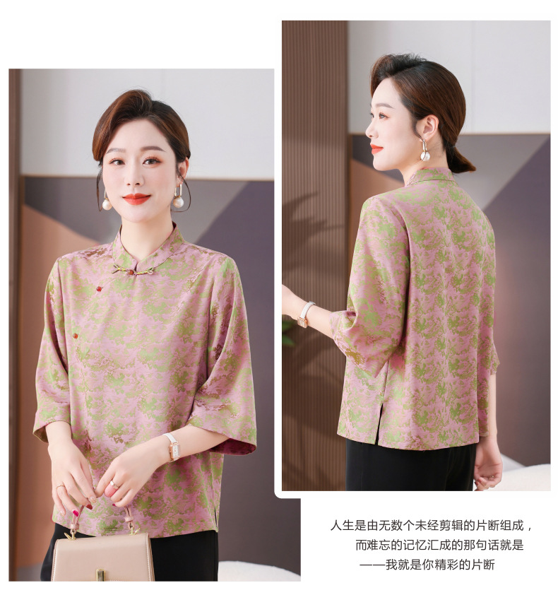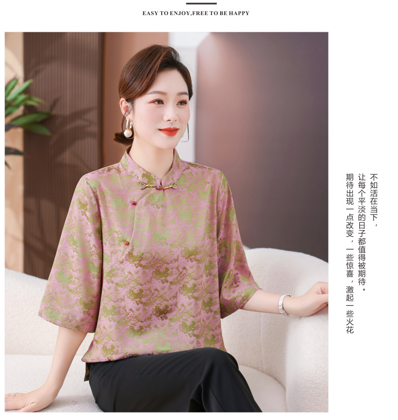 2024 Летняя средняя и пожилая мода повседневная имитация шелковая футболка новая мама женская одежда с рукавами