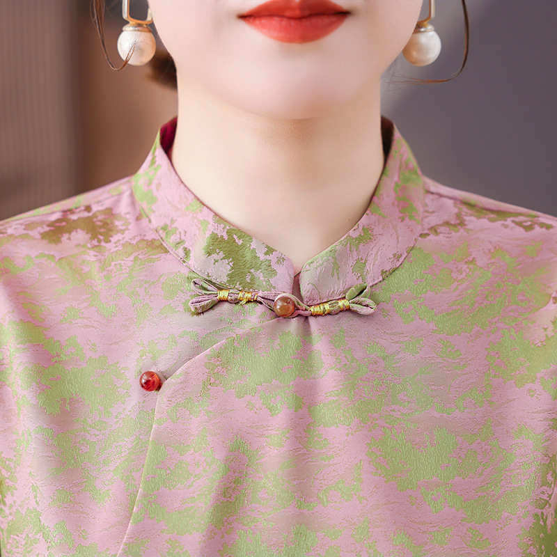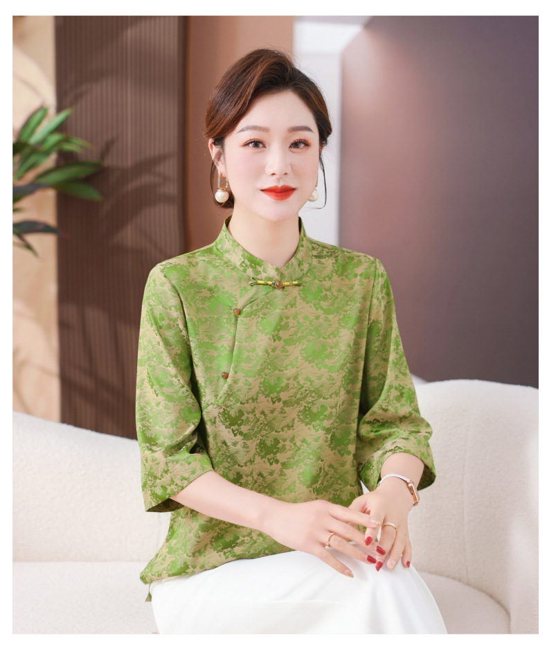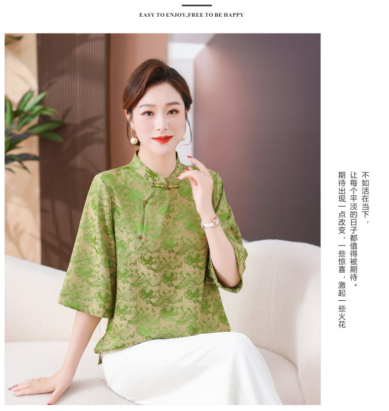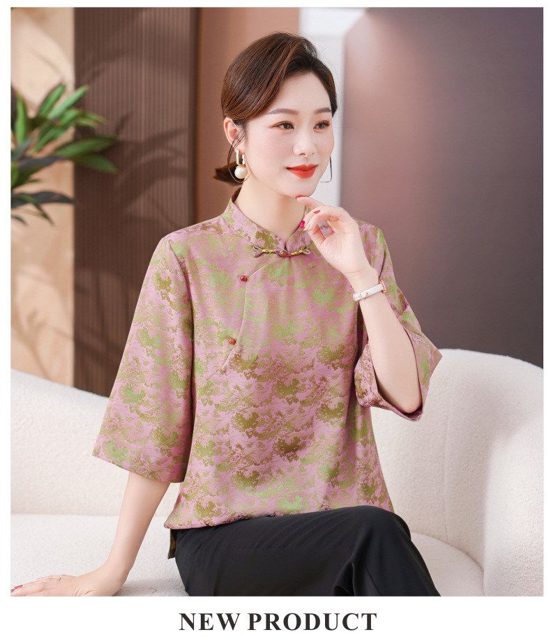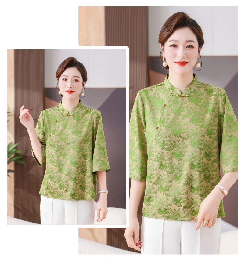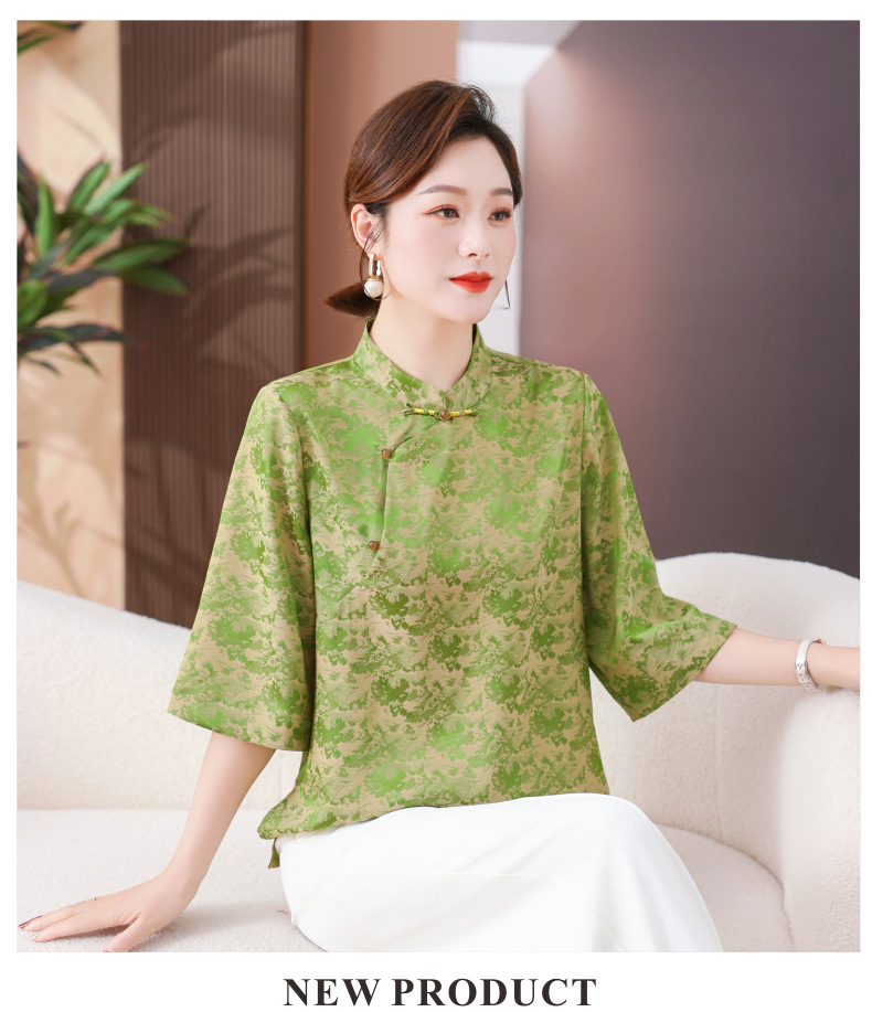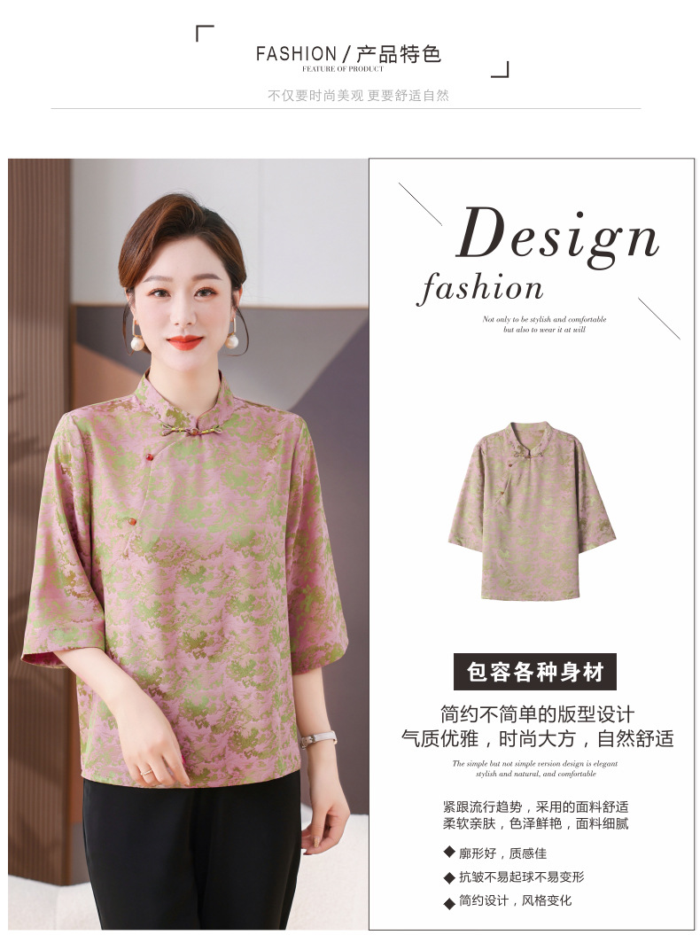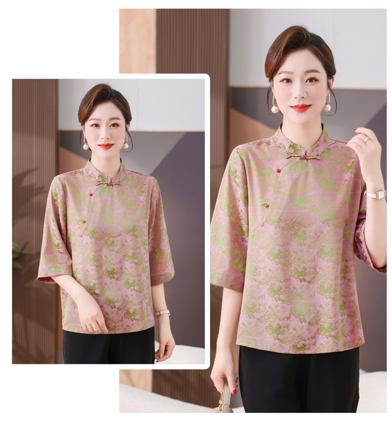 2024 Летняя средняя и пожилая мода повседневная имитация шелковая футболка новая мама женская одежда с рукавами