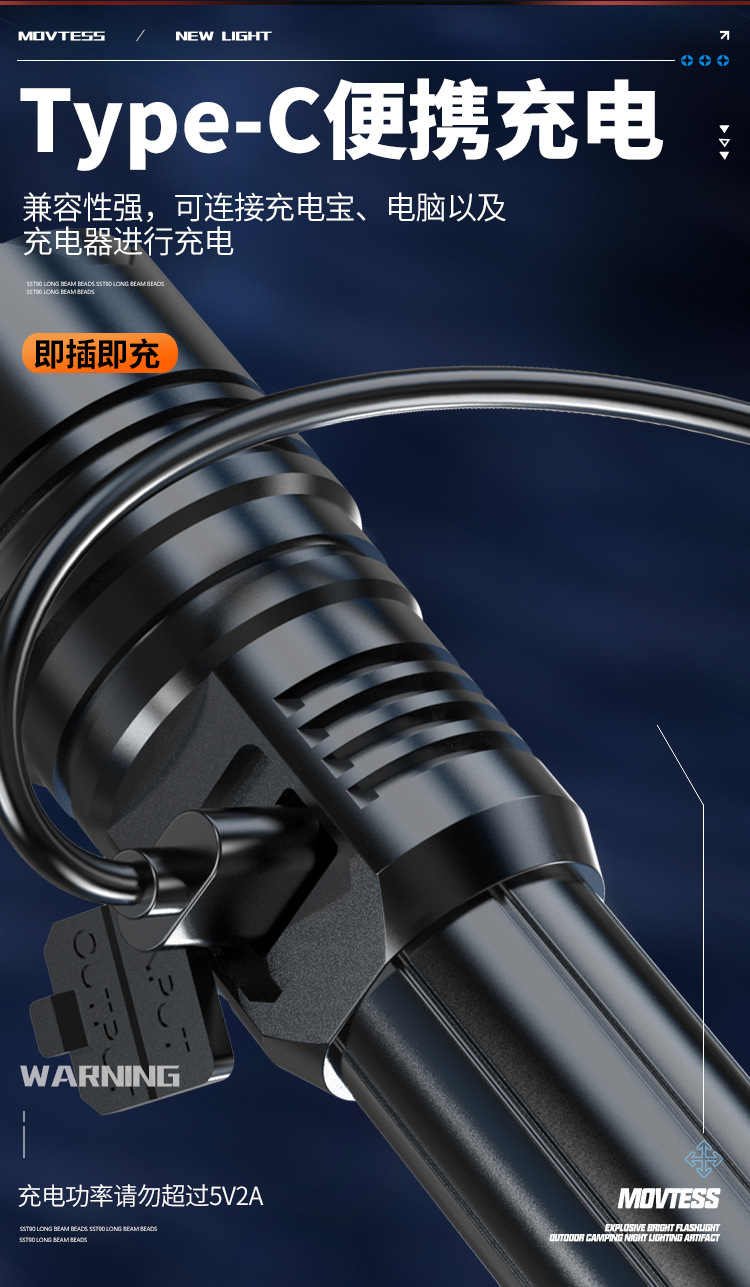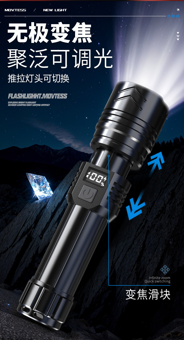 XHP50 телескопический зум фонарик показывает длительную выносливость сверхяркий Typec портативный телескопический яркий фонарик