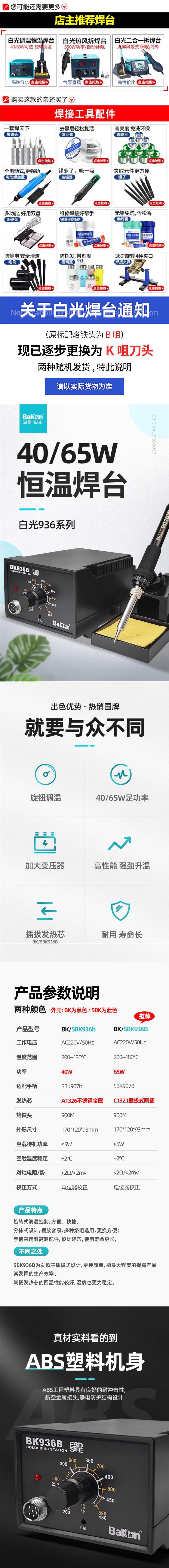 BK936b стандартно поставляется [40 Вт] с двумя жала паяльника.; BK936B стандартно поставляется [65 Вт] с двумя жала паяльника.; SBK936b синий стандарт [40 Вт] поставляется с двумя жала паяльника.; SBK936B синий стандарт [65 Вт] поставляется с двумя жала паяльника.; BK936b [40W Пакет 1]; BK936b [40 Вт Пакет 2]; BK936b [40W комплект три]; BK936B [пакет 65 Вт 1]; BK936B [пакет 65 Вт 2]; BK936B [65W комплект три]