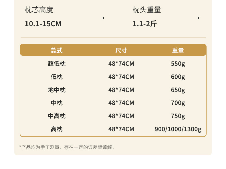 48*74 ультранизкая подушка 550г.; 48*74 подушка низкая 600г.; 48*74 подушка низкая и средняя 650г.; 48*74 подушка средняя 700г.; 48*74 средний высокий 750г; Подушка высокая 48*74 850г.; 48*74 общий вес 900 грамм; 48*74 общий вес 1000 грамм; 48*74 общий вес 1300 грамм; Подушка высокая 38*68 500г.