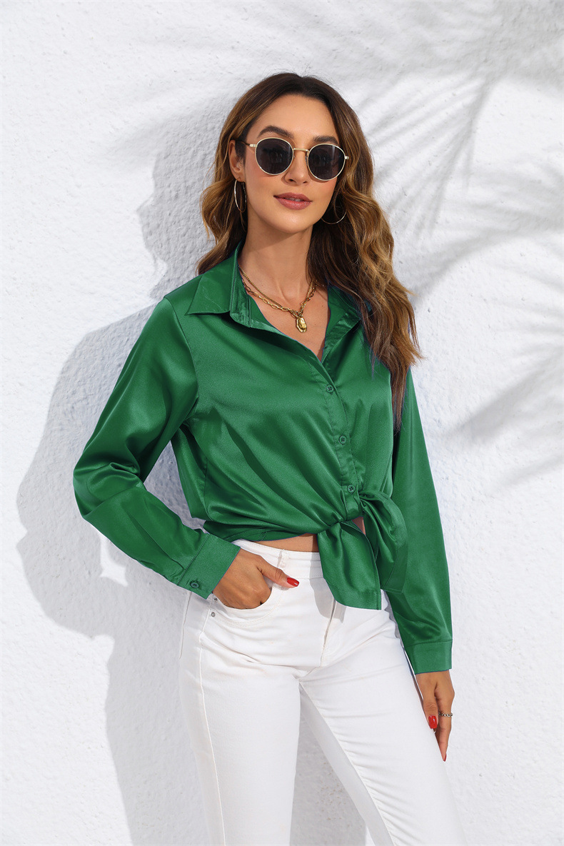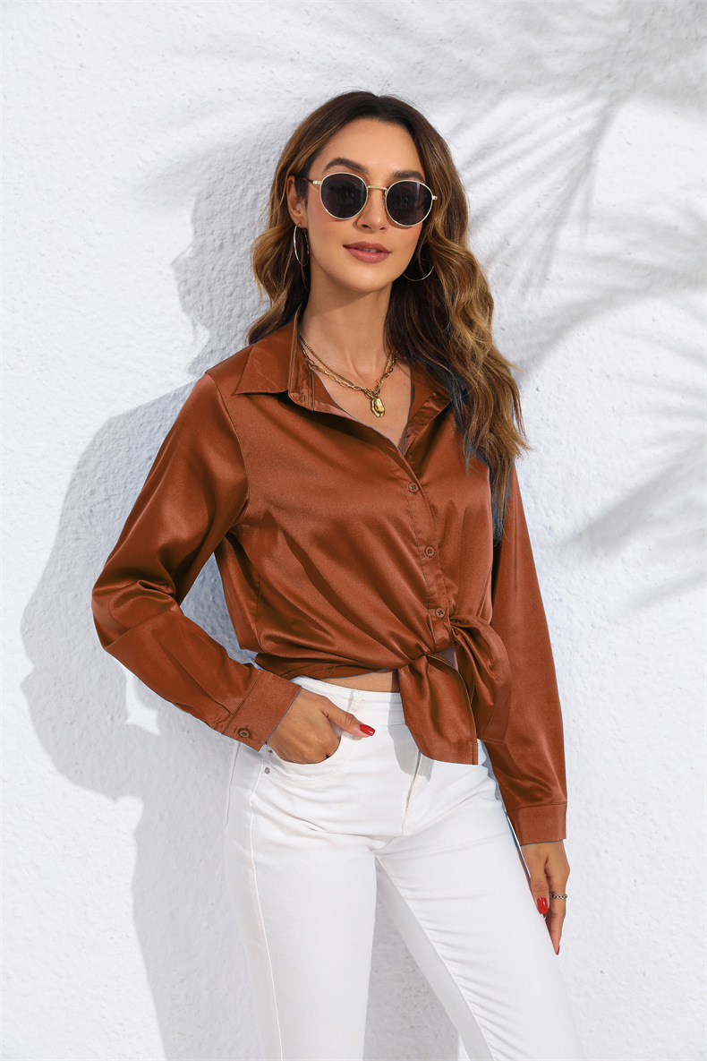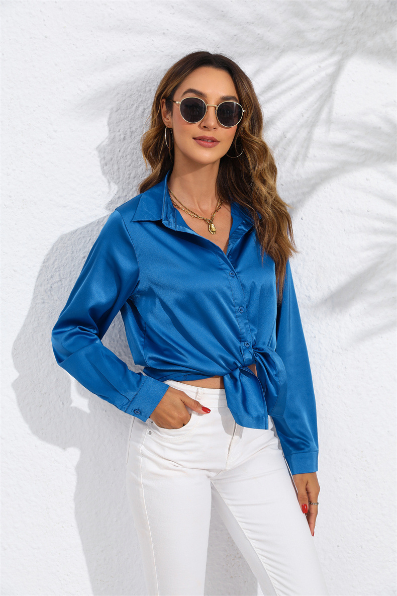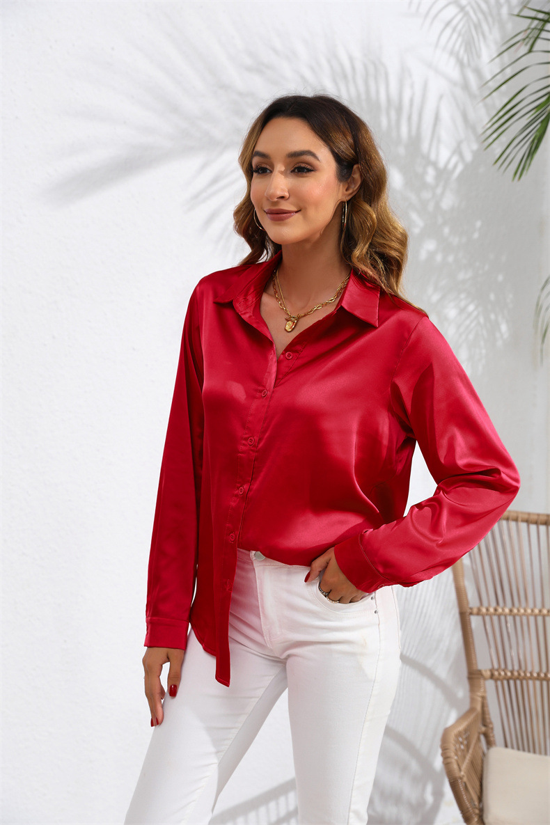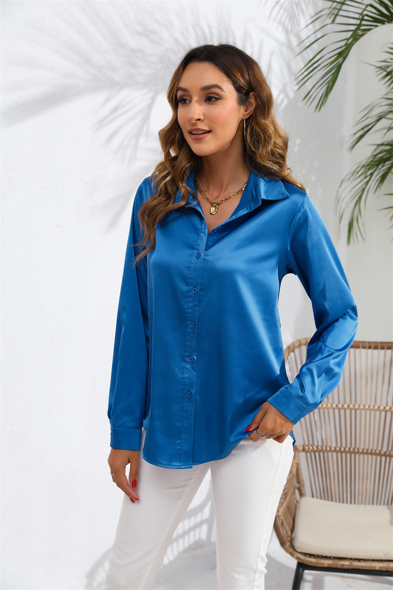 2024 весенняя и осенняя одежда Amazon лопнул реальный выстрел европейская и американская трансграничная женская одежда сплошной цвет атласная женская рубашка с длинными рукавами
